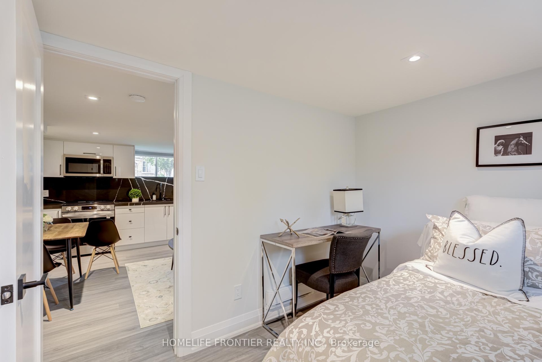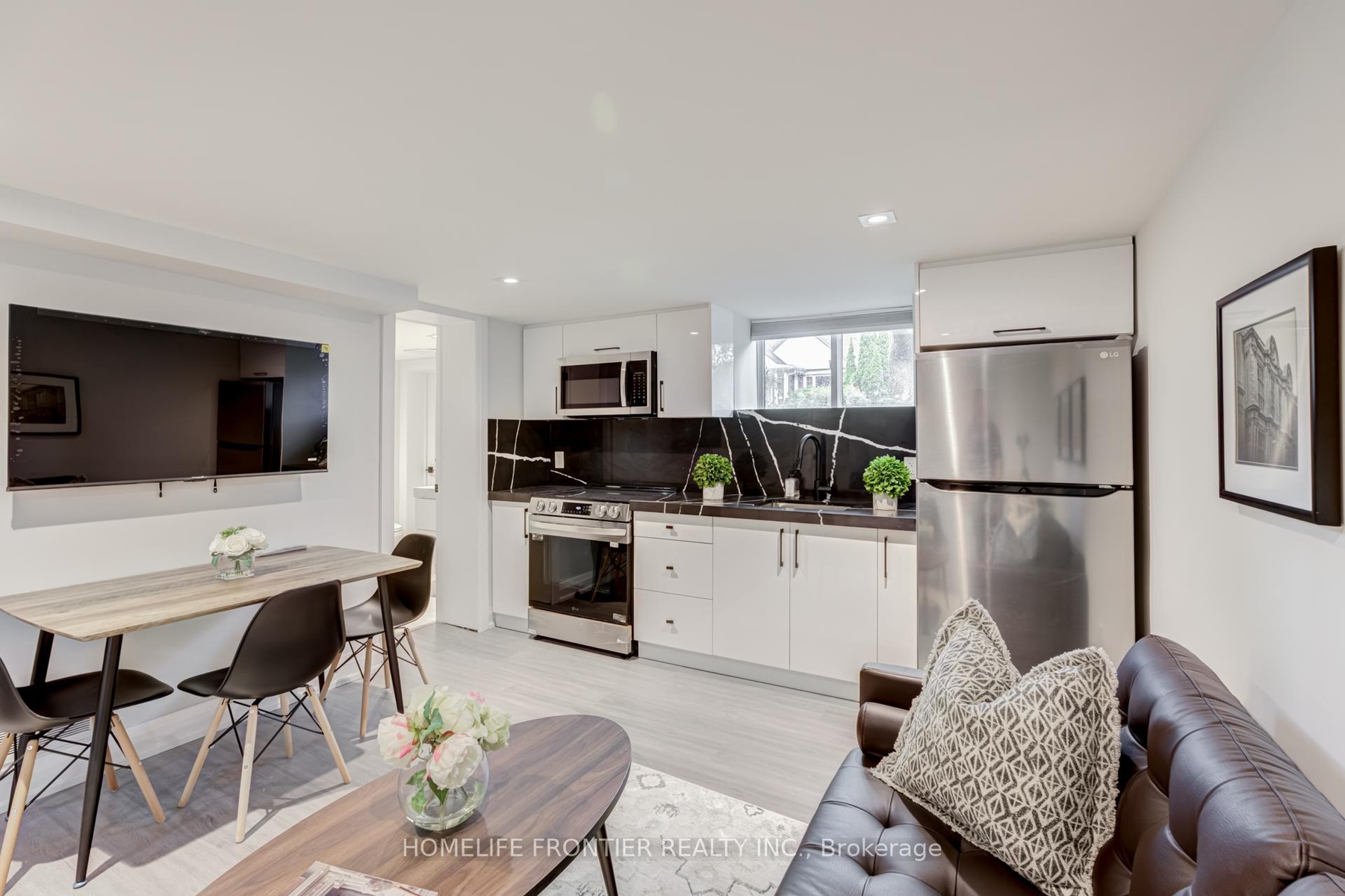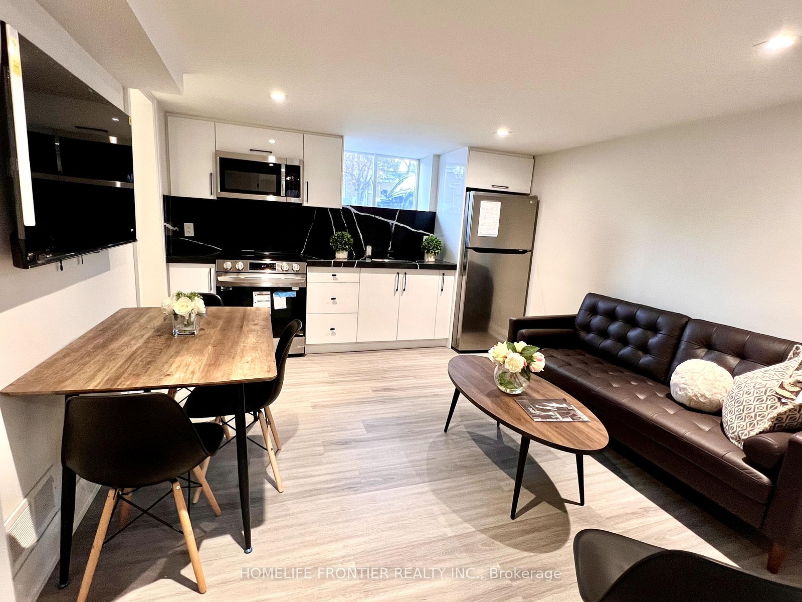 New fully Furnished 1 bedroom apartment with modern finishes, just like condo life style. Features include: Vinyl floors and pot lights throughout, Above ground large windows in bedroom & living room, Modern white glossy kitchen with full size Stainless Steel fridge and stove, Quartz countertop and backsplash, Modern bathroom, spacious bedroom with double closet. Steps to Subway, Shopping Centre, Restaurants, Theatre, Library, a minute drive to Hway 401, Side yard for bbq,...**Available short or long term.**