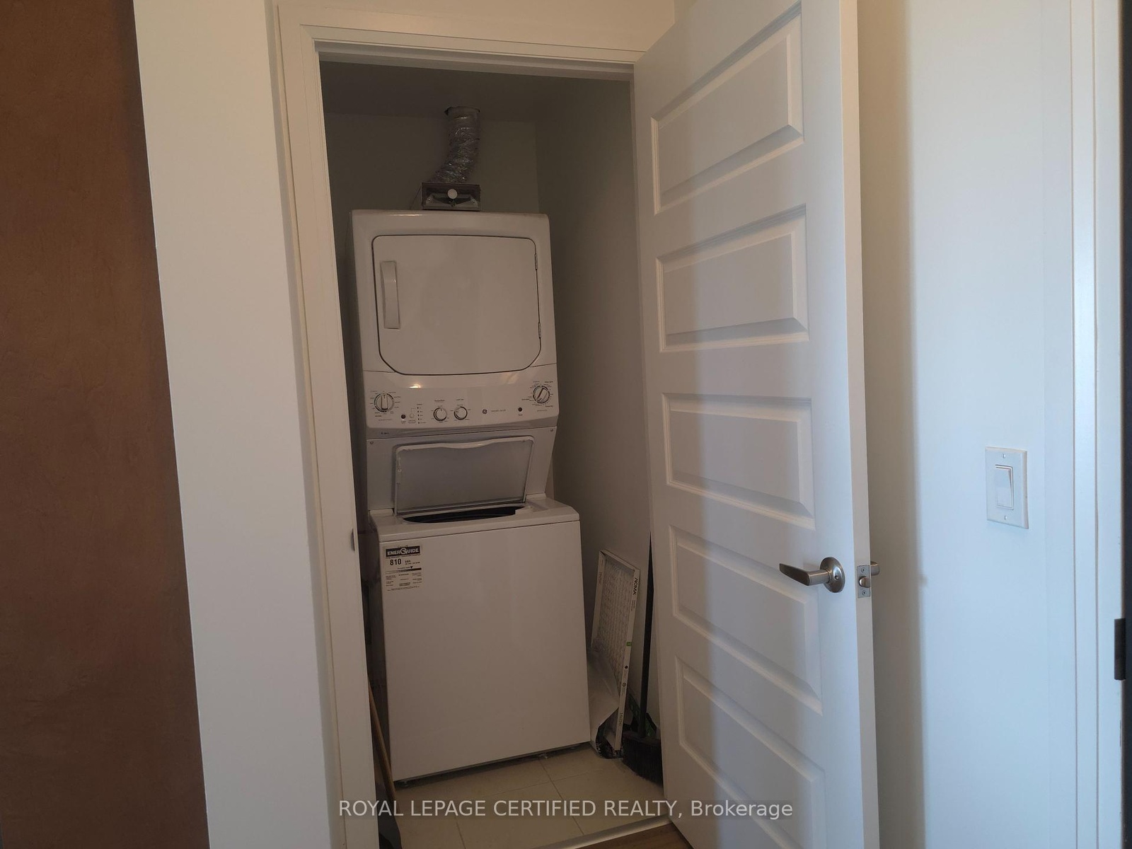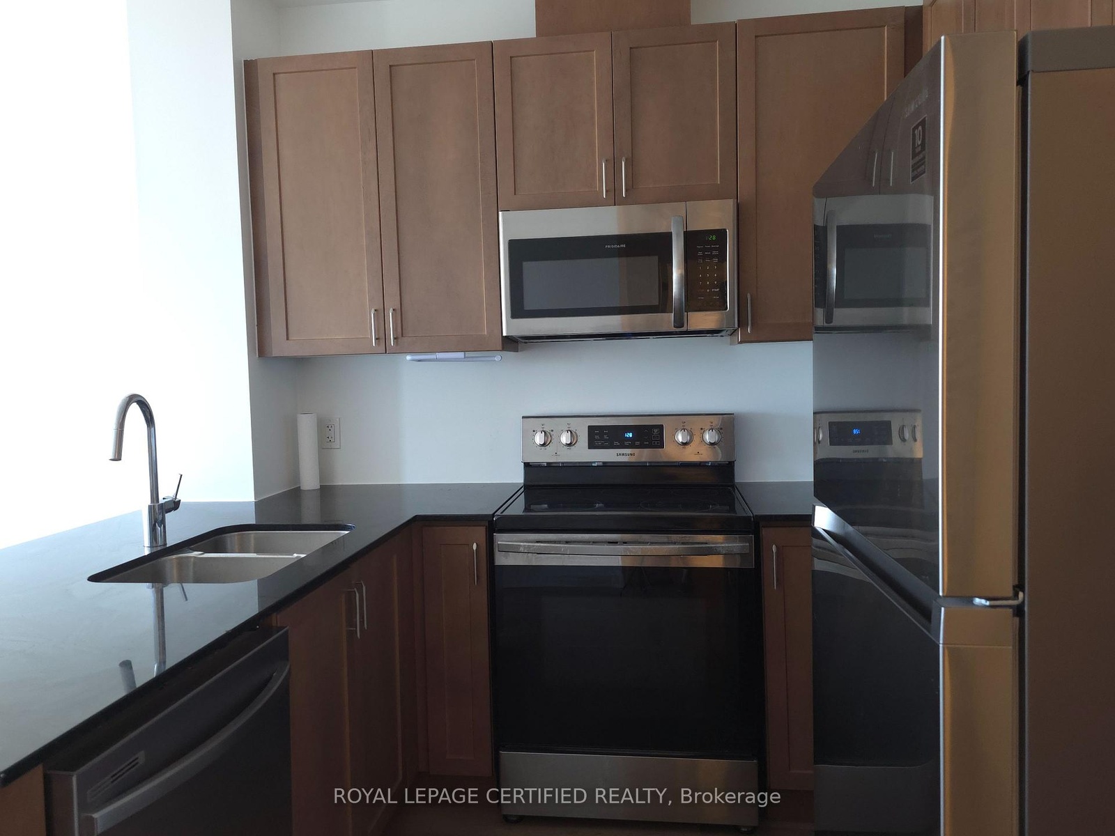 A perfect fusion of comfort, style, and functionality this beautifully appointed suite is nestled in the heart of a vibrant neighborhood just minutes from shopping centres, parks, recreation, top-rated schools, major highways, and more. Step inside to an inviting open-concept layout featuring freshly painted walls, smooth 9-ft ceilings, large windows, and laminate flooring throughout. Quartz countertops with breakfast bar, and stainless steel appliances perfect for cooking, entertaining, or simply enjoying your morning coffee. 45 sq feet balcony with unobstructed clear views of the city across to Lake Ontario