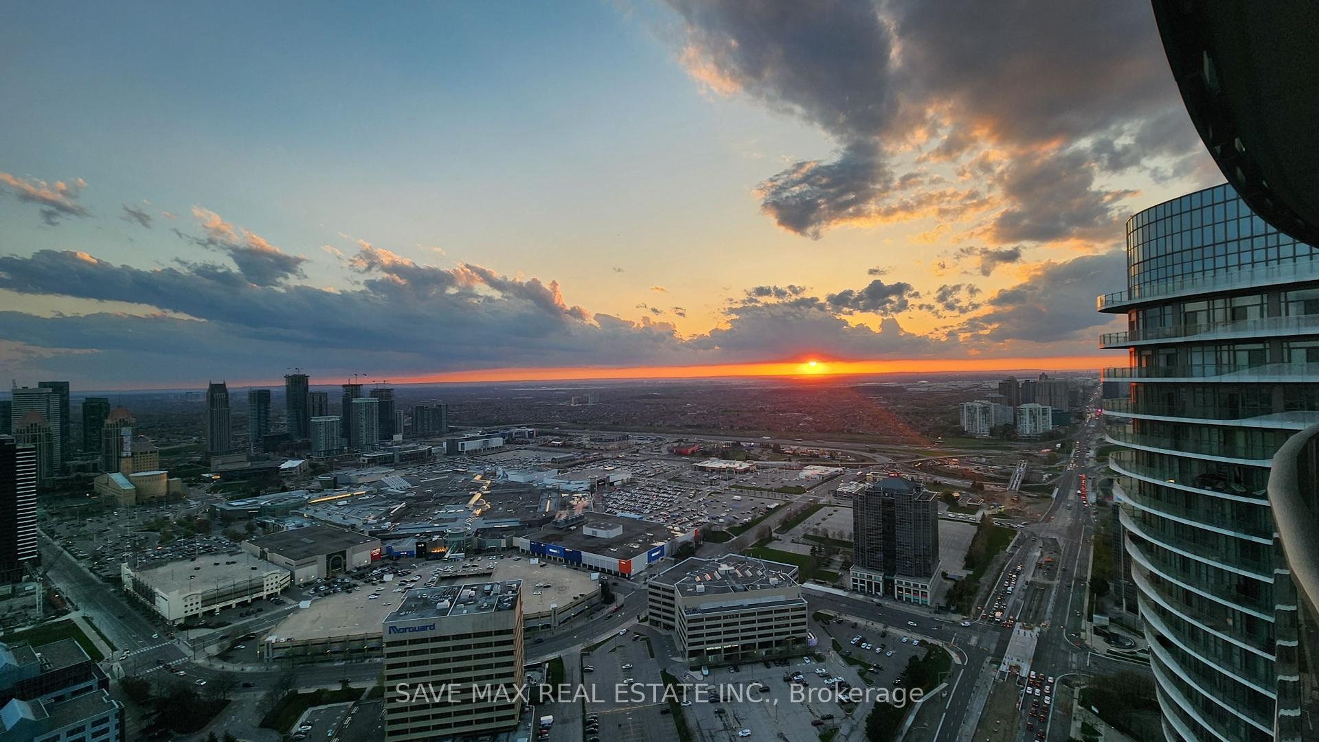 A unique opportunity to own this unique Condo Floor Plan with Breath-taking Views in Mississauga's Famous Absolute Tower. This suite offers 985sqft of living space plus 280sqft of 270degrees wrap-around balcony. With views of Lake Ontario & Downtown Toronto. This unit offers 9ft ceiling and floor to ceiling windows. With 4 sliding door access to the balcony. No unit above, which means peaceful living. With over 30,000sqft of Upscale amenities that includes: indoor & outdoor Pool, Sauna, Library, Gym, Basketball Court, Running Track, Theatre, Kids Play Area, and MUCH MORE !! Across From Square 1 mall and footsteps to Up-coming LRT. New Light Fixtures (2025), Paint (2025), Window Blinds (2024), Laundry (2025). A PERFECT CONDO TO LIVE IN!!