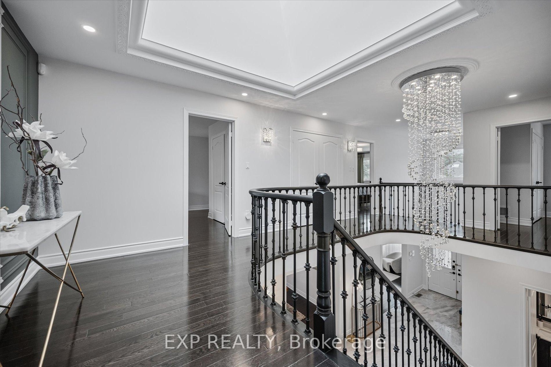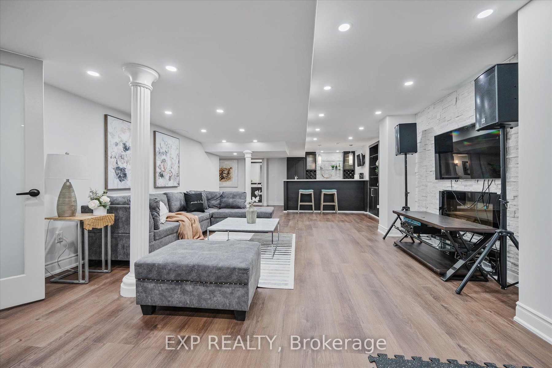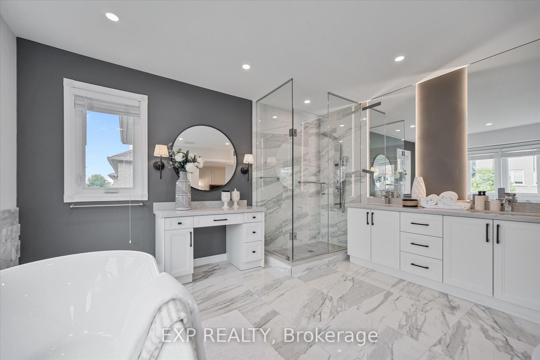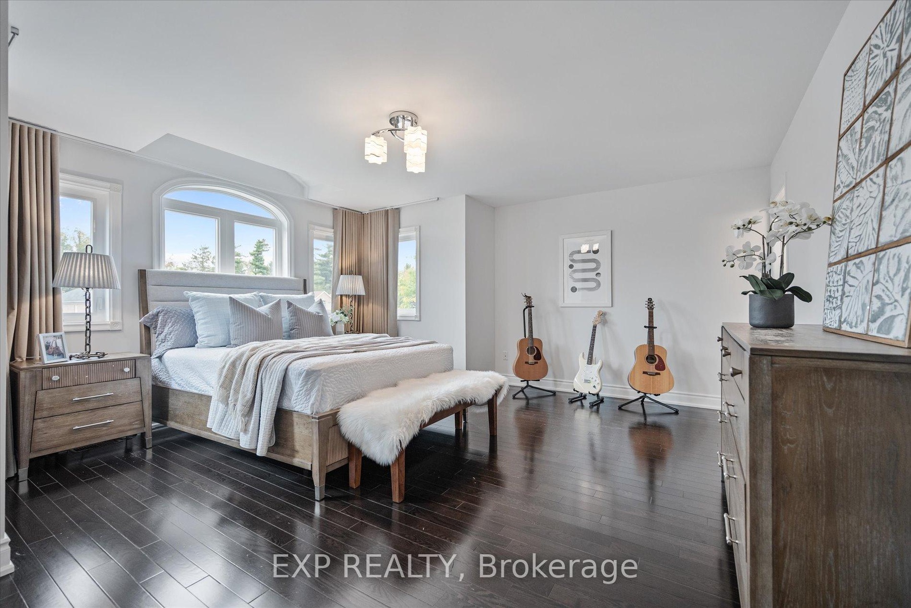 Experience modern luxury in this beautifully upgraded 3-car garage home, ideally situated in the prestigious Cachet community! Offering nearly 6,000 sq. ft. of elegant living space, this sun-filled residence faces south, has been freshly painted throughout, and features smooth ceilings on every level, combining refined finishes with exceptional comfort. The chef-inspired kitchen showcases built-in stainless steel appliances, Caesar stone countertops, Italian porcelain flooring, and hardwood throughout, highlighting both quality and style. A large skylight, designer lighting, and a feature wall enhance the bright, open-concept living and dining areas, creating an inviting atmosphere perfect for everyday living and entertaining. The primary bedroom retreat offers a spacious walk-in closet and a 5-piece ensuite with double vanities, delivering a perfect blend of luxury and functionality. Each bedroom is well-proportioned and thoughtfully designed to provide comfort and privacy for the whole family. Step outside to a composite deck with a natural gas line, ideal for outdoor gatherings. The fully finished basement adds versatile living space, featuring a wet bar, a large recreation area, and two additional bedrooms perfect for guests, in-laws, or extended family. Additional highlights include a security camera system and a 2024-installed water softener and filtration system, New garage Doors (2025) ensuring a move-in-ready home that seamlessly blends style, comfort, and practicality.