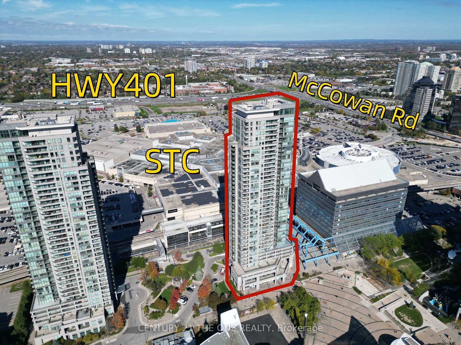Welcome Students and Newcomers! Bright and spacious corner unit offering 794 sq.ft. of comfortable living space. Features a large living and dining area with a functional split-bedroom layout and unobstructed views. Partially furnished for your convenience. Enjoy a full range of amenities including an indoor pool, fitness centre, table tennis room, library, virtual golf, party room, card room, billiard room, theatre, guest suites, and 24-hour concierge service. Unbeatable location with direct access to Scarborough Town Centre, public transit, and GO Bus Station. Only a 5-minute drive to Hwy 401 and one direct bus to the University of Toronto Scarborough Campus. Steps to Toronto Public Library, parks, Walmart, cinema, food court, and restaurants. One parking and one locker included. Dont miss this opportunity to live in the heart of Scarborough with ultimate convenience and vibrant city lifestyle!