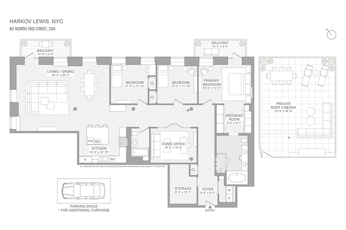 A deeded parking space is available for separate purchase at $150,000. The flip tax equal to 1.5% of the purchase price is to be paid by the buyer.