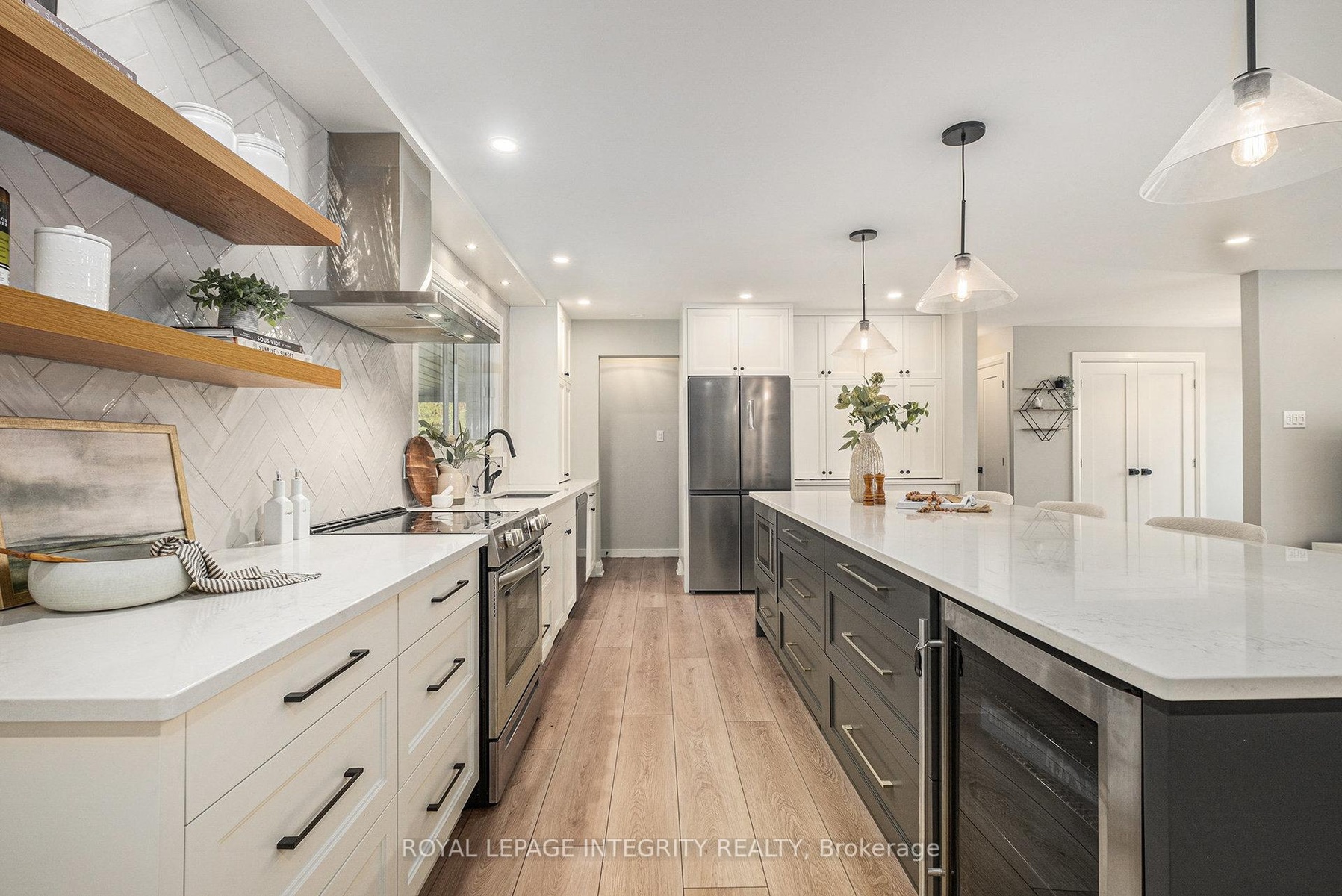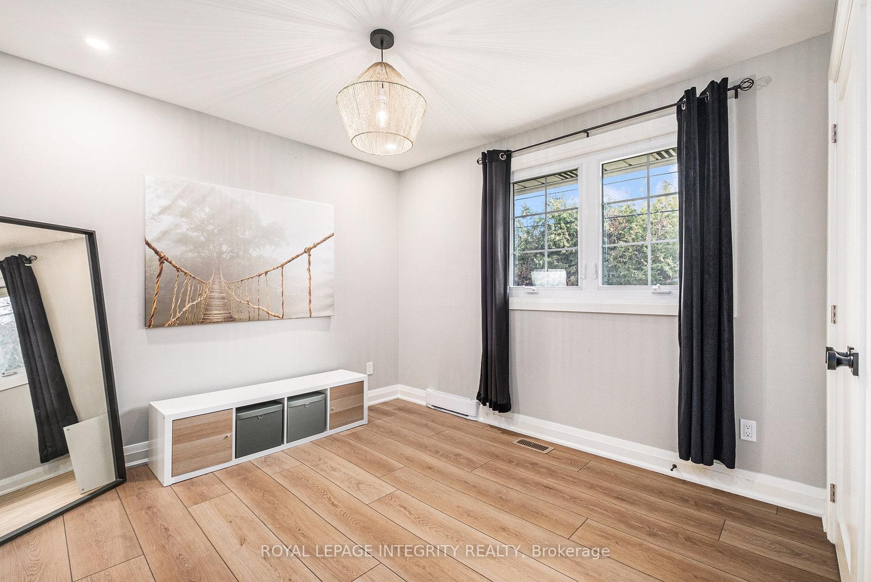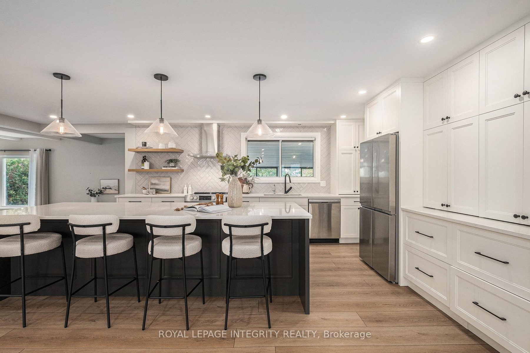 Gorgeous bungalow is more than meets the eye in a charming, rural setting with all of the conveniences of nearby Riverside South. Absolutely stunning and professional renovation by Villeneuve Interiors in 2020. Show stopping, open concept kitchen with designer like finishes, extraordinary storage, expansive island and all stainless steel appliances. A space that feels like your dream design board has come to life. You will love the versatility of the main living space as a large living room or dining space. Sunken living room with coffered ceiling and custom millwork finishes is anchored by a cozy fireplace. Access to a sunny sunroom that leads to the amazing backyard with no rear neighbours. This fully fenced private yard is perfect for relaxing poolside or entertaining with friends. Main floor primary bedroom with double closet and convenient 3 piece ensuite overlooking the lovely backyard. A full bathroom with great storage and modern updates service the two additional bedrooms on the main floor. Downstairs, an expansive lower level with more space to enjoy, complete with a three piece bathroom and a bar to enjoy a drink around. This space has enormous potential with additional access to the double car garage making it a primo candidate for an in law suite. This property is ideally located close to the conveniences of Riverside South, the airport, The Hard Rock Casino and very close to the multi use Osgoode Link pathway trail. We love this location for it's private, rural feel without sacrificing the city conveniences we tend to rely on so much. Important updates include but are not limited to kitchen 2020, roof 2016, furnace 2020, ac 2021, fireplace 2021, insulation updated in 2022 and new pool liner in 2022. Simply move in and enjoy!