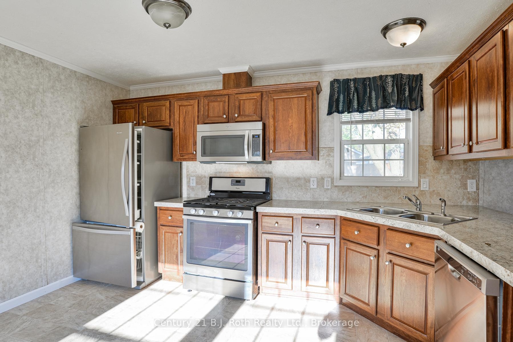 Step into this rare, modern and spacious unit (2015 built) featuring two full bathrooms, a large eat-in kitchen with a gas stove and beautiful high ceilings with crown moulding. The main area boasts rich oak cabinetry in the well appointed kitchen while large windows provide a stream of natural light that creates a bright and airy space. Down the hall you will find two ample-sized bedrooms including a unique primary bedroom with ensuite. The extra-wide design makes the entire home feel spacious and the 30 foot long south-east facing deck gives you a perfect place to enjoy your morning coffee or look out on your oversized yard. Units like this do not come up often, so call today to book your showing and make this your new, affordable home! All appliances are included, all you have to do is move in. Park approval required with $250 application fee.