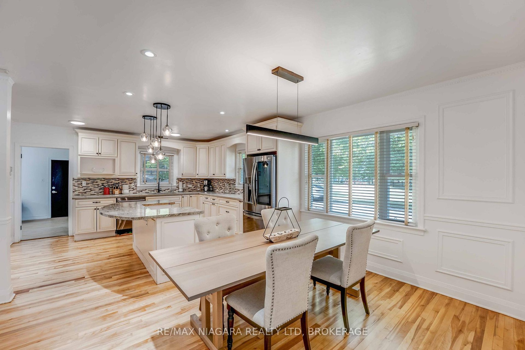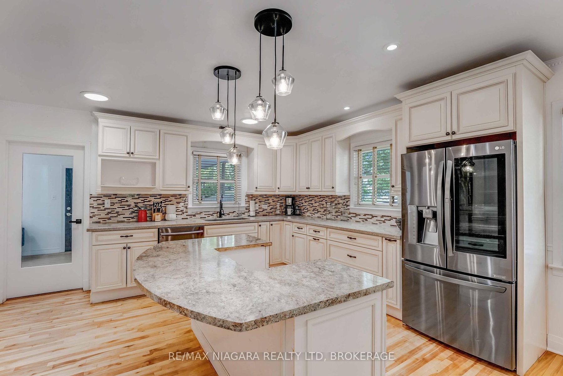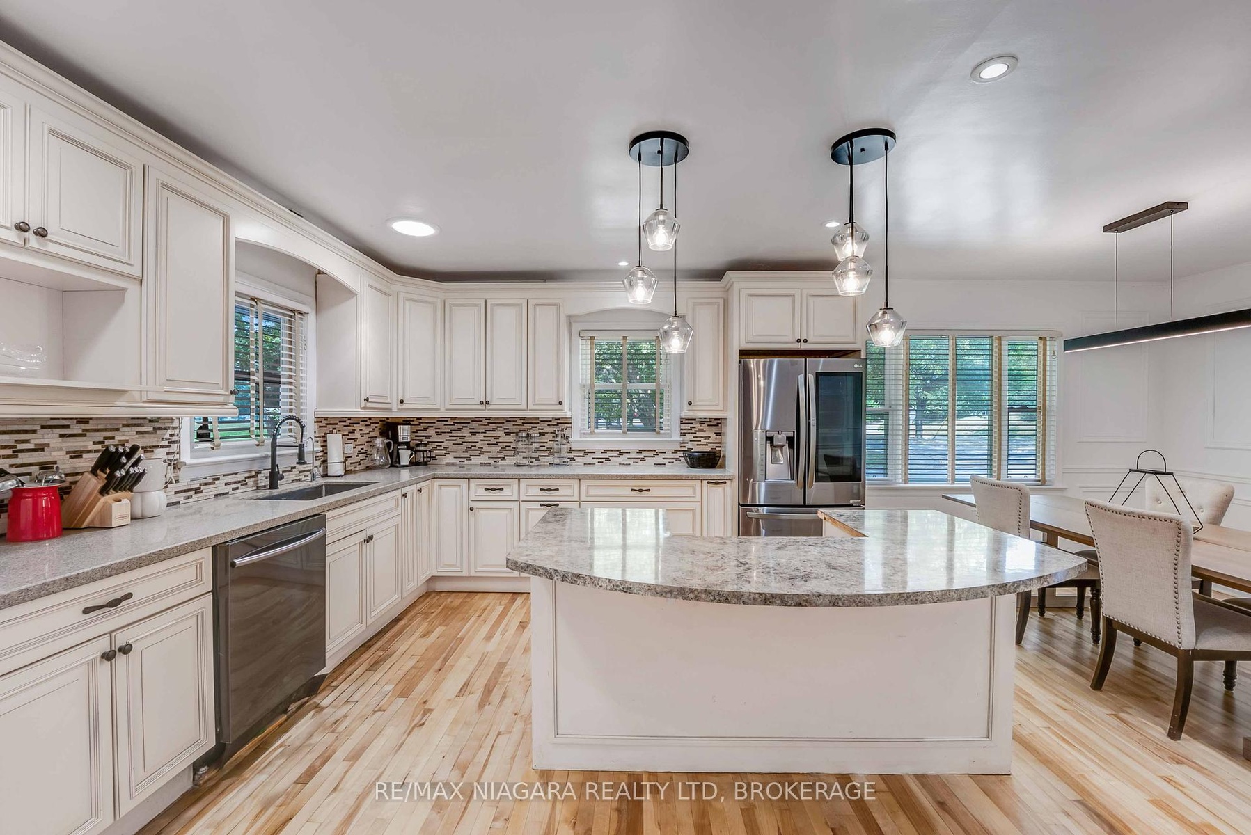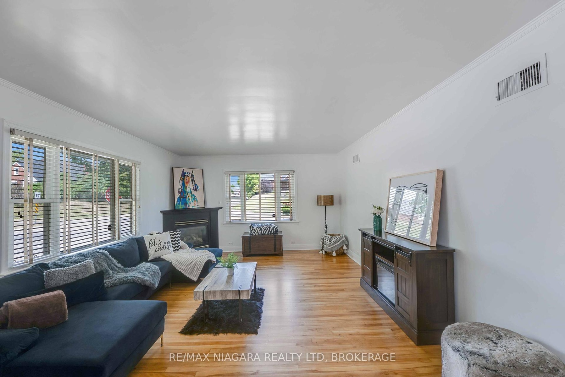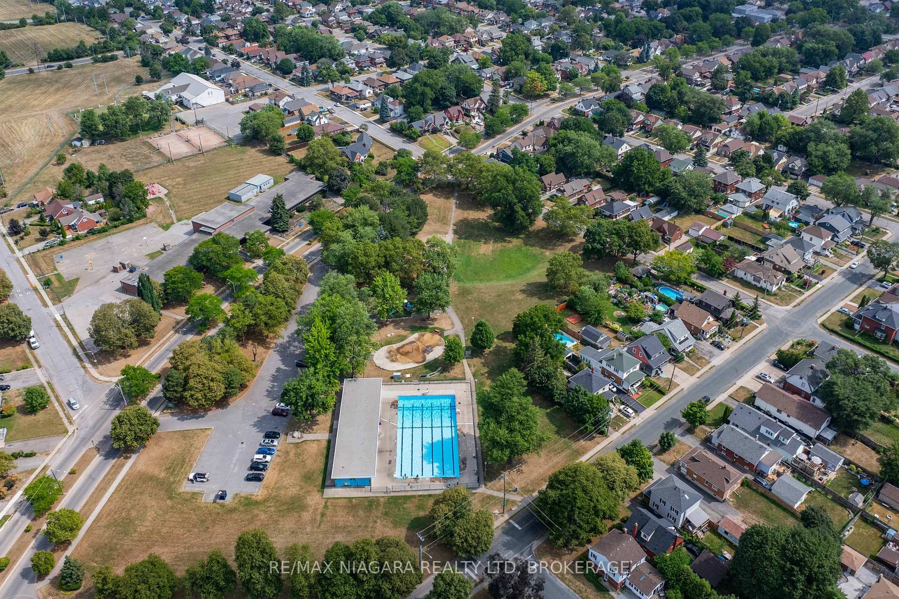 Prestigious Bungalow in Prime Niagara Falls Location. Situated directly across from the Municipal Pool and Splash Pads, this distinguished 1,600 sq. ft. fully finished turn key bungalow is one of the cities most recognizable residences. The home features four generously sized bedrooms, two full bathrooms, and an open-concept kitchen and dining area enhanced with quartz countertops, a floating island, and abundant cabinetry. The living room and fully finished recreation room each boast a gas fireplace, creating warm and inviting spaces. A bright sunroom seamlessly connects the home to the garage and opens through French doors to a large stamped concrete patio and an oversized storage shed. Exceptional curb appeal, a sought-after location, and a thoughtfully designed layout make this an outstanding opportunity in the heart of Niagara Falls just steps away from Valley Way Public School and St. Patrick's Catholic Elementary School and surrounded by amenities.