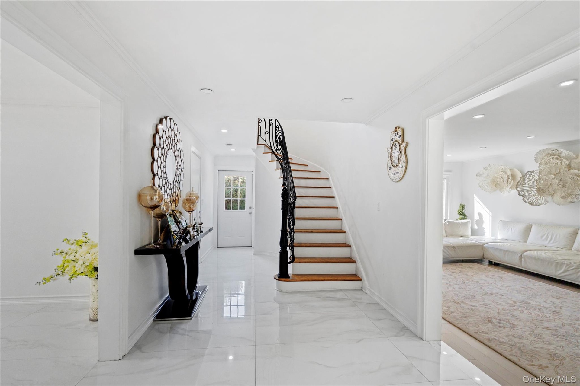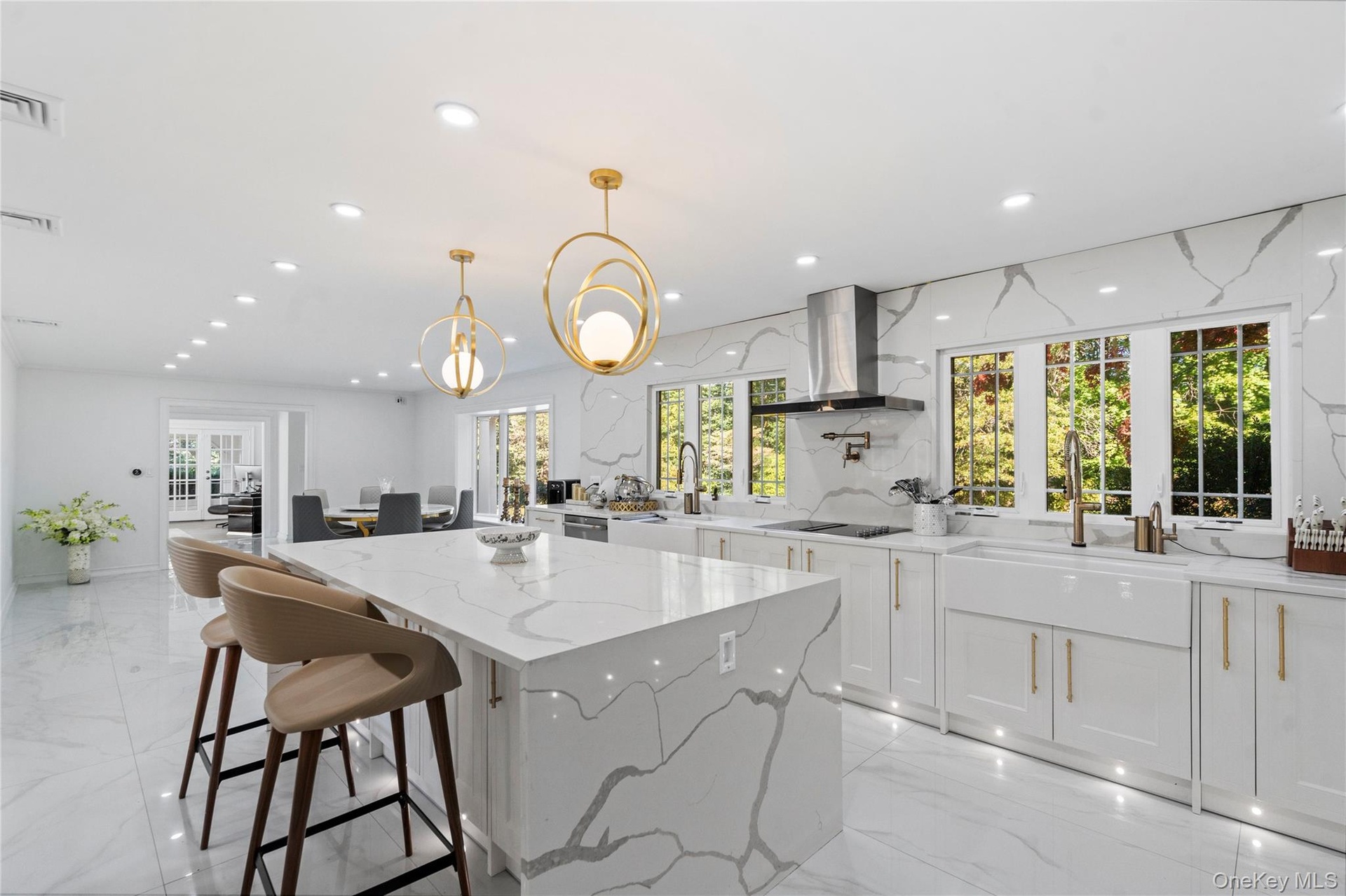 With all that is going on in this hectic world today, wouldn’t it be nice to go back to a more peaceful time? But what about today’s comforts and state-of-the-art amenities? Welcome to “Green Meadow” – a serene, park-like two acres of sprawling lawns, majestic trees, and a completely remodeled and updated white colonial sparkling like a diamond ringed by emeralds. Off a wooded country road in the heart of Long Island’s North Shore area that is lovingly called the Locust Valley area, a recent competitor to the Hamptons because of its easy access from New York City and its many recreational, shopping, and dining venues, a home like this is a rare opportunity. It not only offers a timeless elegance with modern convenience but is close to mansion museums of the island’s Golden Age, quaint village shops and restaurants, boating, beaches, nightlife, golfing, universities, theatres, equestrian and hiking trails, and high-end shopping centers. As you take a dip in your very secluded, estate-fenced inground pool or relax on your stone patio and look out on your property, visited occasionally by a deer or a fox, you can hardly believe your good fortune to enjoy a pristine, four-bedroom, three-bath home offering the latest in luxury living and modern elegance ideal for entertaining guests in style and grace.