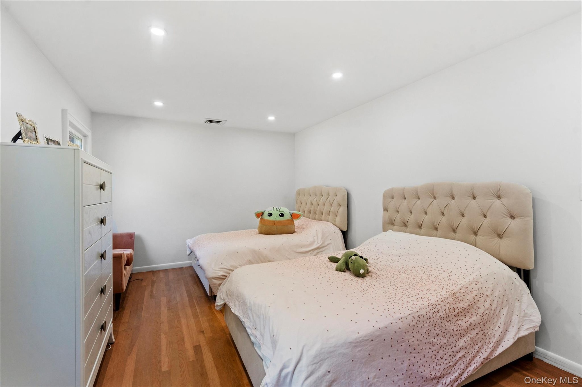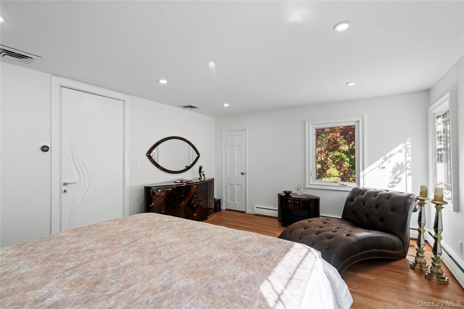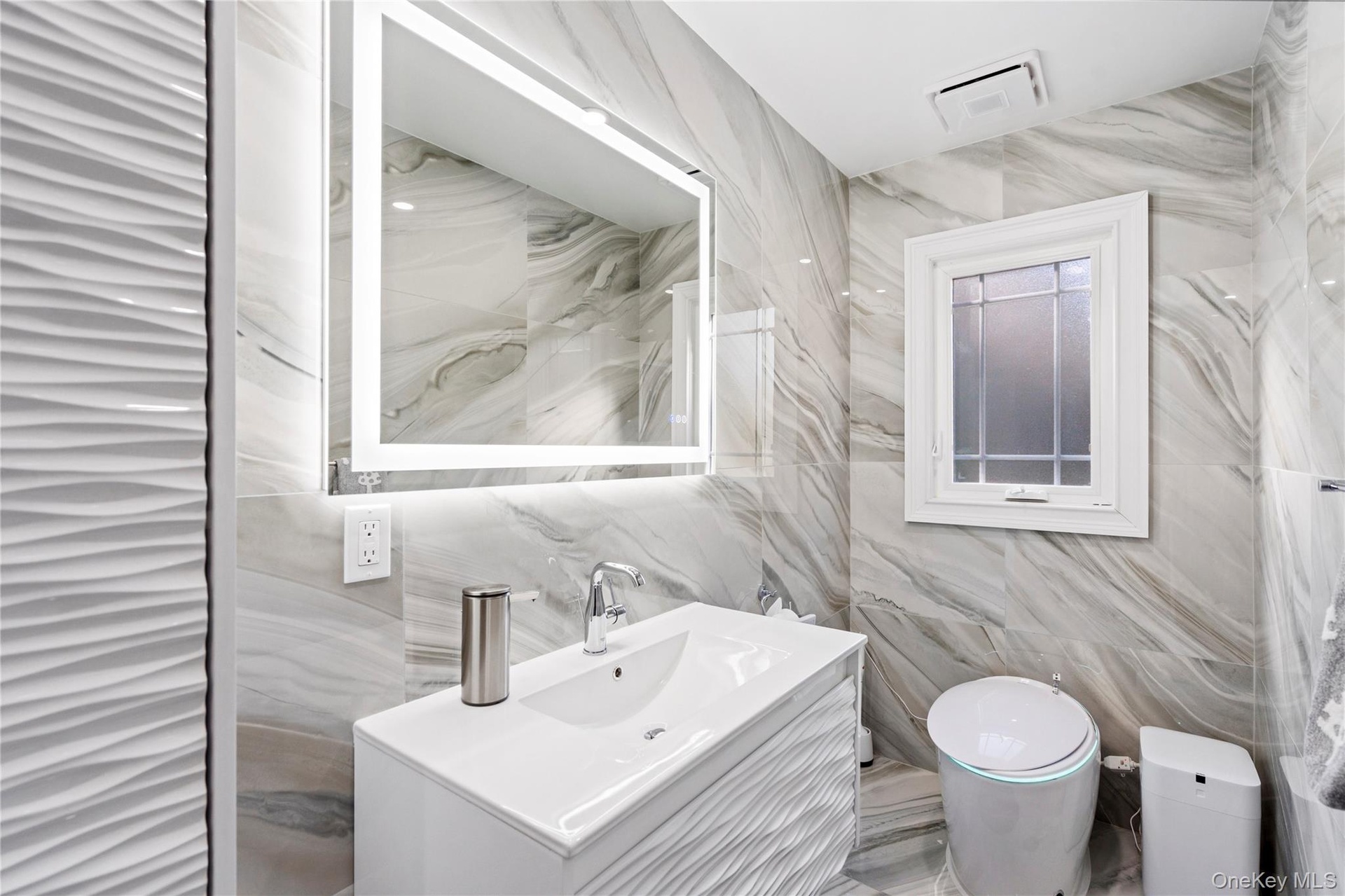 One the second floor, large, new, dramatic hall bathroom, featuring lapis-lazuli-style porcelain-covered walls, floor, and shower, serves three bedrooms, each with two windows, hardwood floors, and a closet. In its own wing, the primary suite includes a large bedroom with three windows, hardwood floors, a small closet plus a large walk-in closet, and an attractive, new primary bath with large twin vanity, towel warmer, glass-enclosed dark-blue porcelain shower, and marble-like porcelain walls and floors. A full, unfinished basement with high ceiling offers ample space for storage and/or expansion. Let your imagination run wild. Additional features include new flooring throughout; all new plumbing; new central-air with compressor; three-year-old emergency generator, inground sprinklers, and new roof. Come, experience this sparkling gem, and you will know you are home. View 3D tour and Floor plans.