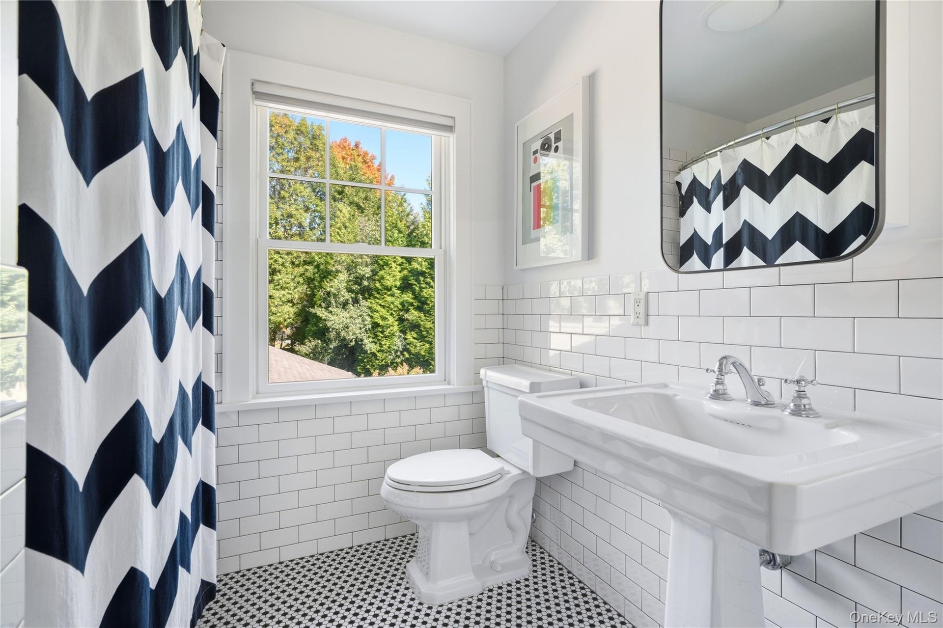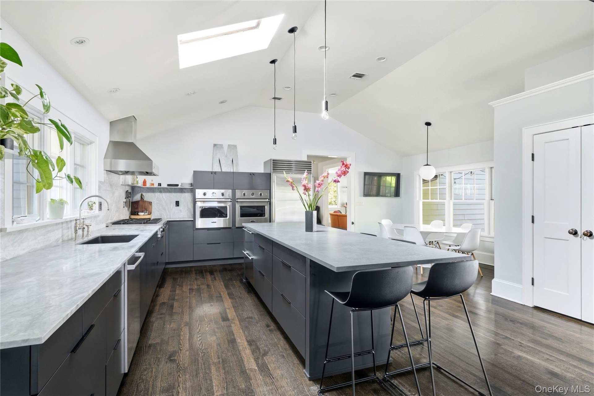 Circa 2007. Located in one of Upper Nyack’s most desirable locations, this exceptional custom contemporary home showcases impeccable design and craftsmanship—where classic architectural lines meet luxurious modern living. Every element, from the millwork to the materials, reflects quality and elegance. Over 3,700 sq ft of living space plus additional bonus space captures the perfect balance of timeless design and luxury. Nestled on a beautifully landscaped .56 acre lot, with South facing exposure, filling the home with natural light year-round. The heart of the home is an oversized chef’s kitchen with a vaulted and beamed ceiling complete with skylight, expansive marble counters, oversized center island with a modern quartz countertop, Viking double ovens, walk-in pantry outfitted with hand crafted built-ins for ideal organization, oversized Sub Zero fridge plus additional beverage and freezer drawers —designed for both everyday living and effortless entertaining. Glass doors off the kitchen open to a beautiful bluestone patio and fully fenced backyard, framed by mature plantings and custom built stone walls creating a serene, private retreat. Smartly designed side mudroom entry allows ease of living into the kitchen wing, with full bath, bonus/flex room and well appointed laundry room. The welcoming and spacious front porch with dramatic stone columns and dual entrances lead to the large open foyer with double closets. The elegant and impressively scaled living and dining rooms with a reclaimed brick, wood-burning fireplace, elevated 9-foot ceilings, plus a versatile family room perfect for work or relaxation, and an additional half bath. The primary suite feels like a sanctuary, offering a vaulted ceiling, oversized walk-in closet, and spa-inspired bath with designer tile, double vanities and a luxurious walk-in shower. An additional three, well proportioned and bright bedrooms with spacious closets, and a full tiled bath complete the second level. The lower level adds tremendous flexibility; adjacent to the oversized 2 car garage is a large finished bonus room featuring soaring ceilings—ideal for playroom, studio, work space or gym—plus a full walkout basement ready to customize. The entire home is heated with multi-zoned radiant heating offering a most luxurious comfort that is quiet and invisible. Wide-plank wooden floors throughout, multi-zone central A/C, and expansive windows create an inviting atmosphere of warmth and comfort. Close to Hook Mountain, Nyack Beach, River Hook and all Nyack Village has to offer. Graceful and generous proportions, plus exquisite craftsmanship throughout make this home one of a kind.