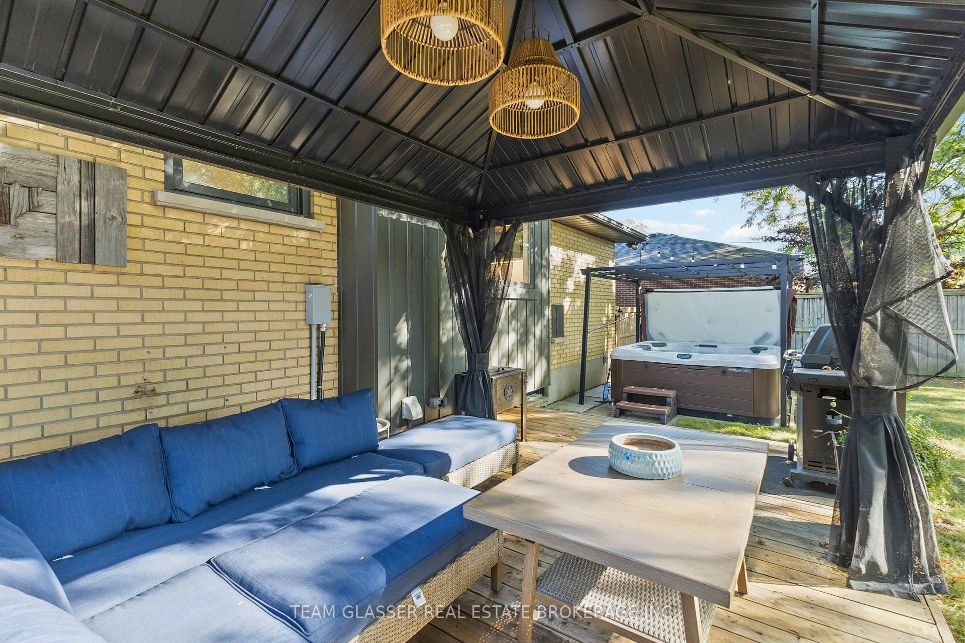 Welcome to 191 Gladman Ave, a beautifully refreshed 3-bedroom, 2-bathroom detached bungalow in London's family-oriented Southcrest neighborhood, spanning 1,059 sq ft above grade on a spacious 60 x 120 ft lot and blending timeless brick charm with over $100,000 in renovations (2020-2025) for modern comfortideal for first-time buyers, families, or downsizers. Featuring high end windows and doors throughout (2021) for energy efficiency and noise reduction. The sunlit living room boasts large windows and carpet-free flooring which flows to the dining area and bedrooms. Unwind in style with the inviting gas fireplace, adding warmth, ambiance, and effortless elegance to gatherings or quiet evenings. The gourmet kitchen (2020) shines with white cabinetry, quartz countertops, KitchenAid stainless steel appliances, glass backsplash, herringbone flooring, a sleek glass pantry and easy backyard access for barbecue season. Three main-floor bedrooms offer ample closets, with the primary enjoying serene views, plus a sleek 4-piece bath and luxury vinyl (2020). The finished basement includes a versatile rec room, a second bath, laundry, storage and smart updates like a new sump pump (2025), backflow valve (2025), cleaned weeping tiles (2024). Outdoors, curb appeal shines with a freshly paved double-wide driveway (2024) for 5+ vehicles and mature landscaping. The fenced backyard oasis features a wooden deck with Gazebo (2021), Bullfrog hot tub (2022) with pergola, shed (2023), all on an expansive treed lawn. Just minutes from Gladman Park, Arthur Ford School, trails, Wortley Village, White Oaks Mall, downtown, transit, Victoria Hospital, and Highway 401 this home is conveniently located close to all of life's needs. Don't wait, book your showing today!