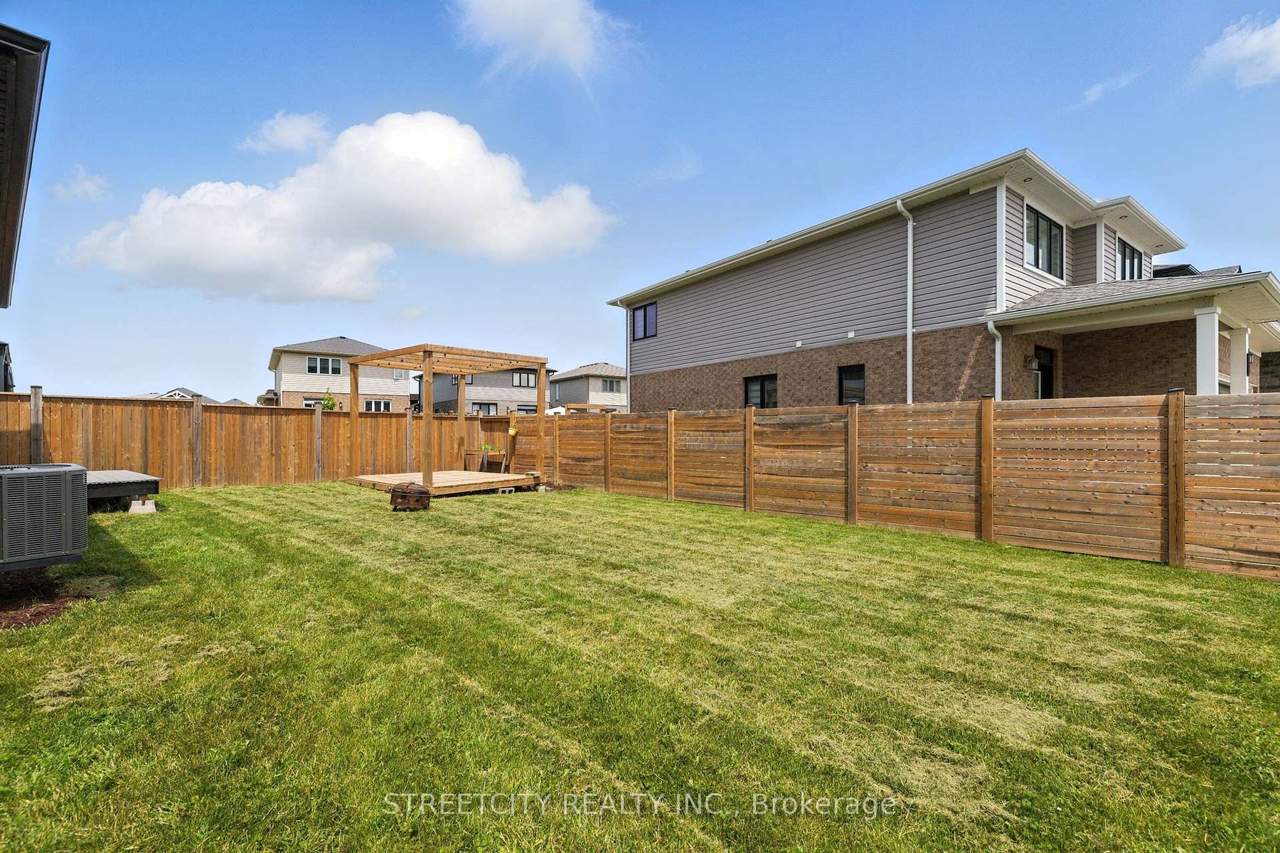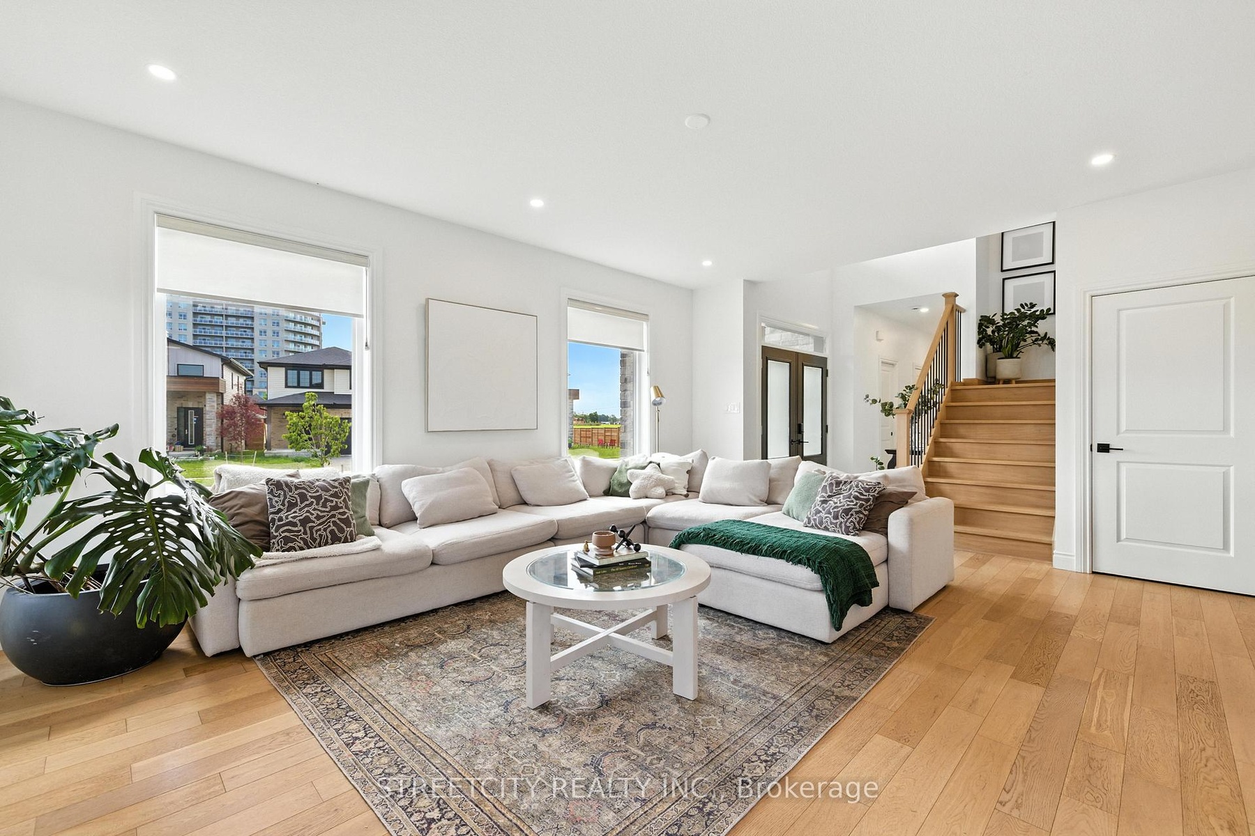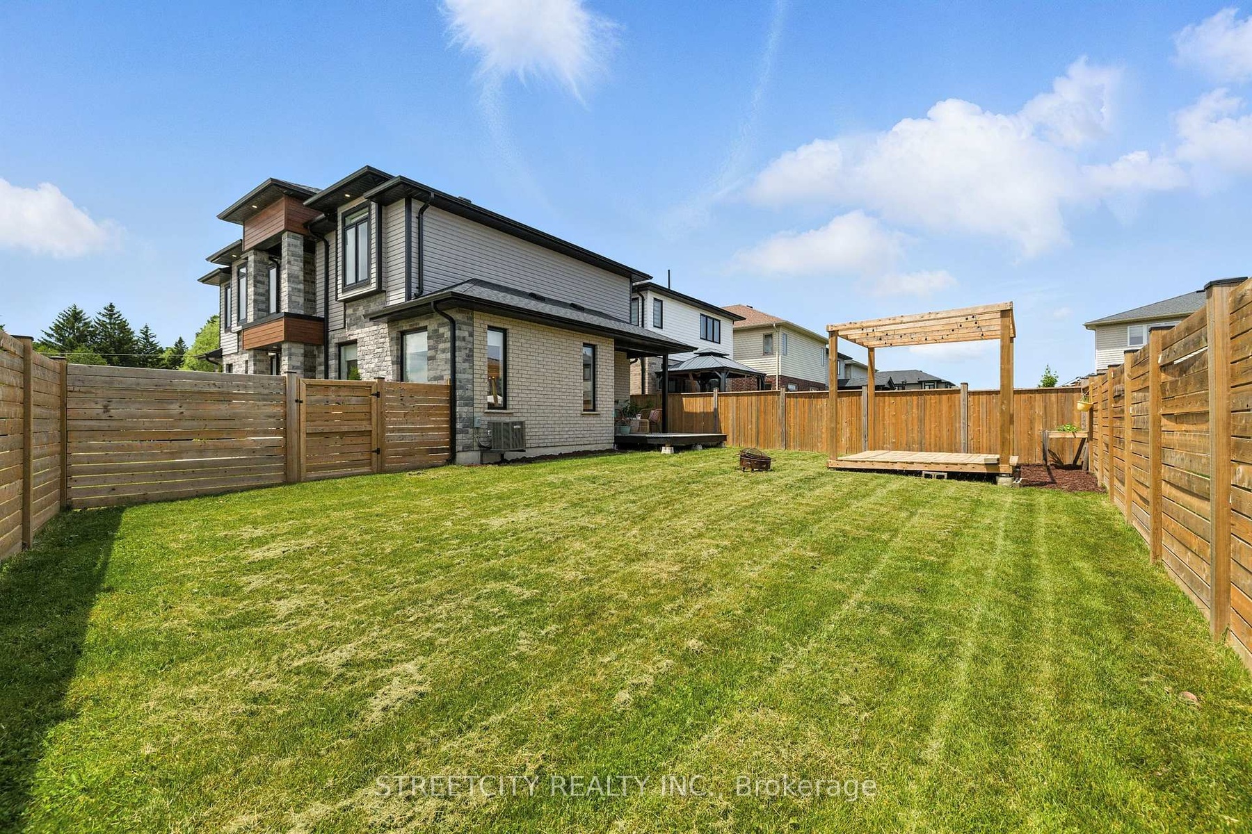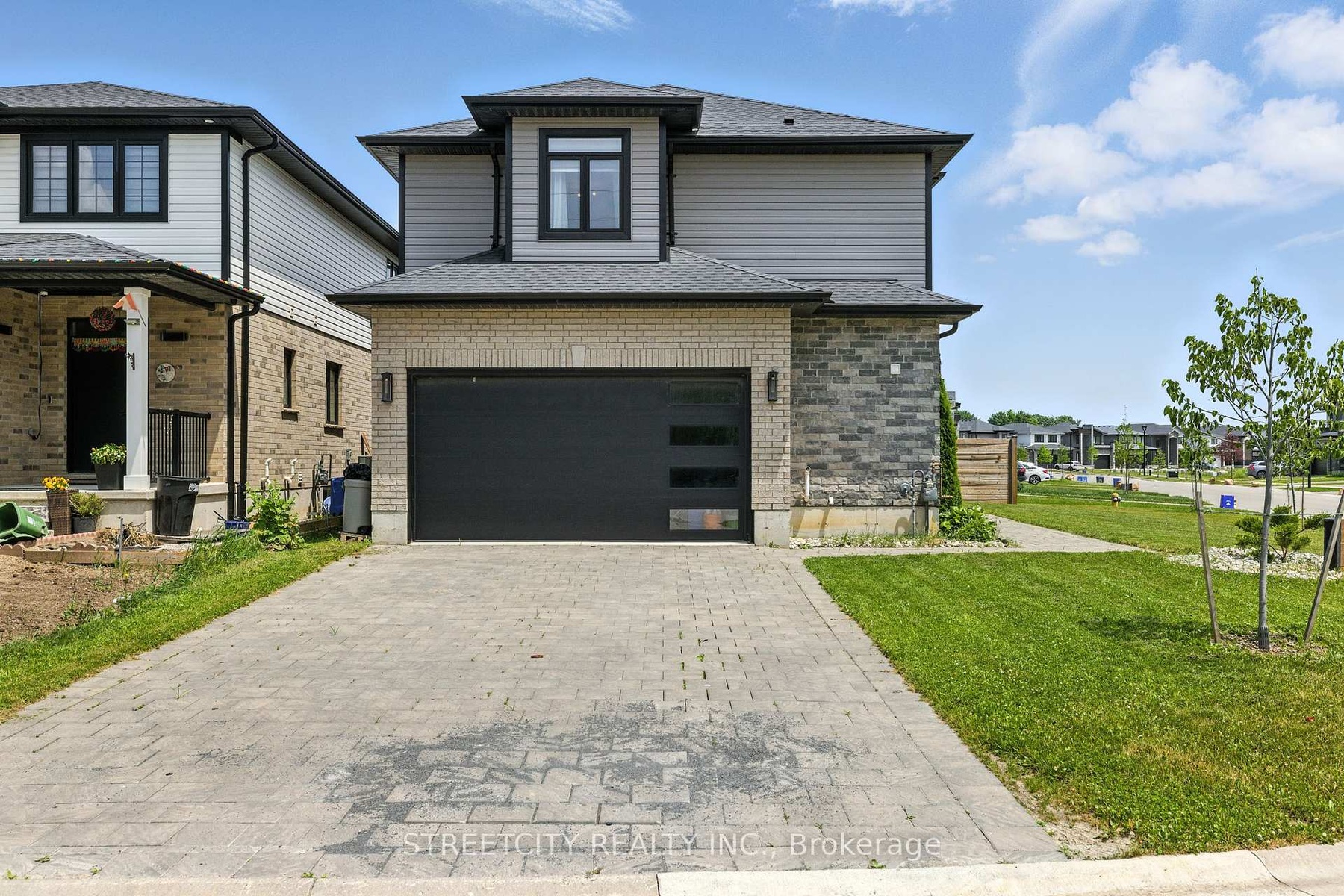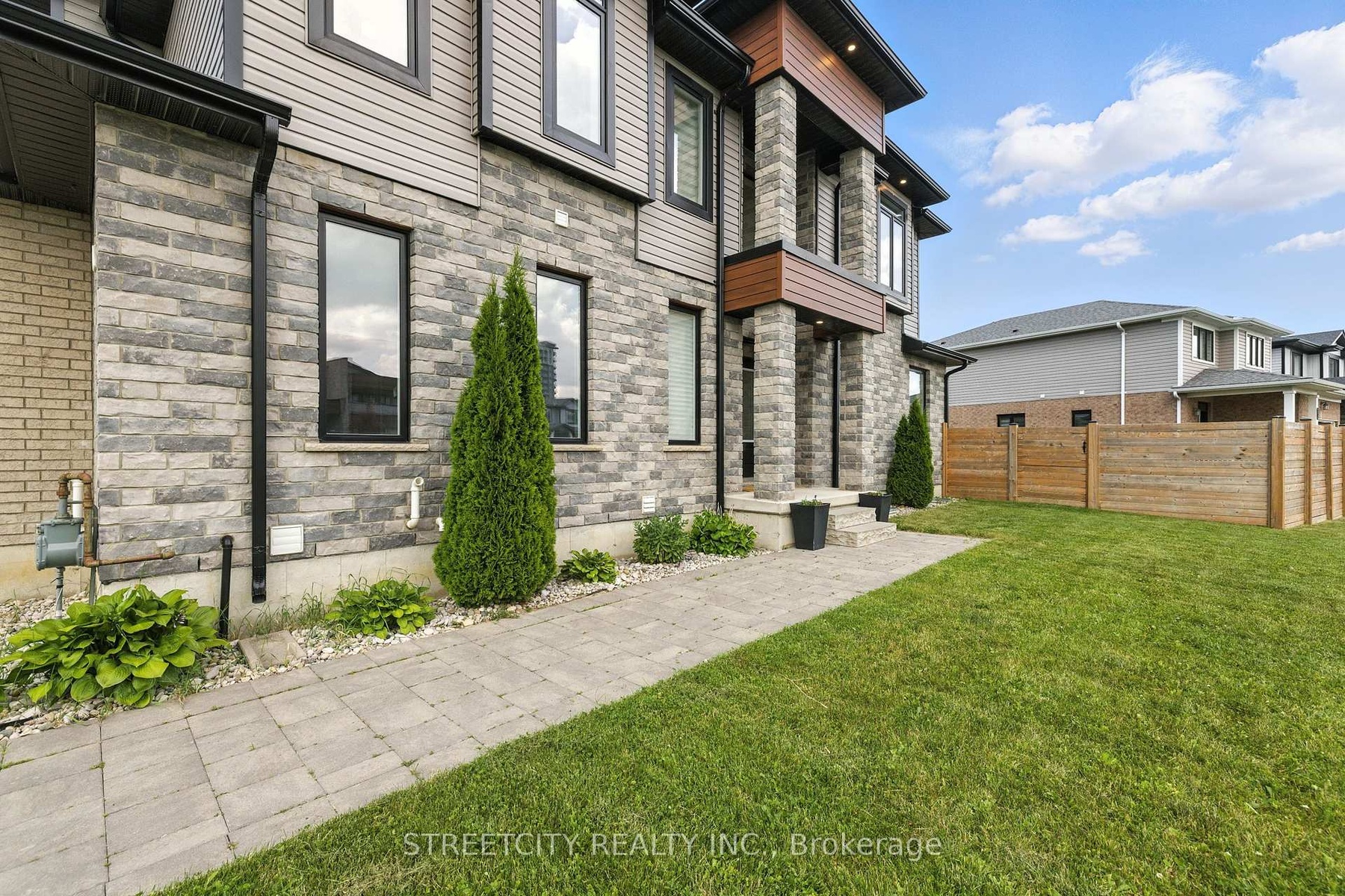Welcome to this beautifully designed 2-storey modern home in a quiet, family-friendly neighborhood in North London. Situated on a premium corner lot with a fully fenced backyard, this home is walking distance to schools, trails, and parks and just minutes from Masonville, UWO, and all amenities. This home offers luxury finishes and functional space throughout. (See list for upgraded finishes). The main floor features a sunlit open-concept layout with high ceilings, large windows, and an elegant blend of stone, wood, and contemporary design. The kitchen boasts quartz countertops, premium cabinetry, stainless steel appliances, and a large island ideal for entertaining. The main level also includes a spacious family room, formal dining area, and an office. Upstairs, you'll find 3 spacious bedrooms, including a luxurious primary suite with a walk-in closet and private ensuite. Additional features include large windows, custom blinds, and upgraded flooring. The unfinished basement offers endless potential for a rec room, gym, or in-law suite. Laundry is located in the unfinished basement and can also be relocated to the main level. The options are endless!