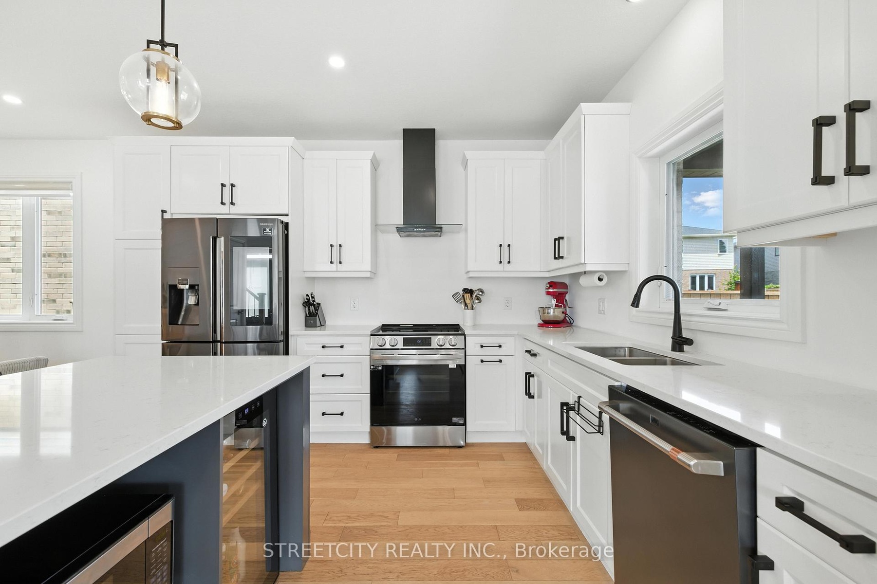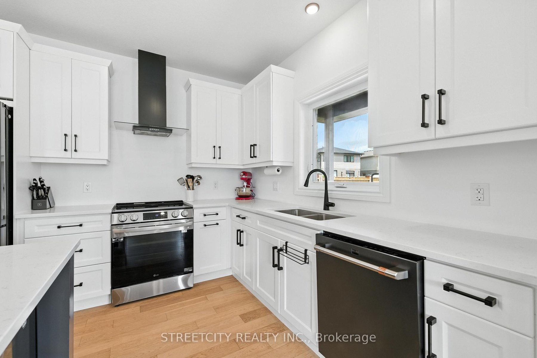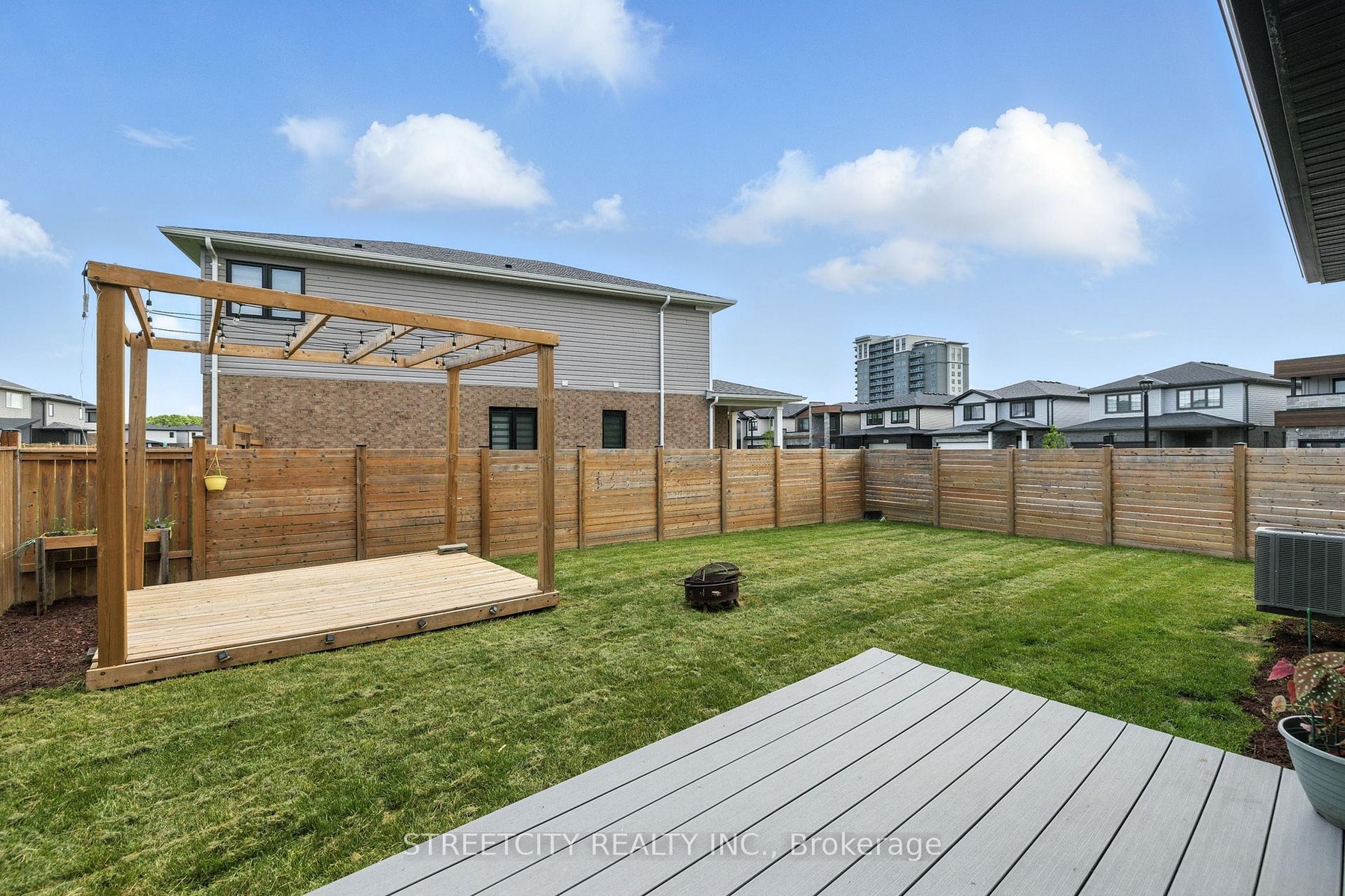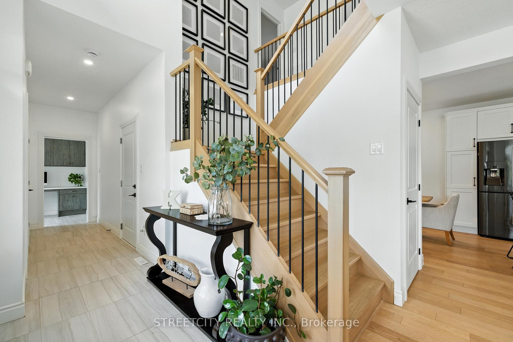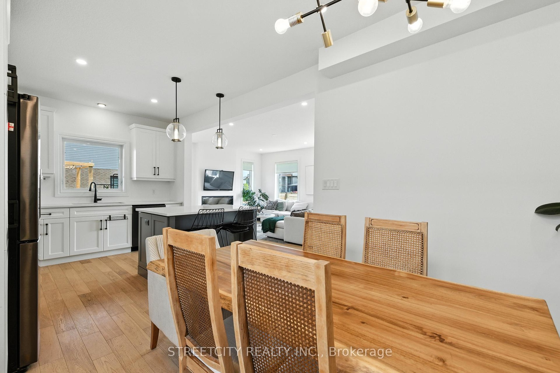 Welcome to this beautifully designed 2-storey modern home in a quiet, family-friendly neighborhood in North London. Situated on a premium corner lot with a fully fenced backyard, this home is walking distance to schools, trails, and parks and just minutes from Masonville, UWO, and all amenities. This home offers luxury finishes and functional space throughout. (See list for upgraded finishes). The main floor features a sunlit open-concept layout with high ceilings, large windows, and an elegant blend of stone, wood, and contemporary design. The kitchen boasts quartz countertops, premium cabinetry, stainless steel appliances, and a large island ideal for entertaining. The main level also includes a spacious family room, formal dining area, and an office. Upstairs, you'll find 3 spacious bedrooms, including a luxurious primary suite with a walk-in closet and private ensuite. Additional features include large windows, custom blinds, and upgraded flooring. The unfinished basement offers endless potential for a rec room, gym, or in-law suite. Laundry is located in the unfinished basement and can also be relocated to the main level. The options are endless!
