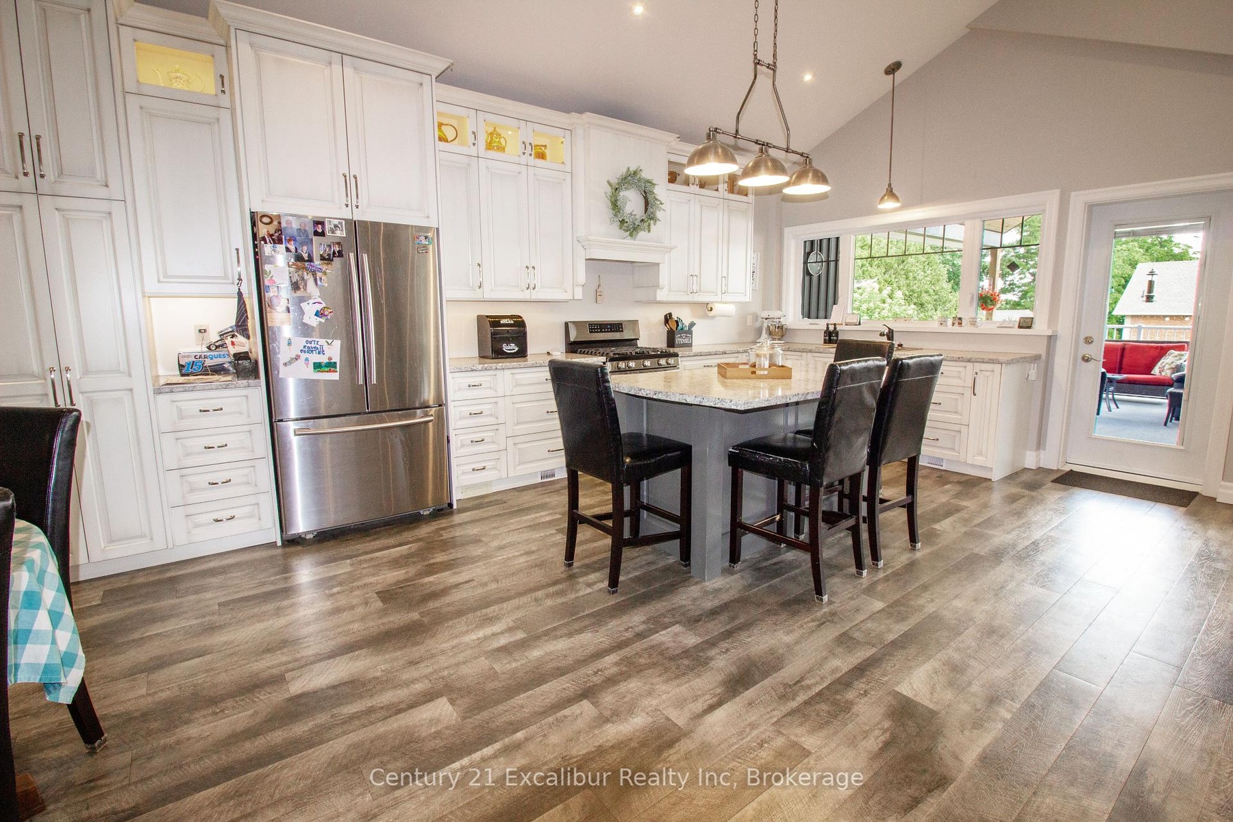 Welcome to your dream home a perfect harmony of design, functionality, and comfort set on a quiet, beautifully landscaped lot. Every detail here has been thoughtfully crafted to make daily living both easy and enjoyable. Car enthusiasts, hobbyists, and growing families alike will love the attached 5-car garage, offering exceptional versatility for vehicles, tools, toys, or even a personal workshop. There's also ample parking for guests, trailers, or an RV no compromises on space. Built with superior ICF construction, this home is as durable as it is beautiful. Step inside to a bright, open-concept layout where vaulted ceilings and large windows fill the space with natural light. The main-floor living design provides stair-free convenience, perfect for all ages and stages of life. Everything you need is right at your fingertips, combining comfort, practicality, and timeless style. From the main level, walk out to your covered deck and enjoy a peaceful outdoor retreat perfect for relaxing, dining, or entertaining year-round. The fully finished walkout basement adds even more versatility, featuring a spacious in-law suite complete with its own entrance, full kitchen, bathroom, living area, and generous bedrooms. Whether hosting extended family or providing a private space for guests, it feels more like a second home than a basement. Tucked away on a quiet street yet just minutes from the shops, restaurants, and charm of downtown Fergus, this property offers the best of both worlds tranquility and convenience. This isn't just a house its the lifestyle you've been waiting for.