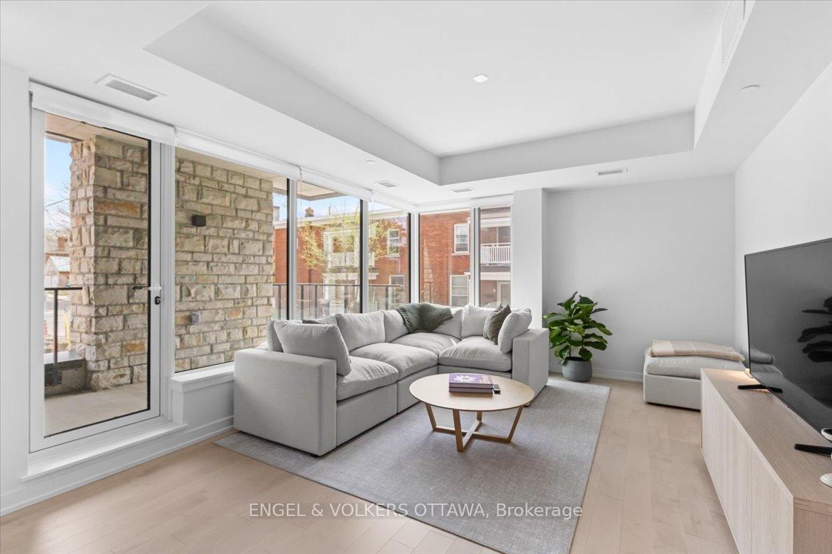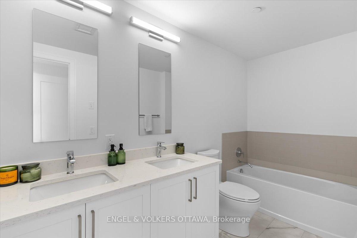 Stone Abbey Residences is a truly exclusive boutique condominium with only 19 suites, located on a quiet residential street in Old Ottawa South. This is a 2 bedroom 2 bathroom corner suite measuring at 1016 sq ft, with incredible finishes throughout. This unit showcases a sleek, contemporary kitchen outfitted with stainless steel appliances, a built-in cooktop and microwave, quartz countertops, and a spacious island that offers both extra prep space and comfortable seating. Great primary bedroom with a walk-in closet and a spacious ensuite with a separate tub and walk-in glass shower. Enjoy a private balcony with a gas hook-up, where striking stone architecture adds timeless charm. Balanced approach to condo living moments away from the countless shops and restaurants of Old Ottawa South, Lansdowne and the Glebe, yet surrounded by nature with bike and walking paths nearby. Building amenities include visitor parking, Rooftop Terrace with BBQs and incredible views of the Rideau Canal. Underground parking spot and storage locker included.