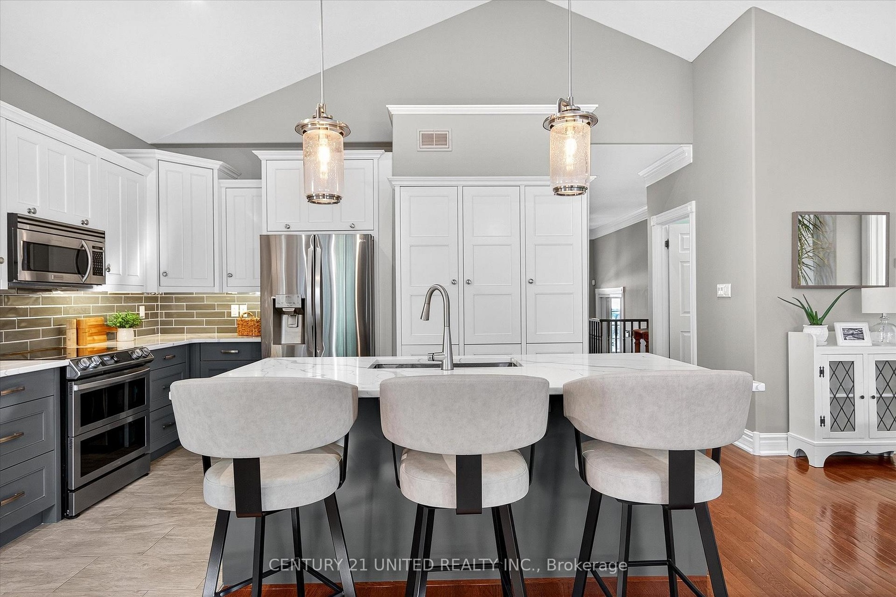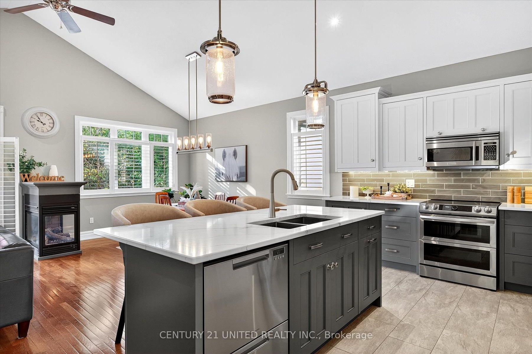 Luxury Living near Lock 19! This beautifully appointed 2+2-bedroom, 3 bath raised bungalow exudes elegance. The main living area features hard surfaces throughout with a bright, open concept living space, with vaulted ceiling, that combines the living room, dining room and kitchen with natural separations provided by the three-sided gas fireplace and serviced kitchen island with room for seating. Spacious kitchen with SS appliances including double oven and pantry nearby. The living room exits onto the back patio for convenient hosting or outdoor cooking in a very private backyard. The laundry is located on the main floor, and all four bedrooms are generously sized with a primary that features a 4-piece ensuite and walk in closet. The lower level has ample storage room, a third 4-piece bathroom, a second gas fireplace in the rec room and nine-foot ceilings providing lots of air space. Many inclusions are offered with purchase and pre-inspected for your convenience. Don't miss your chance to make this gem your own!