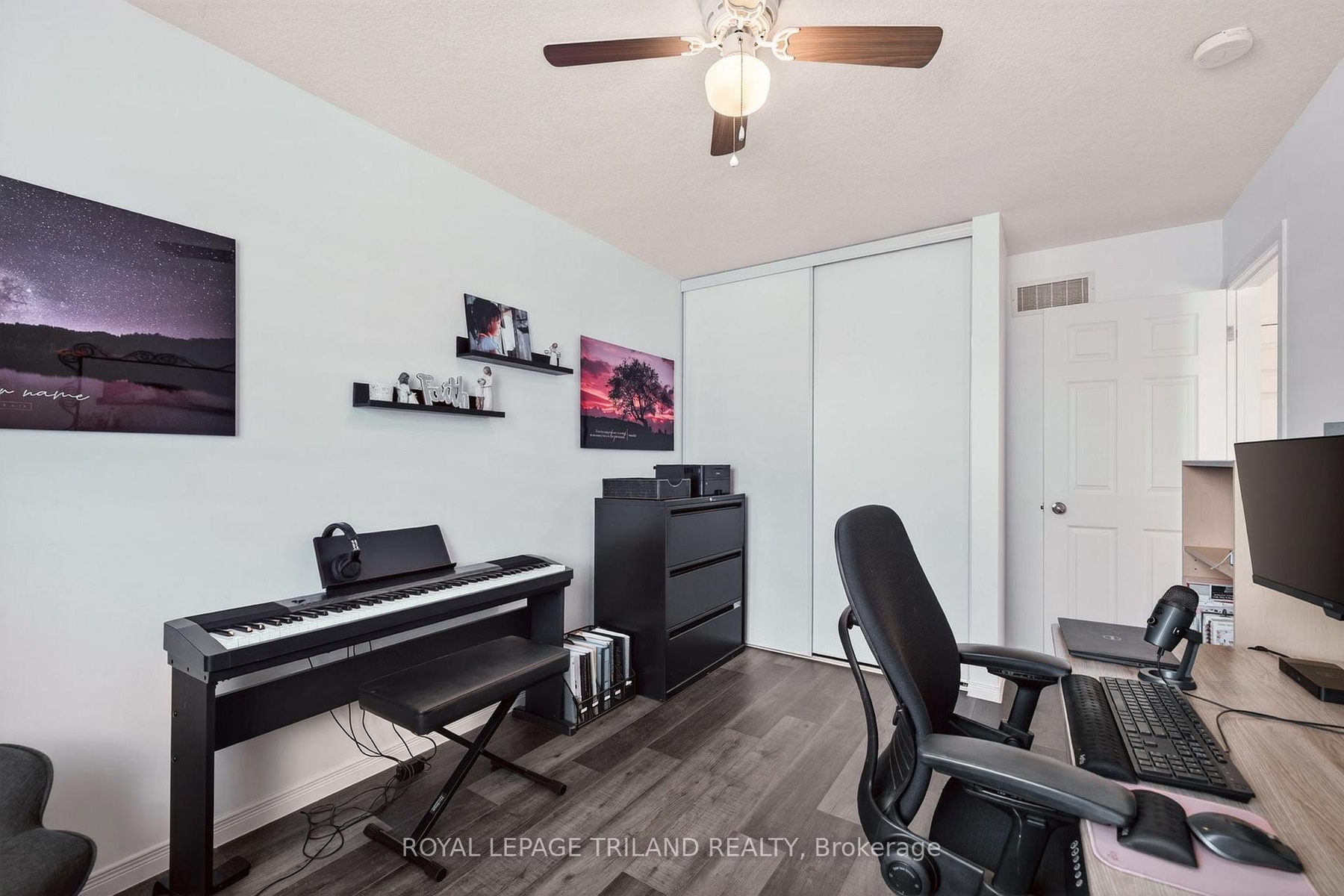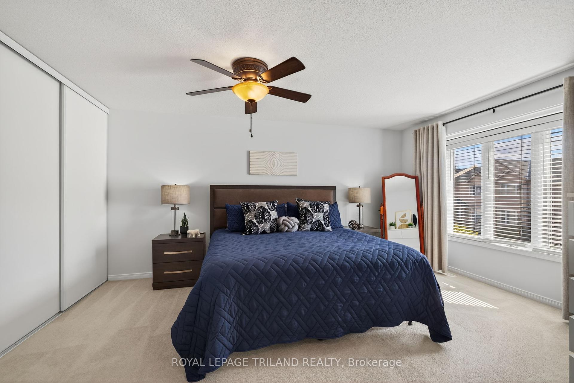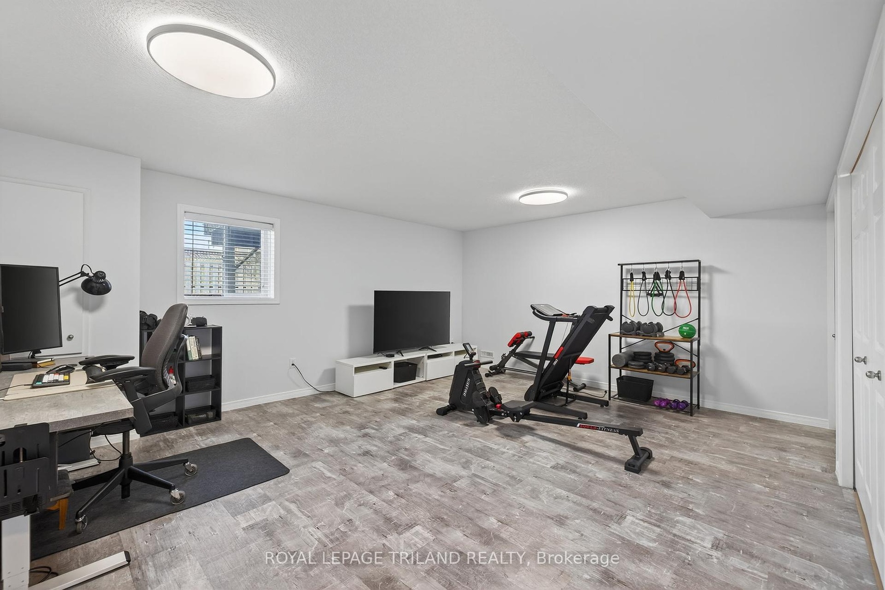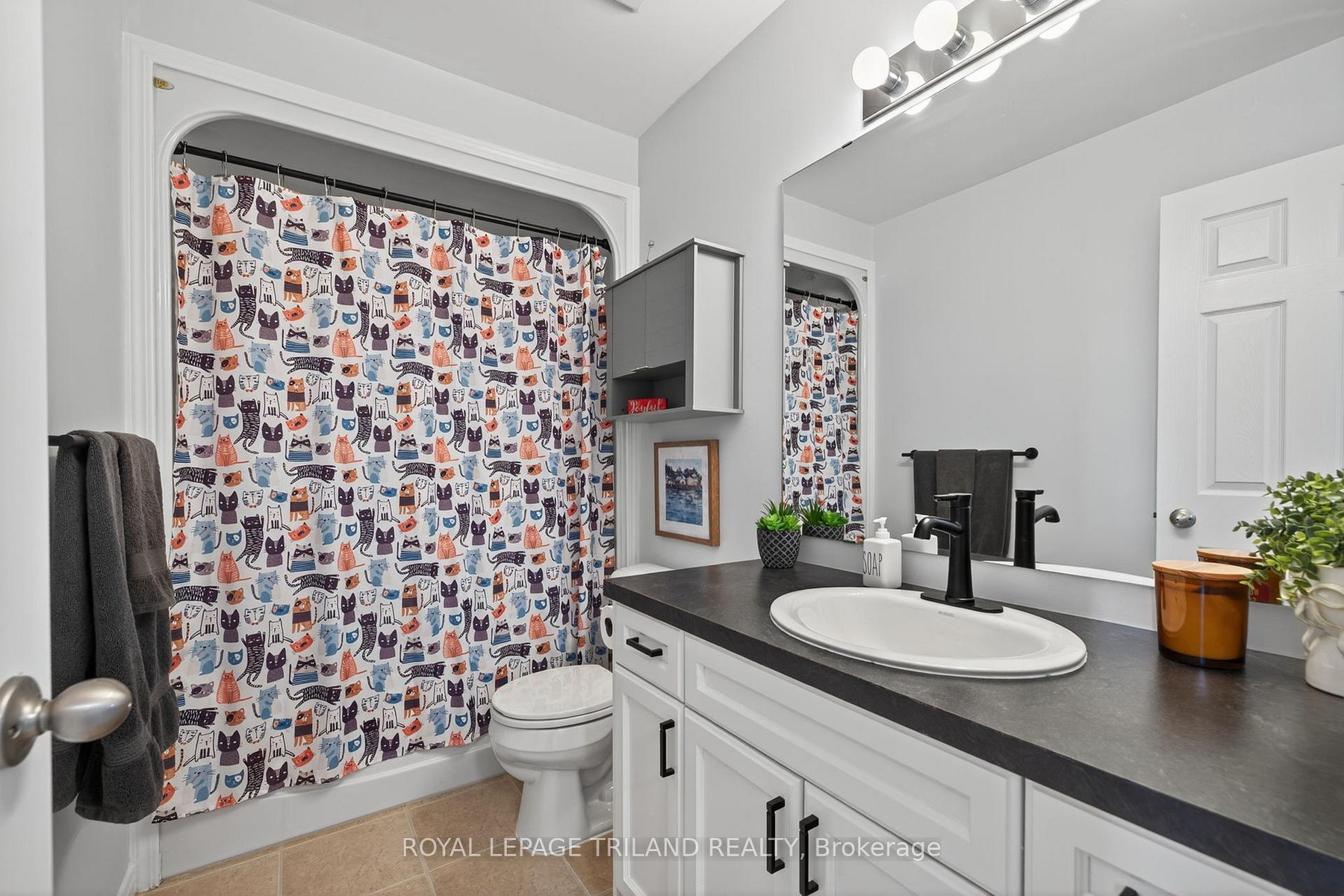 Welcome to 1625 Purser Street, Unit 39, a stylish multi-level end unit condominium in Northeast London's sought-after Wyngate community by Rembrandt Homes. Originally constructed in 2009, this popular 'Westerdam' floor plan offers the perfect blend of modern comfort and low-maintenance living. Step inside to a bright and spacious foyer with direct access to the single car garage, and a convenient 2 piece bath. Just a few steps up, the open concept living, kitchen, and dining areas create the perfect space for everyday living and entertaining. The living room is finished in laminate flooring, while the kitchen and dining area feature ceramic tile and a brick patterned accent wall that adds a touch of character. The crisp white cabinetry, updated countertops, black granite sink, and high end stainless steel appliances make this kitchen as functional as it is stylish. From the kitchen, step out to your elevated sundeck, ideal for morning coffee or that evening meal. Back inside, continue up to your private primary retreat, a spacious king sized bedroom complete with a massive south facing window, generous closet space, and a 3 piece ensuite. The top level offers two additional bedrooms and a 4 piece bath, ideal for family, guests, or a home office setup. The lower level features a bright rec room finished in luxury vinyl plank flooring, with a large above grade window and a handy laundry closet. The lowest level provides plenty of extra storage and utility space, ensuring every inch of the home is put to good use. Enjoy the ease of maintenance free condo living in a prime location, just minutes to shopping, restaurants, London Airport, Masonville Mall, Western University, Fanshawe College and major transit routes. With its modern layout, natural light, and move in ready condition, this end unit offers the perfect balance of style, comfort, and convenience. Experience effortless living at its best, welcome home to Purser Street!