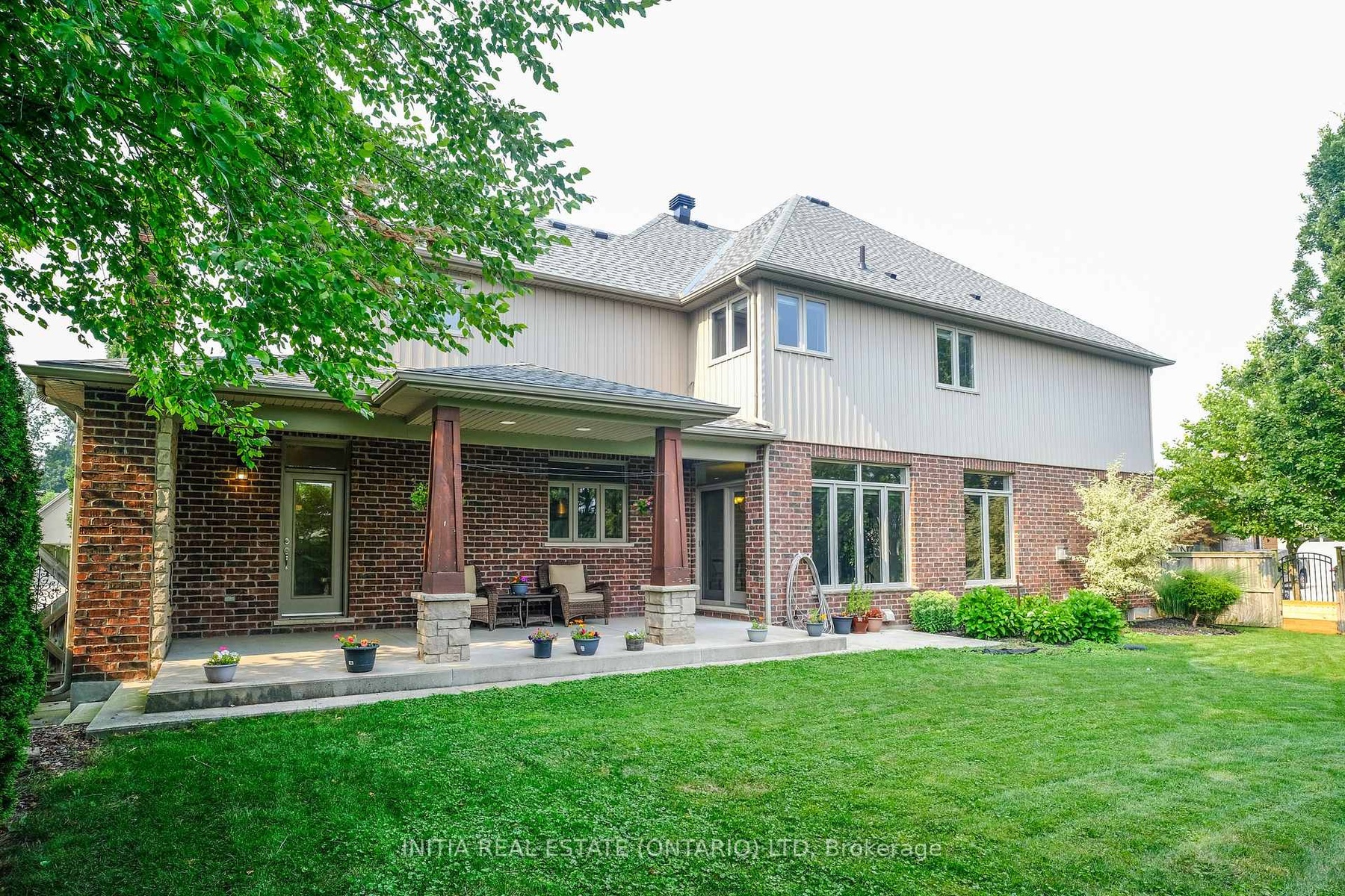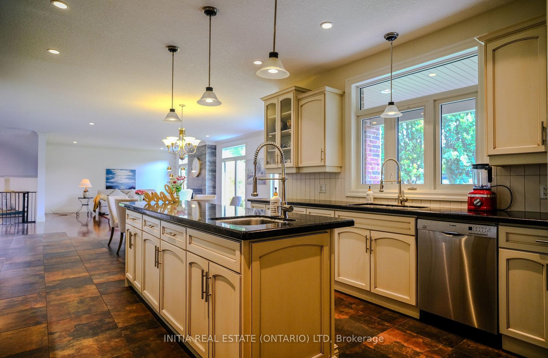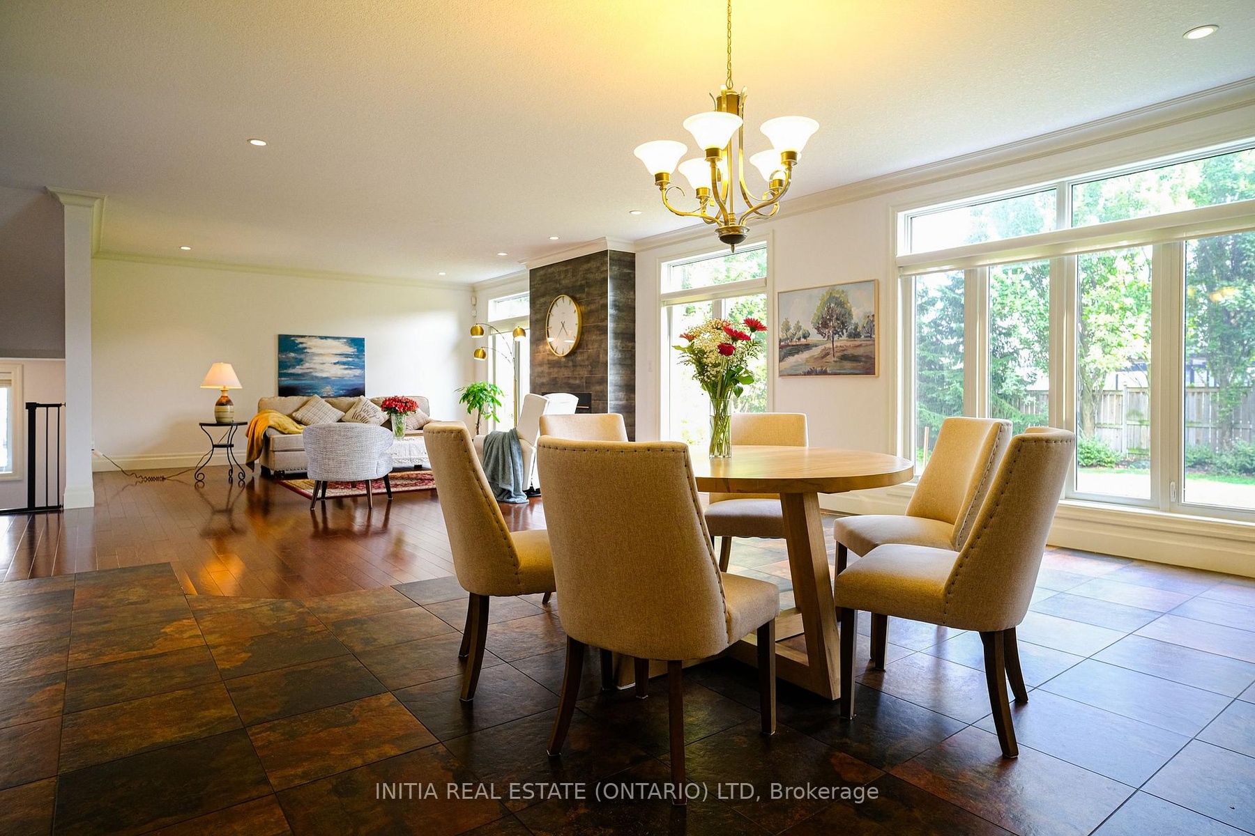 All levels finished. Stunning executive in Wickerson Woods with southern exposure on a large lot in south London featuring superb curb appeal ,charming porch , gorgeous foyer, paver stone driveway, main floor exquisite office with built-in book shelving, oak hardwoods & ceramic throughout with in-floor heating, high end finishes providing living space near 5641 sqft (above ground is 3841 sqft), 9' ceilings on main with crown moulding, formal dining room, transom windows for plenty of light, extra wide solid oak stairs ,200amp electrical, & sprinkler system. Master ensuite has dual sink, bathtub & glass walk-in shower , and heated floors. Open concept design offers 7.24M X 6.17M great room & gourmet kitchen with granite counter tops, tile backsplash, SS appliances, concealed large cabinet doors open to butler walk-in pantry. Double terrace doors leading to south-facing private backyard covered by concrete patio with wood burning barbecue & outdoor fireplace. Huge finished basement involves family room ,fireplace, one bedroom, a full bath ,loads of storage space ,home theatre equipped with projector ,surround sound system, and extra stairs to HEATED 3-car garage. $22000 upgrades in 2024 including new hardwood in 2 bdroms & new shingles. Close to all amenities & Boler Mountain Ski Club .