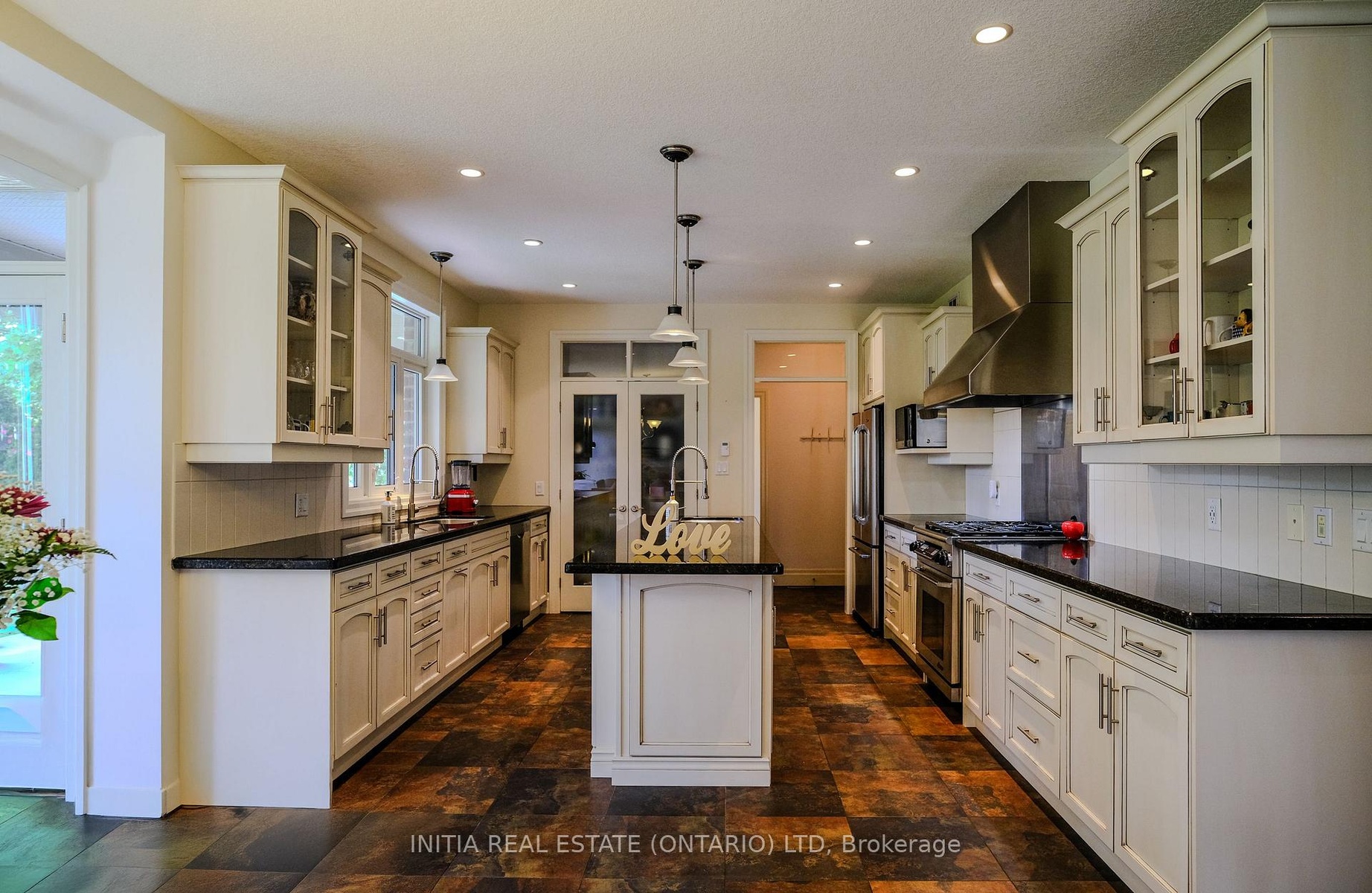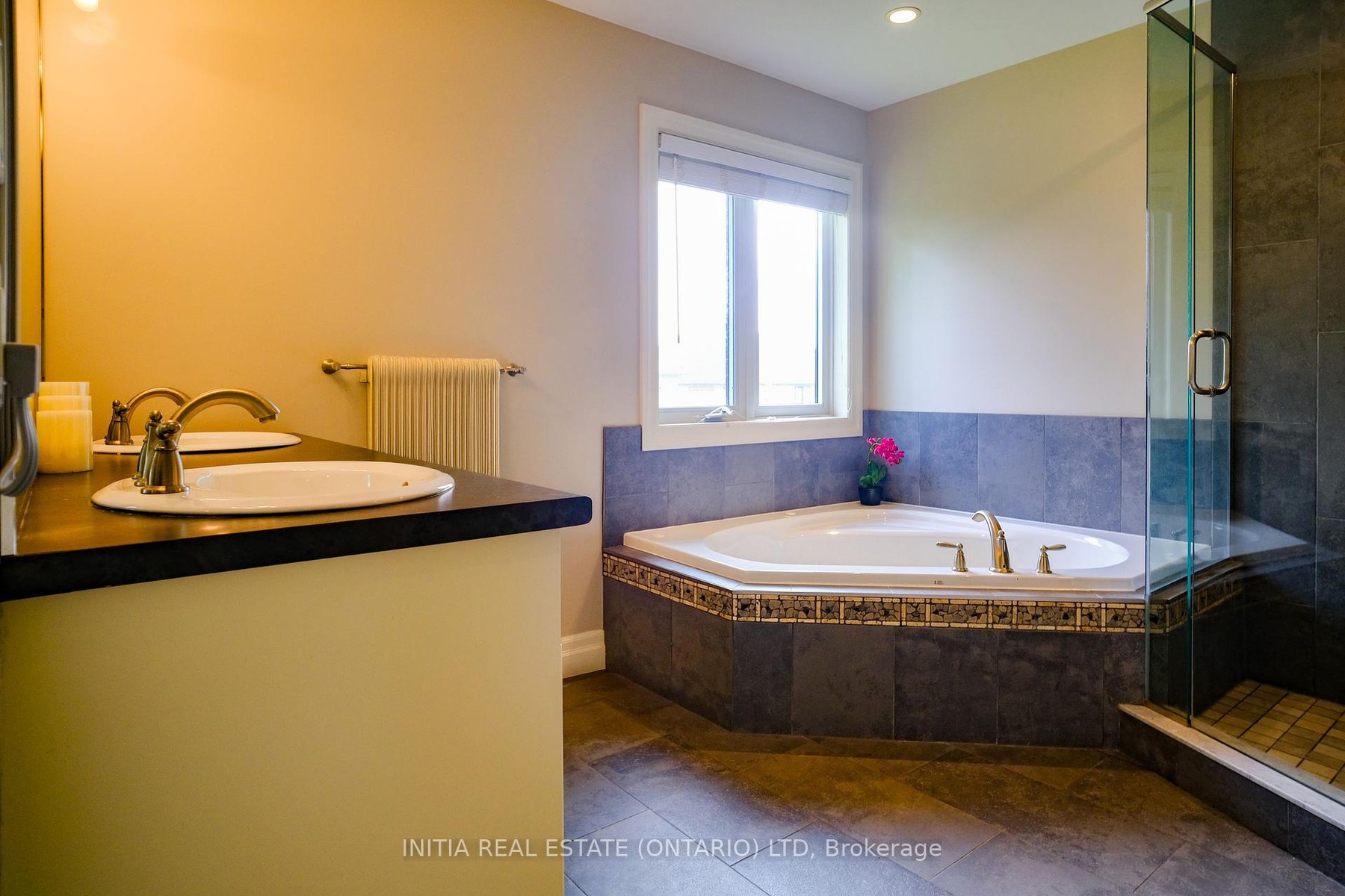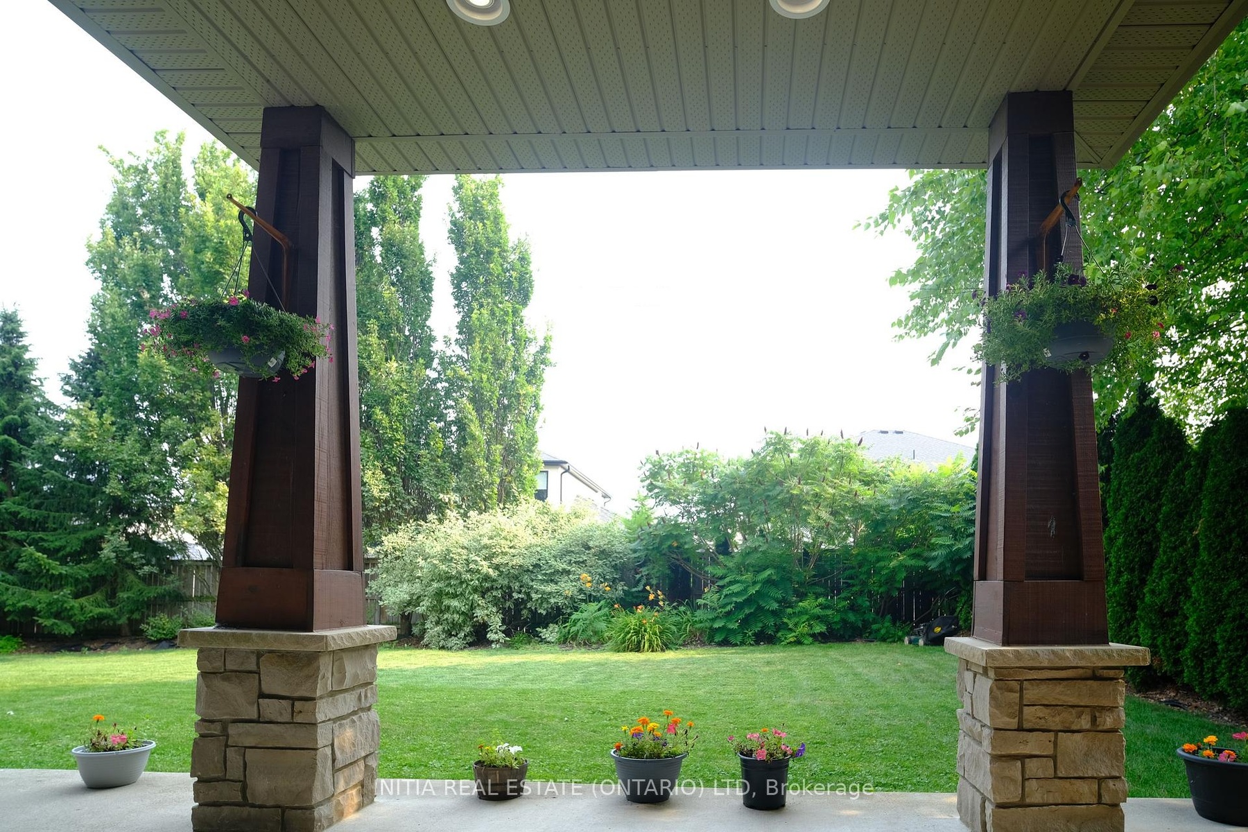 All levels finished. Stunning executive in Wickerson Woods with southern exposure on a large lot in south London featuring superb curb appeal ,charming porch , gorgeous foyer, paver stone driveway, main floor exquisite office with built-in book shelving, oak hardwoods & ceramic throughout with in-floor heating, high end finishes providing living space near 5641 sqft (above ground is 3841 sqft), 9' ceilings on main with crown moulding, formal dining room, transom windows for plenty of light, extra wide solid oak stairs ,200amp electrical, & sprinkler system. Master ensuite has dual sink, bathtub & glass walk-in shower , and heated floors. Open concept design offers 7.24M X 6.17M great room & gourmet kitchen with granite counter tops, tile backsplash, SS appliances, concealed large cabinet doors open to butler walk-in pantry. Double terrace doors leading to south-facing private backyard covered by concrete patio with wood burning barbecue & outdoor fireplace. Huge finished basement involves family room ,fireplace, one bedroom, a full bath ,loads of storage space ,home theatre equipped with projector ,surround sound system, and extra stairs to HEATED 3-car garage. $22000 upgrades in 2024 including new hardwood in 2 bdroms & new shingles. Close to all amenities & Boler Mountain Ski Club .