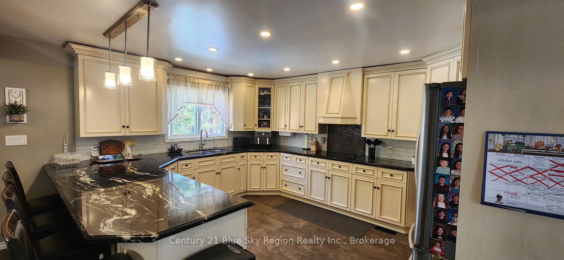 Private Bungalow tucked away on nearly 3 Acres. It offers the perfect blend of privacy, comfort, and functionality. The open-concept living and dining area is ideal for both everyday living and entertaining, featuring oak hardwood flooring and seamless flow throughout. The custom kitchen is a chef's dream, complete with large granite counter tops, vinyl plank flooring, a built-in oven/microwave combo, and ample cupboard space. The main level includes four well-sized bedrooms and a stylish 5-piece bathroom. Downstairs, you'll find a generous rec room, a large 5th bedroom, the laundry facilities, and a large unfinished family space that's insulated, wired, and ready for drywall. Outside, enjoy approximately an acre of cleared, landscaped yard with nearly 2 acres of natural bush. Relax or entertain on the expansive front and back decks, take a dip in the pool, or utilize the detached double-car garage.