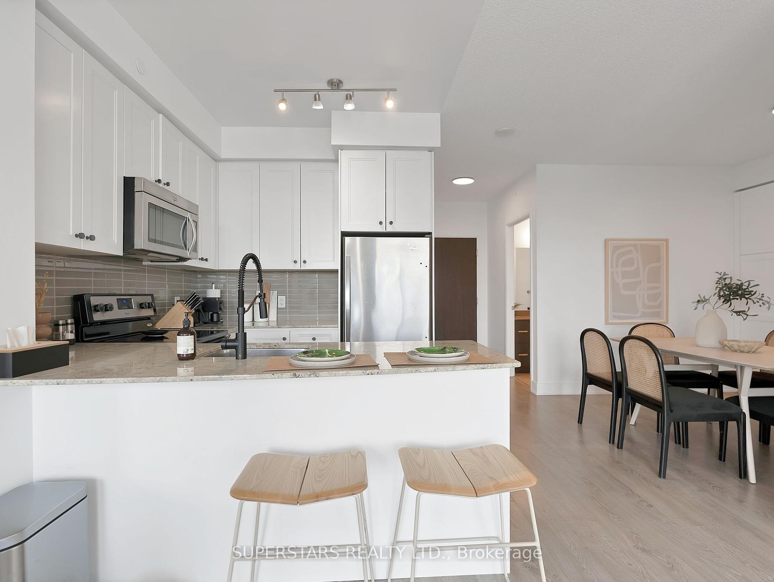 *LARGEST 2 BEDROOMS + DEN* Over 1,100 Sqft PLUS Oversized Balcony *WOW!* Welcome To The Prestigious Minto WaterGarden Located In The Heart Of Thornhill. Desirable Split 2-Bedroom + Den (Tucked Away Which Can Easily Be Used As A3rd Bedroom Or Home Office), 2 Full Bathrooms, 1 Parking & 1 Locker. Sunny South Facing, 9FT Ceiling, Floor To Ceiling Windows Allows For An Abundance Of Natural Light! Functional & Fully Equipped Kitchen With Durable Granite Counters, Tall Shaker Cabinetry, S/S Appliances, Glass Subway Tiled Backsplash & Breakfast Bar For Additional Seating. Open Concept Living Room, Kitchen & A Full-Sized Dining Room (Very Rare!)Can Fit A Table Of 6 And Comes With A Custom Built Wall-To-Wall Cabinetry For All Your Storage & Pantry Needs. This Unit Is Perfect For Entertaining Friends & Family! Huge Master Bedroom With A Large Walk-In Closet, 2 Oversized Windows, 4PC Master Ensuite With Double Vanity& Marble Counters. Generous Sized 2nd Bedroom With Large B/I Closet & Oversized Window With Unobstructed View & Upgraded4PCBathroom With Marble Counters. Relax On Your South Facing Oversized Balcony Complete With Wooden Patio Tiles Throughout The Day. No Carpet, Upgraded LED Light Fixtures, Painted & Completely Move-In Ready. Stunning Luxury Boutique Condo In The Heart Of Thornhill Surrounded by Green Spaces & Multi Million Dollar Homes With Bus Right At The Door, Mins To Delicious Restaurants, Multiple Grocery Stores, Shops, Banks, Hwy 7 & 407. Amazing Condo Amenities: Top Of The Line Gym, Guest Suites, Visitor Parking, Theatre, Aerobics Studio, Party Room With Walk-Out To A One-Of-A-Kind Water Terrace Garden With Pergolas, BBQs, Lounge Area (Feels Like You're On A Beach Resort!)