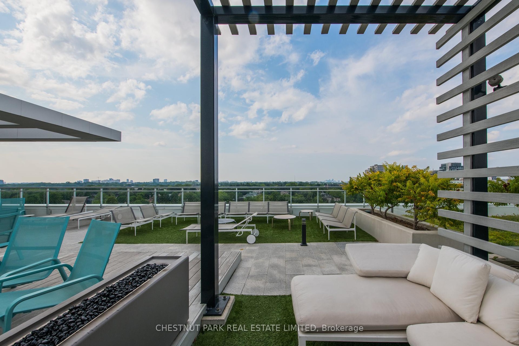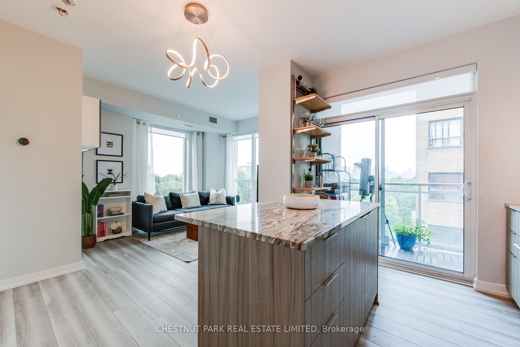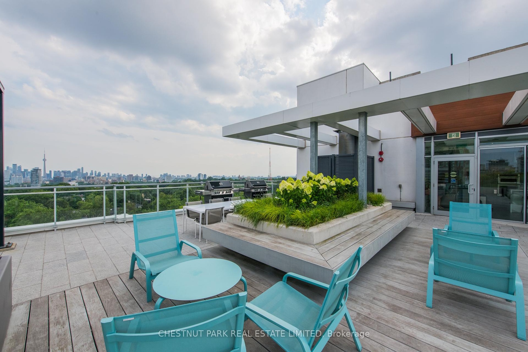 This is the luxury space you've envisioned living in, where timeless elegance meets contemporary design in the heart of Toronto's historic Casa Loma neighbourhood. This impeccably upgraded, rarely available south-and-east-facing 2-bedroom + den, 2-bathroom sun-infused corner residence at the distinguished boutique Zigg Condos offers 908 square feet of refined interior space, complemented by a 102 sq ft balcony - capturing the city's panoramic skyline, serene treetop views, and glorious sunrises. A thoughtfully designed open-concept layout and desirable split-bedroom plan feature floor-to-ceiling windows, new wide-plank flooring, and a sleek, modern kitchen with integrated Sub-Zero and Blomberg appliances, natural stone countertops, and upscale cabinetry. The spacious living and dining areas flow seamlessly to the balcony, featuring upgraded outdoor flooring, creating a bright and sophisticated space ideal for entertaining or relaxing. The primary suite can accommodate a king-size bed, with ample closet space and a spa-inspired ensuite. A second bedroom and enclosed den offer versatility for guests or a beautifully designed home office. One parking space and one locker are included, offering both convenience and added value. Zigg Condos offers a boutique lifestyle with premium amenities, including a 24-hour concierge, a fully equipped fitness centre, a rooftop terrace with BBQs and skyline views, a stylish party/meeting room, and visitor parking. Ideally located just south of Forest Hill Village, steps to St. Clair West subway, top-rated schools, grocers, parks, ravines, and some of Toronto's most cherished restaurants, cafes, and boutiques. This is not simply a place to call home - it's an elevated urban experience in one of the city's most exclusive, high-demand, and low-turnover buildings in one of the most coveted neighbourhoods.