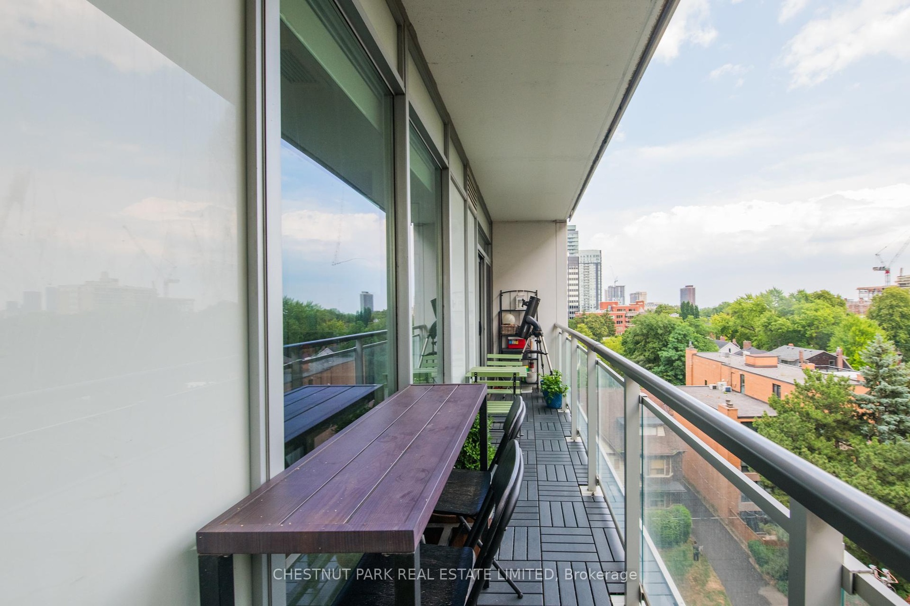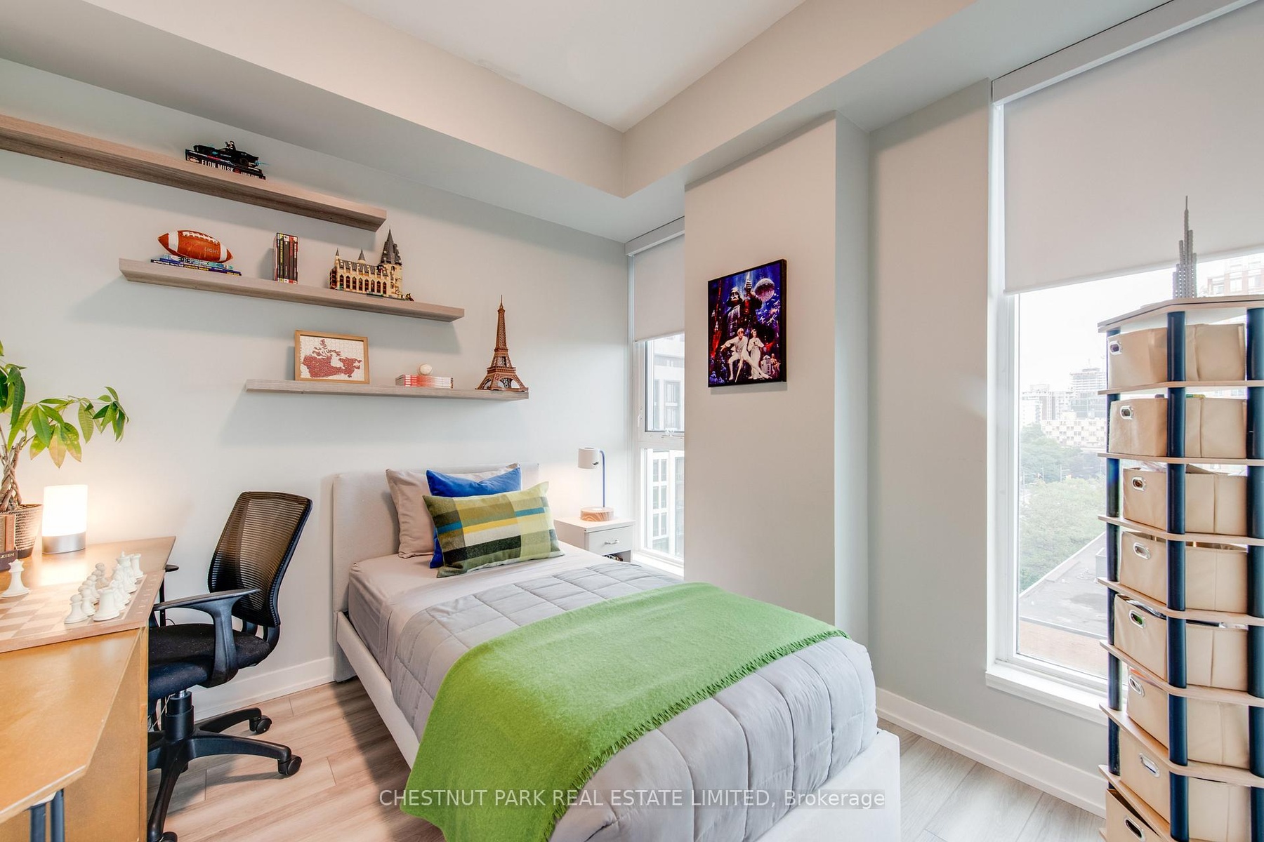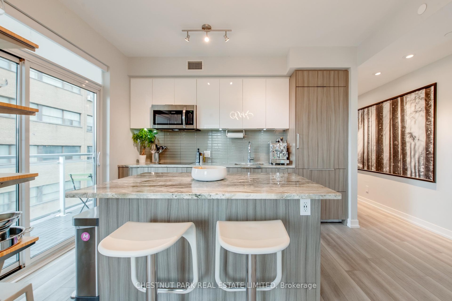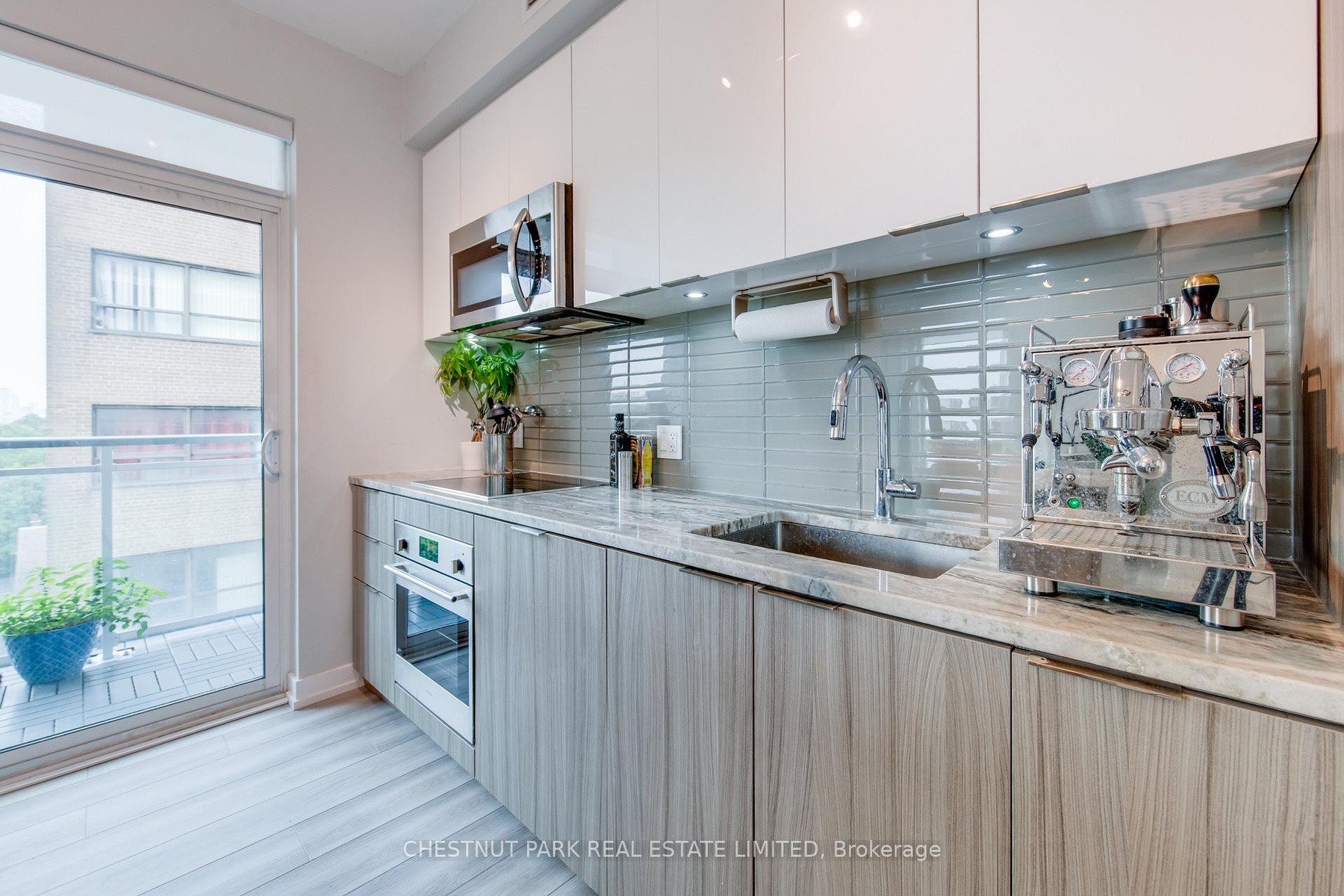 This is the luxury space you've envisioned living in, where timeless elegance meets contemporary design in the heart of Toronto's historic Casa Loma neighbourhood. This impeccably upgraded, rarely available south-and-east-facing 2-bedroom + den, 2-bathroom sun-infused corner residence at the distinguished boutique Zigg Condos offers 908 square feet of refined interior space, complemented by a 102 sq ft balcony - capturing the city's panoramic skyline, serene treetop views, and glorious sunrises. A thoughtfully designed open-concept layout and desirable split-bedroom plan feature floor-to-ceiling windows, new wide-plank flooring, and a sleek, modern kitchen with integrated Sub-Zero and Blomberg appliances, natural stone countertops, and upscale cabinetry. The spacious living and dining areas flow seamlessly to the balcony, featuring upgraded outdoor flooring, creating a bright and sophisticated space ideal for entertaining or relaxing. The primary suite can accommodate a king-size bed, with ample closet space and a spa-inspired ensuite. A second bedroom and enclosed den offer versatility for guests or a beautifully designed home office. One parking space and one locker are included, offering both convenience and added value. Zigg Condos offers a boutique lifestyle with premium amenities, including a 24-hour concierge, a fully equipped fitness centre, a rooftop terrace with BBQs and skyline views, a stylish party/meeting room, and visitor parking. Ideally located just south of Forest Hill Village, steps to St. Clair West subway, top-rated schools, grocers, parks, ravines, and some of Toronto's most cherished restaurants, cafes, and boutiques. This is not simply a place to call home - it's an elevated urban experience in one of the city's most exclusive, high-demand, and low-turnover buildings in one of the most coveted neighbourhoods.