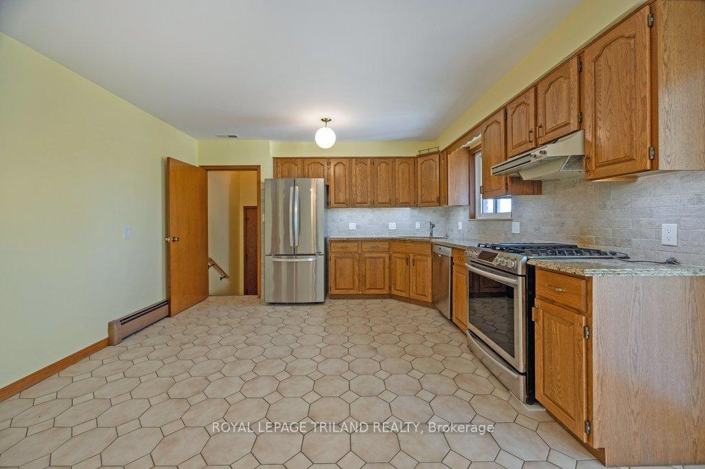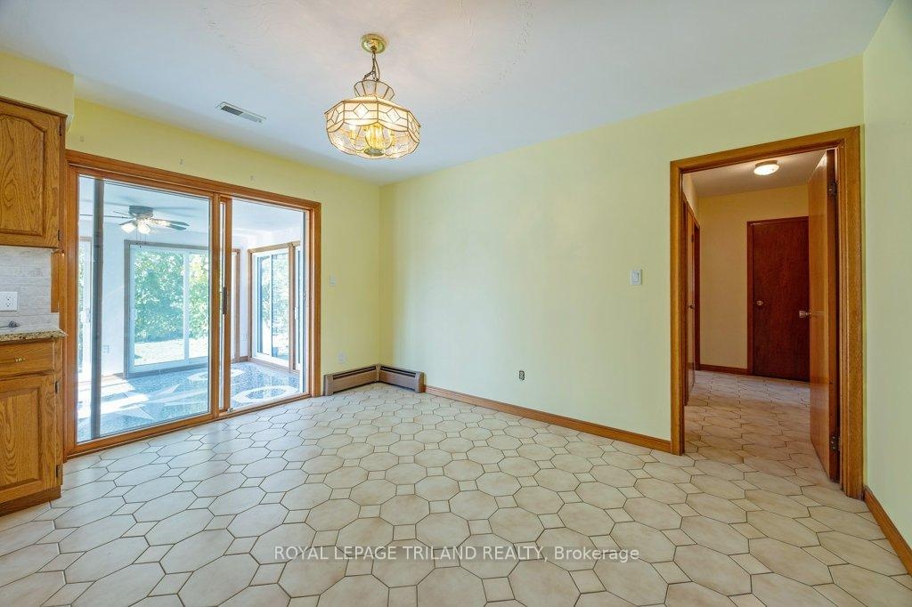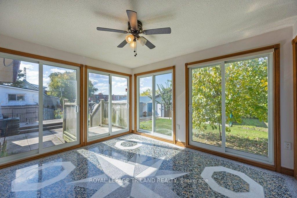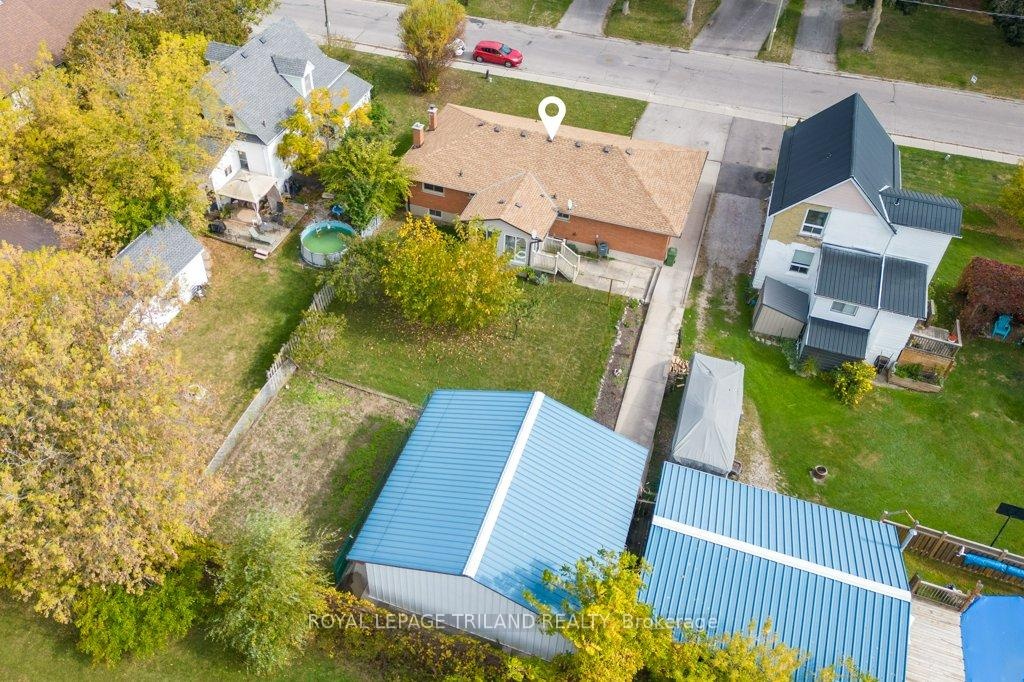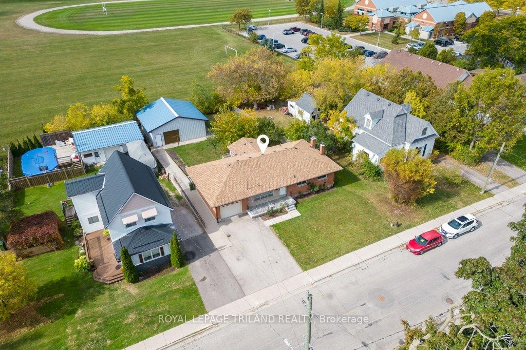 First time on the market in nearly 60 years! This one-owner, solid brick ranch offers 3 bedrooms, 2 bathrooms, an attached garage with exterior access & two stairwells - one with access to the lower level. R3 zoning adds future potential. There's a separate 29 x 29ft heated workshop with concrete floor - perfect for hobbies, storage, or toys! Backing onto Central Elgin Collegiate Institute Alumni Field and just steps from the YMCA, Forest Park Public and St. Anne's Catholic Elementary, this property boasts a convenient and desirable location. Inside, enjoy a spacious kitchen with solid wood cabinetry, granite countertops, tile backsplash, and included appliances. The main floor also features hardwood, terrazzo & tile flooring, a bright living room, a 3-season sunroom, 3- bedrooms, a linen closet, and a bathroom with tile floor heating. The lower level expands your living space with a generous recreation room featuring a gas fireplace, a kitchenette with included appliances, a laundry area, an updated bathroom with a shower, and an office - ideal for guests or a home workspace. Outside, the partially fenced backyard includes a patio, fruit trees, and room for gardens. A rare opportunity to own a lovingly maintained home with excellent potential in a prime location - bring your ideas and make it your own!