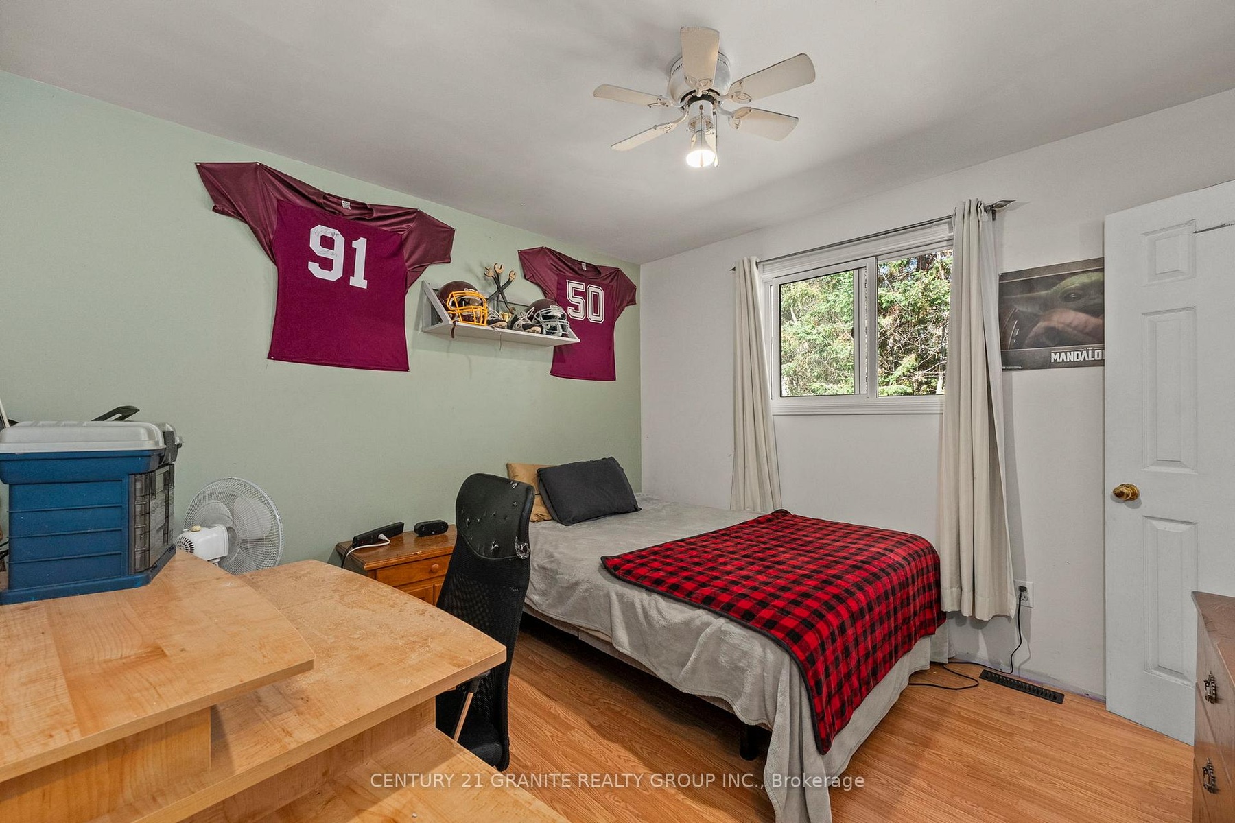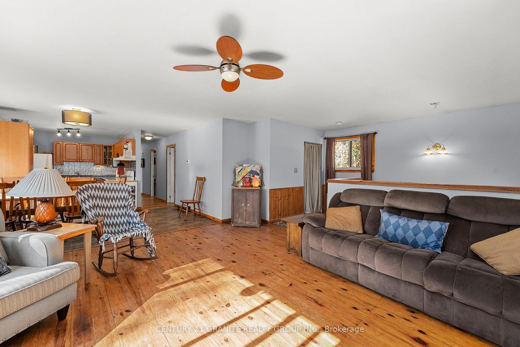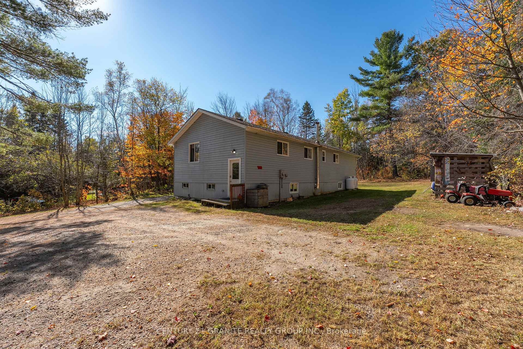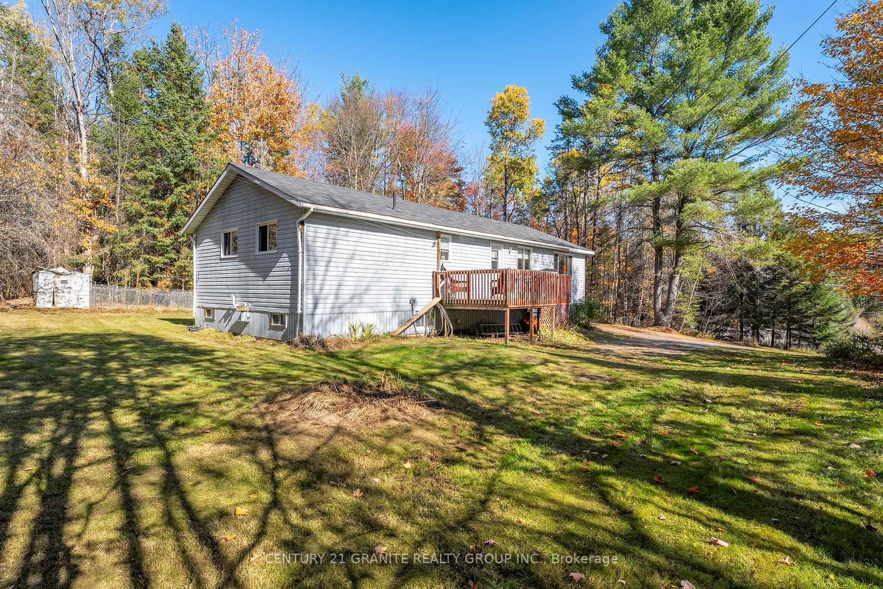 Set on a spacious and level 0.71-acre surveyed lot, this 3+1 bedroom, 2 full bathroom home offers plenty of room to stretch out and enjoy country living. The turn-around driveway makes parking easy, and there's a small drive-shed for all your toys plus a dog kennel ready for your four-legged friend. Inside, you'll find three generous bedrooms with closets, including two secondary bedrooms that share a convenient Jack-and-Jill ensuite. The main bath features a deep soaker tub/shower combo perfect for relaxing at the end of the day. The primary bedroom on the main floor offers double closets and extra space to make it your own retreat. The lower level includes an additional bedroom, a large storage area, and a partially finished rec room with a cozy wood stove great for chilly evenings. The home is easy to maintain with a York propane forced-air furnace (2020), 100-amp service, vinyl siding, drilled well, and septic system. Low taxes and a BBQ deck off the dining room add to the easygoing lifestyle this property offers. A comfortable, practical home with all the right features and space to enjoy the outdoors too. The highway offers quick access to the Town of Bancroft which is only 15 minutes away but the home is tucked back from the road for above average privacy.