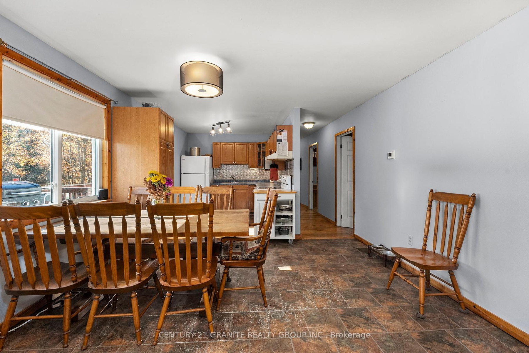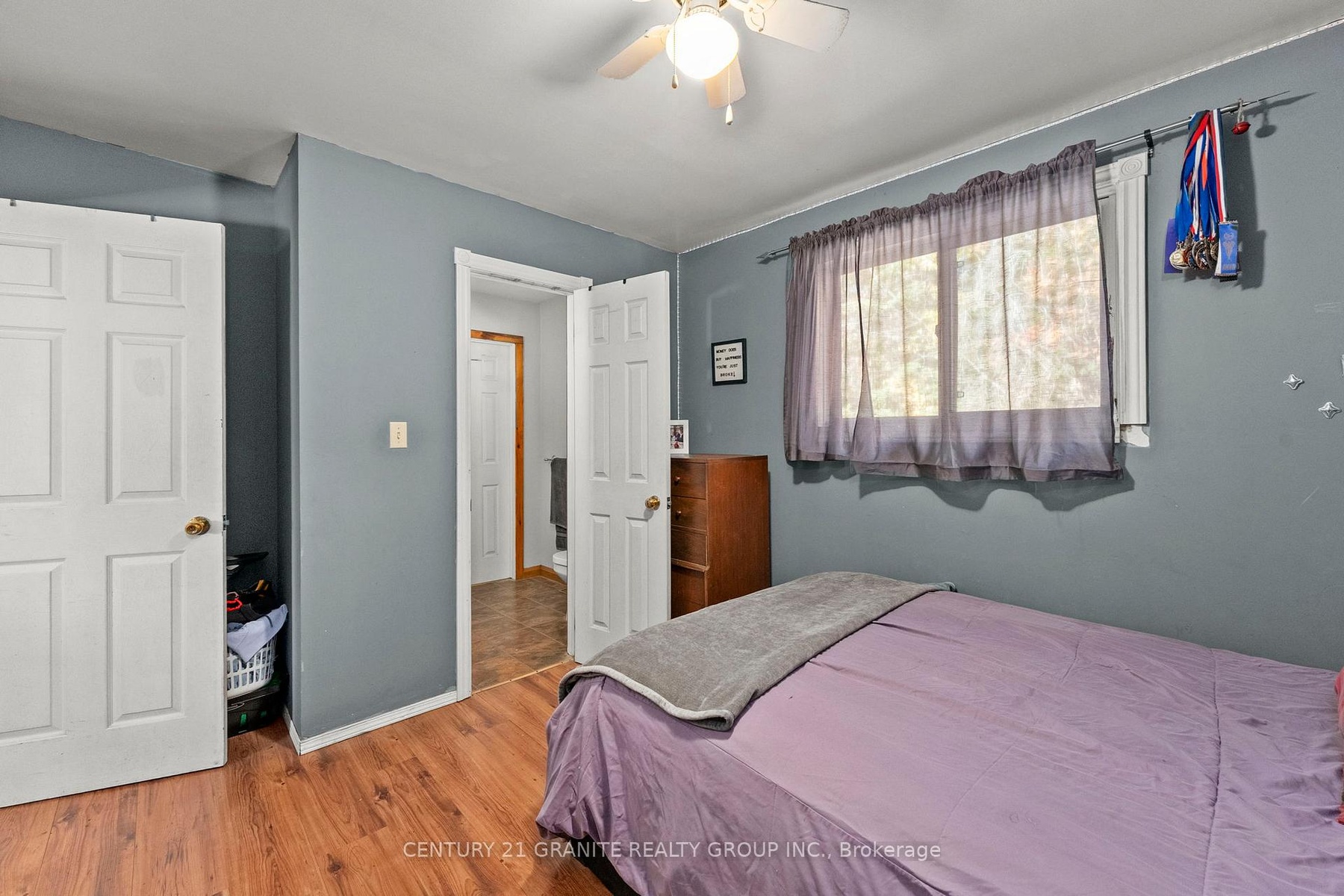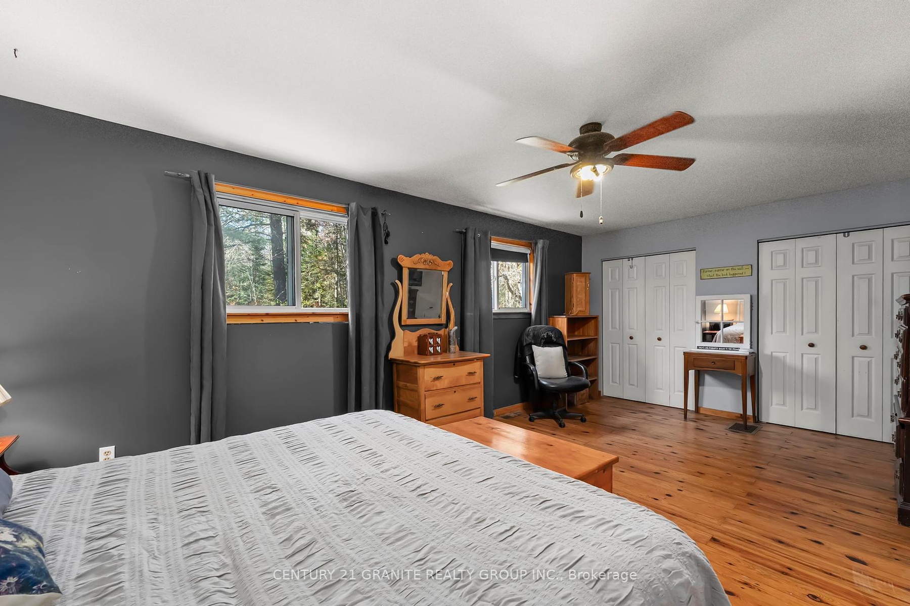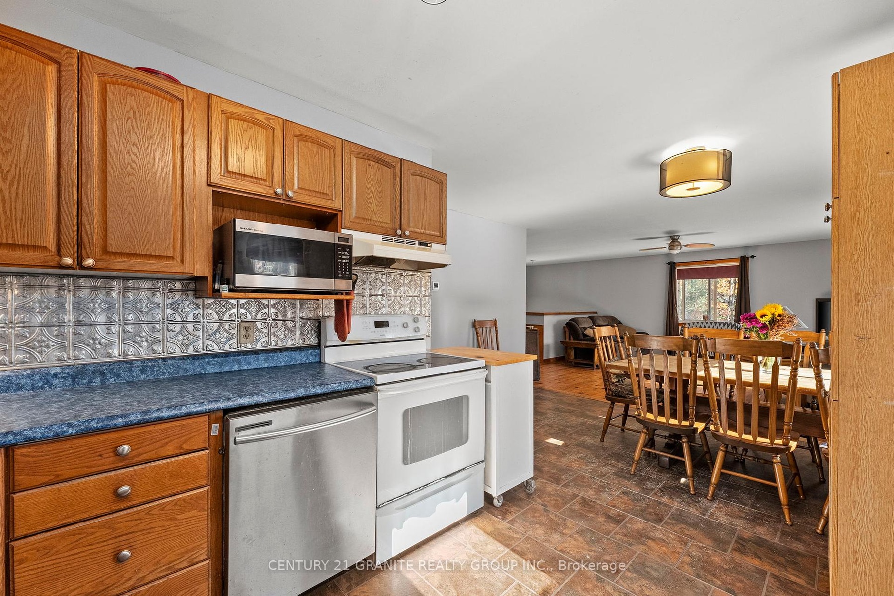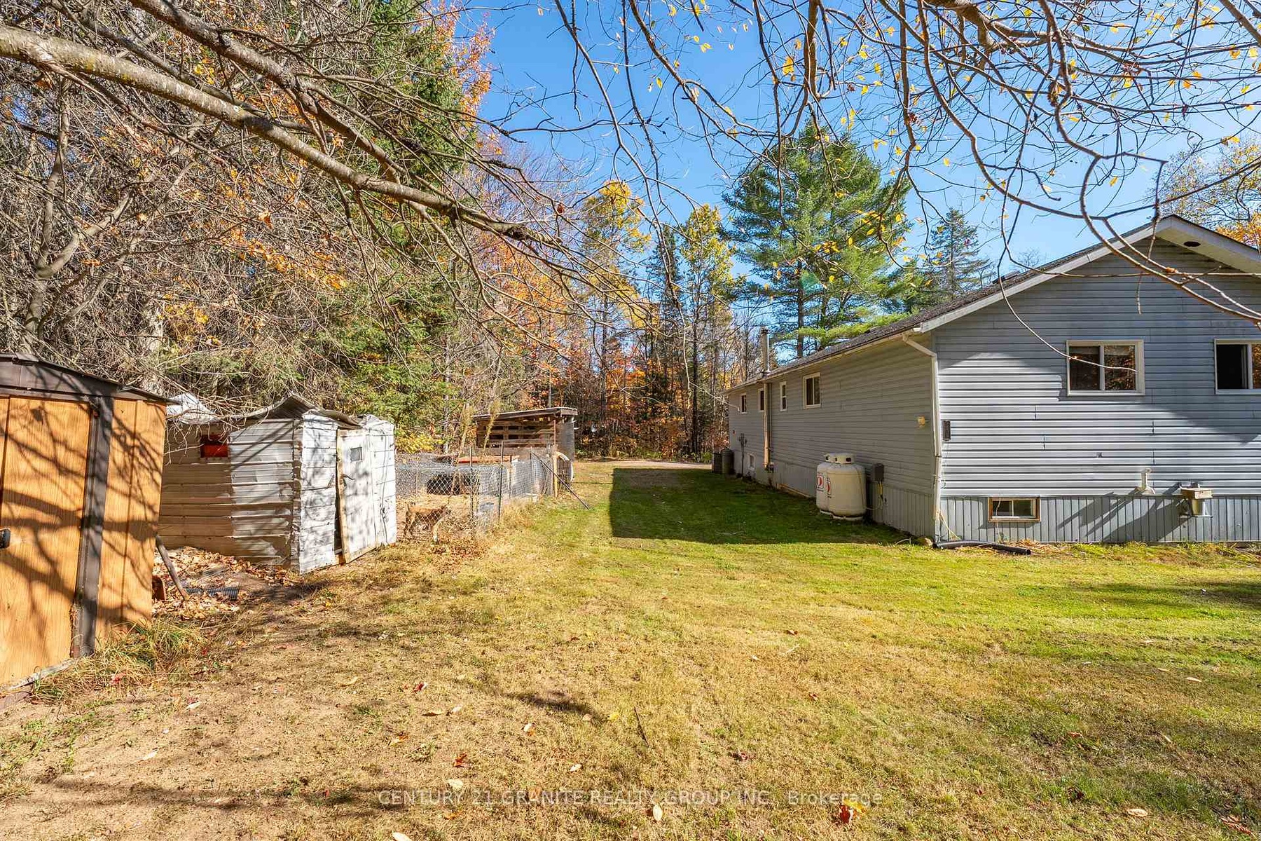 Set on a spacious and level 0.71-acre surveyed lot, this 3+1 bedroom, 2 full bathroom home offers plenty of room to stretch out and enjoy country living. The turn-around driveway makes parking easy, and there's a small drive-shed for all your toys plus a dog kennel ready for your four-legged friend. Inside, you'll find three generous bedrooms with closets, including two secondary bedrooms that share a convenient Jack-and-Jill ensuite. The main bath features a deep soaker tub/shower combo perfect for relaxing at the end of the day. The primary bedroom on the main floor offers double closets and extra space to make it your own retreat. The lower level includes an additional bedroom, a large storage area, and a partially finished rec room with a cozy wood stove great for chilly evenings. The home is easy to maintain with a York propane forced-air furnace (2020), 100-amp service, vinyl siding, drilled well, and septic system. Low taxes and a BBQ deck off the dining room add to the easygoing lifestyle this property offers. A comfortable, practical home with all the right features and space to enjoy the outdoors too. The highway offers quick access to the Town of Bancroft which is only 15 minutes away but the home is tucked back from the road for above average privacy.