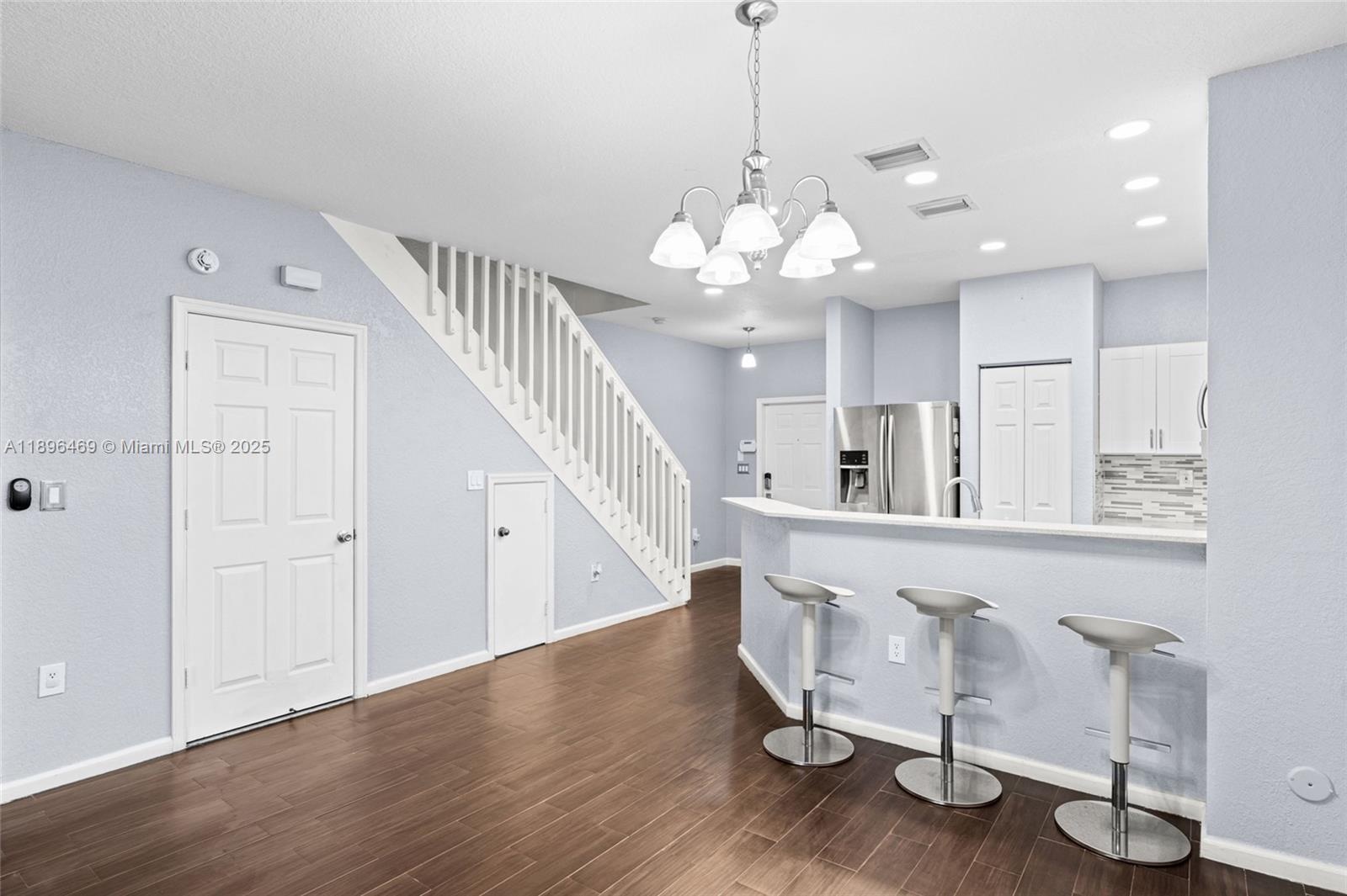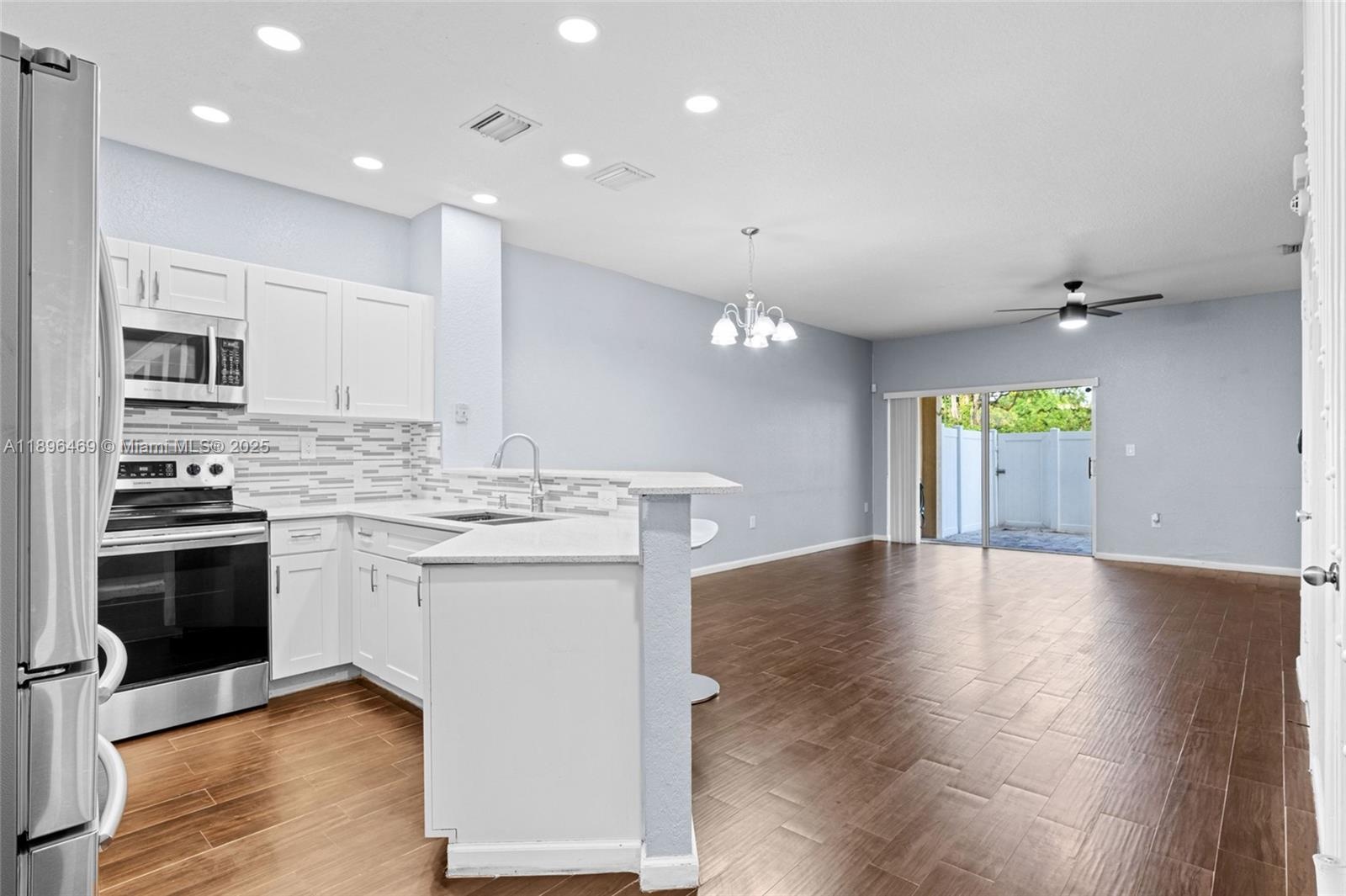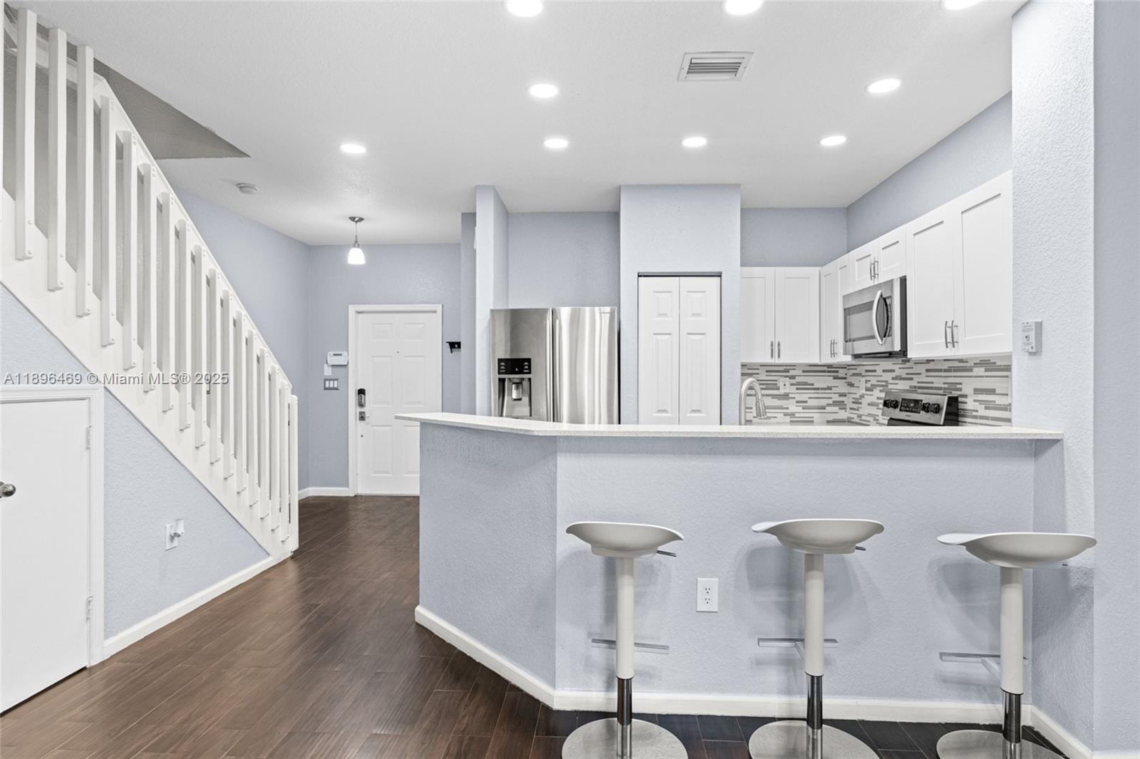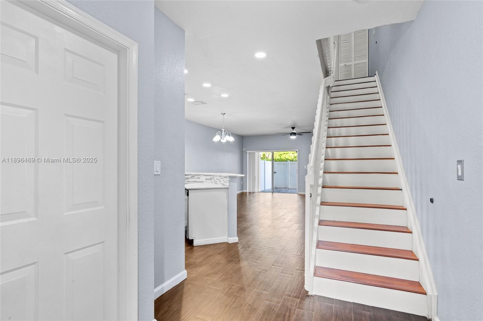 Beautiful, spacious, and move-in ready — this updated 3-bedroom, 2.5-bath townhome in Catalina Place has it all. Enjoy a modern kitchen with sleek finishes, impact windows, full-size washer and dryer, and a brand new A/C for year-round comfort. All bedrooms are upstairs, offering a quiet retreat from the main living areas below. Step outside to a private fenced backyard, plus a 1-car garage and oversized driveway with space for 4+ vehicles. Located just steps from the community pool and playground, and minutes from shopping, dining, medical centers, and the Turnpike. Pet-friendly and perfectly placed for convenience and comfort.