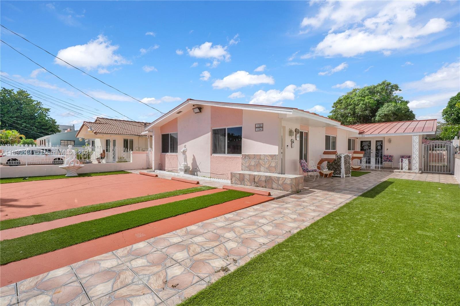 Don't miss this chance to own a well-maintained duplex just minutes from vibrant Downtown Miami and iconic Marlins Park. This versatile property has two spacious units, with the front unit offering 2 bedrooms and 1 bathroom, and the back unit 3 bedrooms and 2 bathrooms. Perfect for extended families or investors, this duplex features impact-resistant windows and doors, a durable metal roof, and a large covered backyard patio—ideal for entertaining guests or relaxing in privacy. Whether you're looking to live in one unit and rent the other, or add a solid income-producing property to your portfolio, this home checks all the boxes.