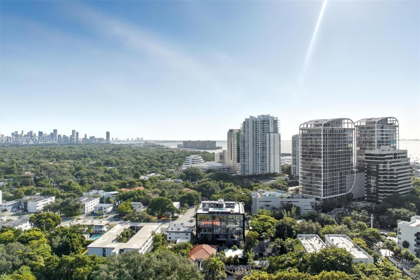 Exclusive opportunity to own a Glasshaus condo, a stunning, light-filled residence with floor-to-ceiling windows and a full-wall balcony accessible from the living room and primary suite. Den/office features a Murphy bed. The primary suite boasts an ensuite, walk-in closet, and second closet. In-unit washer and dryer plus 2 assigned secure parking spaces. Contemporary and elegant open layout showcases a sleek Milino chef style kitchen with full-wall storage, panel-covered refrigerator, double wall ovens, under-cabinet lighting, and a waterfall Corian island with wine chiller. Sophisticated amenities include a rooftop pool, state-of-the-art fitness center, and attended front desk. Additional garage storage. Minutes from Dinner Key, Seminole Boat Ramp, Bayside Park, shops, and fine dining.