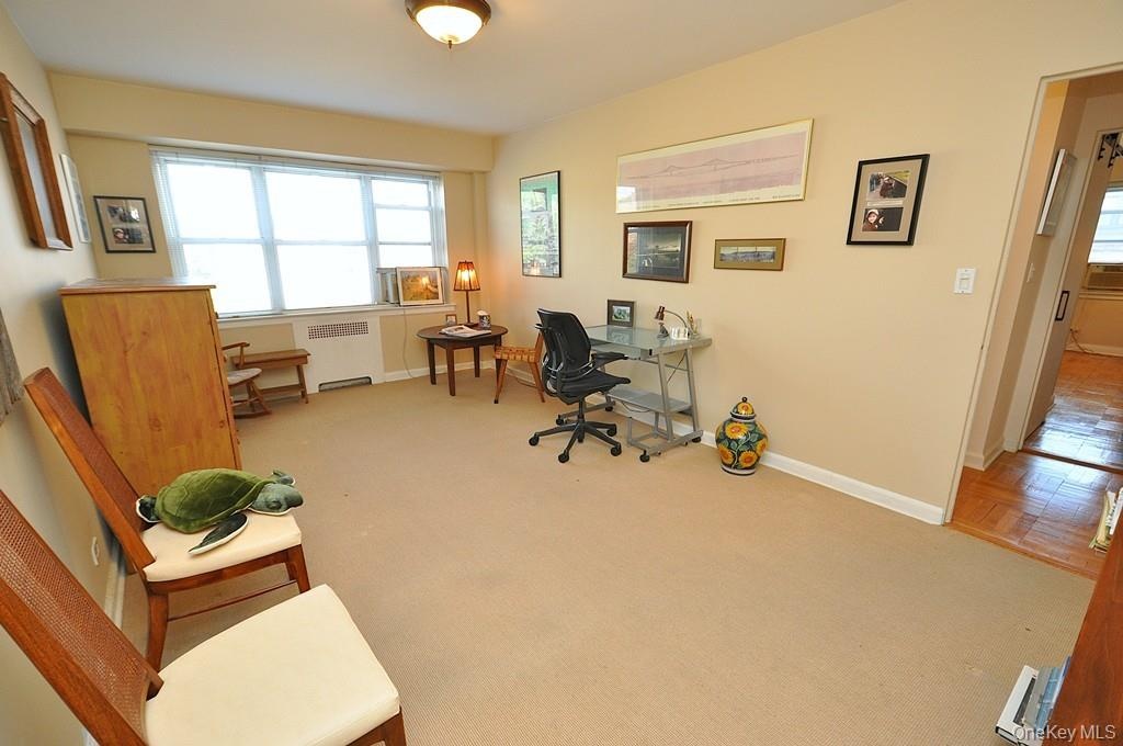 Welcome to Garth Woods! This beautifully maintained co-op offers 1,450 sq. ft. of bright, sunny living in the highly sought-after Garth Road community. With 2 spacious bedrooms and 2 full baths, this home combines comfort, convenience, and classic charm. Step into a sunlit living room, with Southern exposures, that opens to a formal dining area with a bay window, and an inviting entry foyer perfect for a home office setup. The walk-through gourmet kitchen features custom cabinetry, a walk-in pantry, a checkered floor, and a window providing natural light and ventilation. The primary en-suite bedroom includes a bay window, private bath, parquet floors, and two large closets, including a walk-in. The second bedroom offers a spacious closet and covered parquet flooring. Additional highlights include a hall bath with step-in shower, seven closets (three walk-ins), and parquet floors throughout, adding warmth and character. Building amenities include a part-time doorman, two 24/7 laundry rooms, bike storage, and common storage. Maintenance includes heat, water, gas, electricity, and property taxes—offering outstanding value. Garage parking is available via waitlist. Ideally located near Scarsdale Village, Garth Road's "Restaurant Row" (featured in the Michelin Guide), the Bronx River Trail, and just 33 minutes to Grand Central. Enjoy ample free parking with an Eastchester resident permit and eligibility to join Lake Isle Park (golf, tennis, swimming). Enjoy the Bronx River Trail - walking and biking! Don't miss this opportunity to own in one of Westchester’s most vibrant communities!