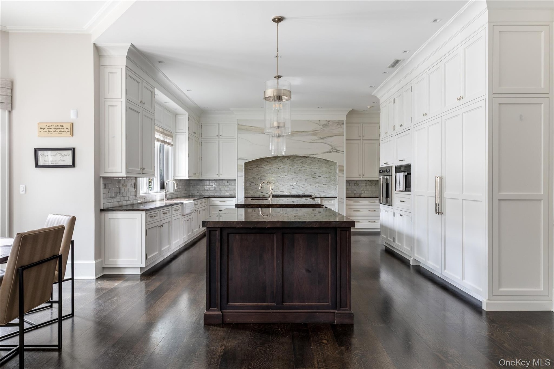 Designed for both grand entertaining and intimate day-to-day living, the main level also features a spacious home office with a private sitting area, two elegant powder rooms, a guest-ready first-floor bedroom suite, an elevator and a mudroom conveniently located off of the 4-car attached garage.