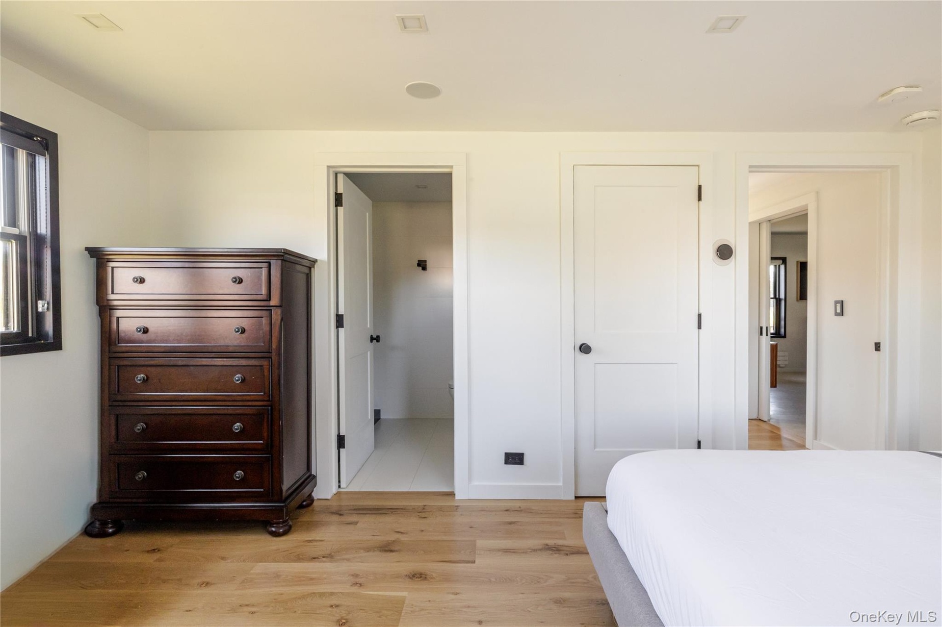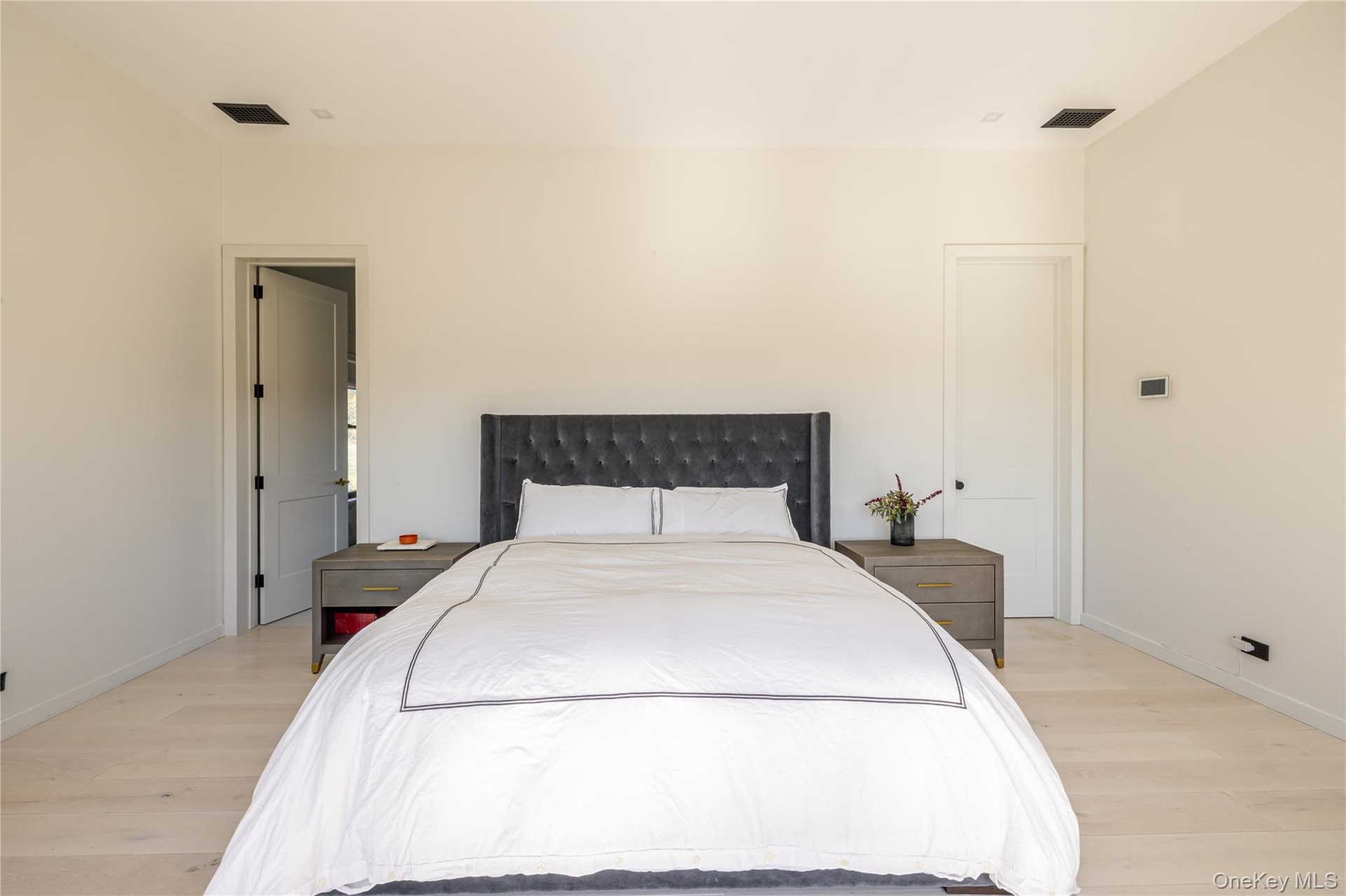 - Bedroom with vaulted ceiling and light wood-type flooring