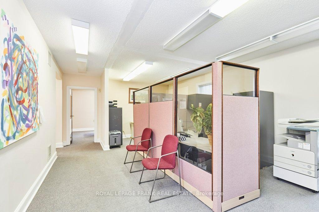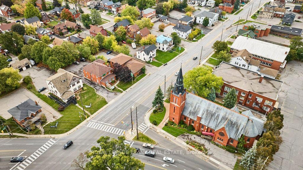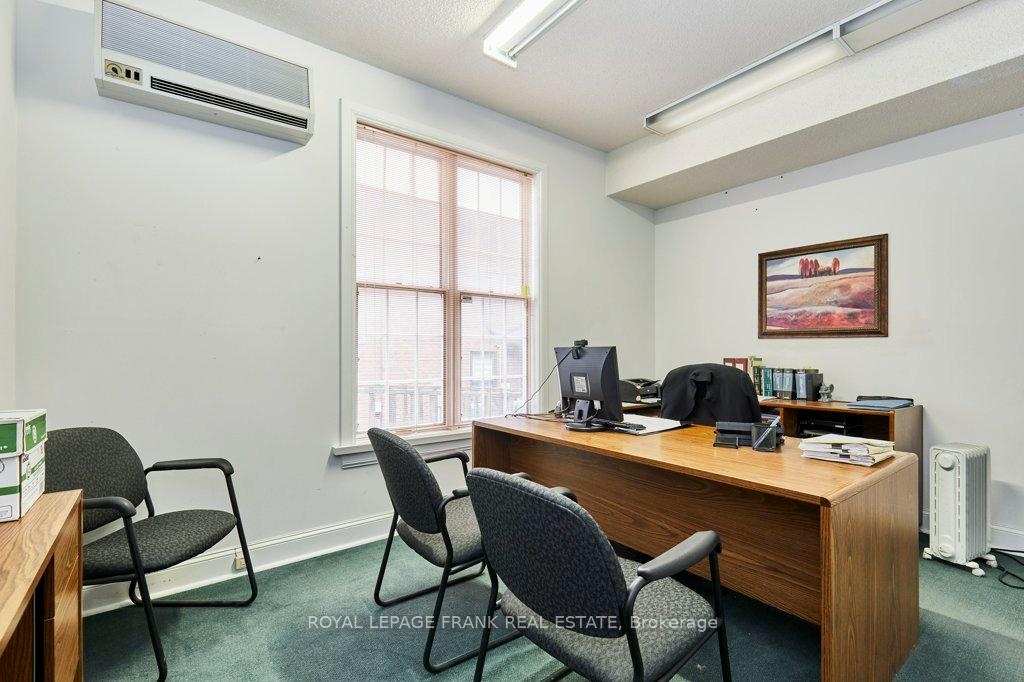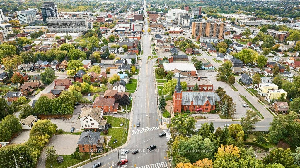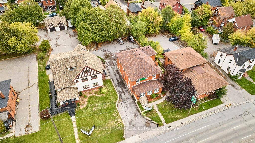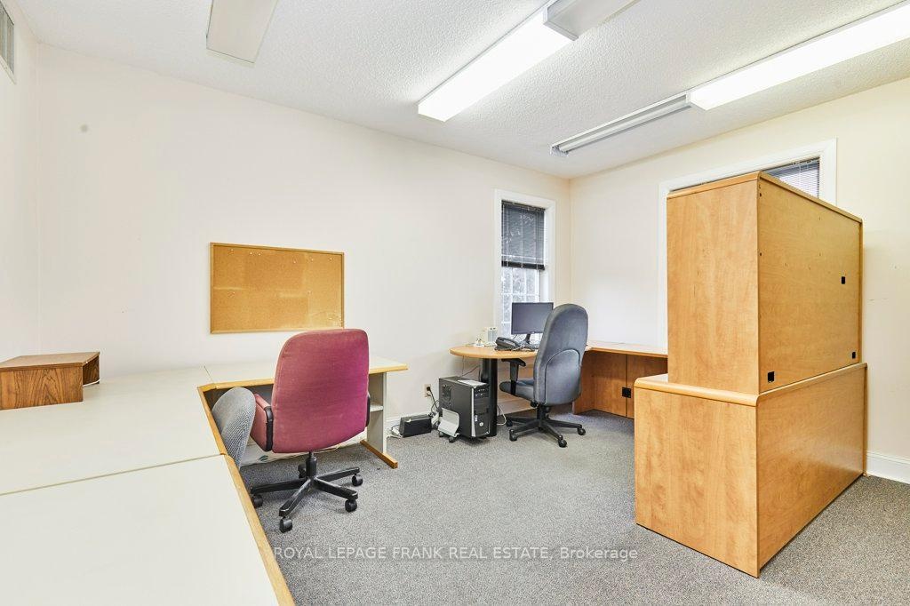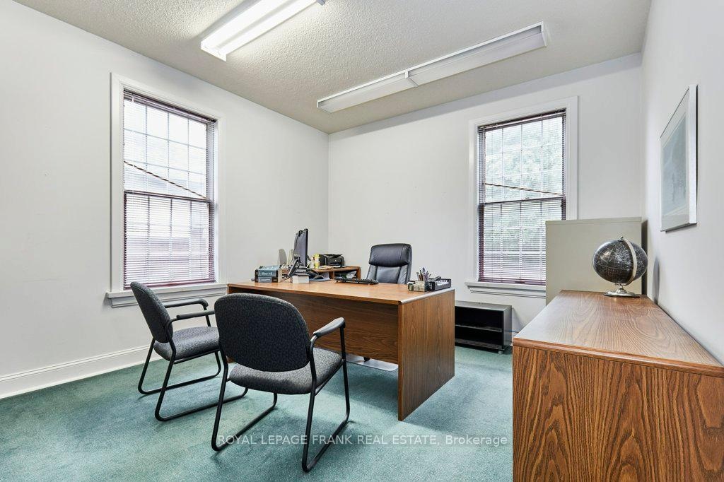 Attractive, prominent brick office building just south of Adelaide Street on the east side of Simcoe Street North. Building is ramped for accessibility. Suitable for a professional business seeking an elegant profile and a functional layout. Finished on all 3 floors. +/-3665 sq feet above grade over 2 floors plus additional +/-1000 sq feet in finished basement. Configured into reception area with built in desks and cabinetry, multiple private offices, boardroom, storage/utility rooms and 5 washrooms (1 washroom on main floor is accessible). 12+ car paved parking at rear. Please see zoning for permitted uses and floor plans attached to the listing for more detail.