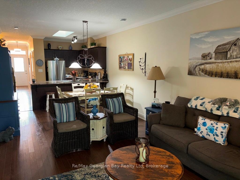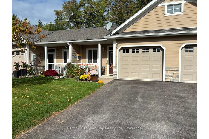 Lovely townhouse bungalow located in desirable Riverwalk community in the quaint village of Coldwater. This unit has many great features including open concept, 9-foot ceilings, plenty of cabinet storage with soft close doors, a breakfast bar, floors are ceramic, and engineered hardwood, a full 4PC bathroom, master en-suite bath, covered front porch and walk-out to a lovely patio area with a wooded view. This is low maintenance living with a $250 per month common element fee covering lawn care and snow removal. Join us in quiet comfort. Inquire about this property today.