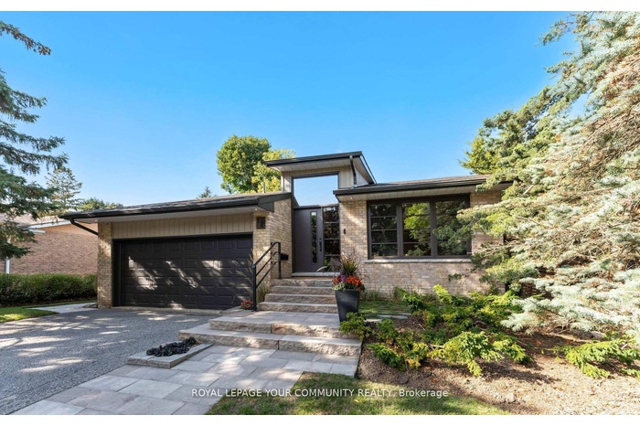 A Rarely Offered Modern Back split Tucked away on a quiet street that feels like a hidden gem, this stunning backsplit has been completely reimagined from top to bottom. Thoughtfully redesigned and rebuilt with the finest quality materials, the home blends seamlessly with its surroundings while offering a fresh, modern take on family living. Inside, a soaring vaulted foyer and striking floating staircase set the tone. The open-concept design flows effortlessly from the front living room with its dramatic overlook, to the heart of the home the chefs kitchen. Here, an 11-foot island, marble backsplash, and top-of-the-line appliances make cooking and entertaining a joy. The adjoining dining space easily hosts large gatherings, while the family room with its Rumford wood-burning fireplace, oversized windows, and walkout-invites you to relax or entertain against the backdrop of a completely private backyard, lush and inviting year-round. With three bedrooms thoughtfully arranged across the levels, flexibility abounds. Two sit on the upper level, including a generous primary retreat with a walk-in closet and spa-like ensuite. A third bedroom on the main level doubles perfectly as a home office or guest room. The home also features a second full bathroom plus two powder rooms for convenience. The lower level continues the theme of smart design with a spacious laundry, a rec room complete with built-in Murphy bed for overnight guests, and plenty of accessible storage including a large crawl space for long-term essentials. Direct access from the two-car garage adds to everyday ease. From casual family living to sophisticated entertaining, this home was designed to do it all-while keeping comfort, privacy, and style front and center.