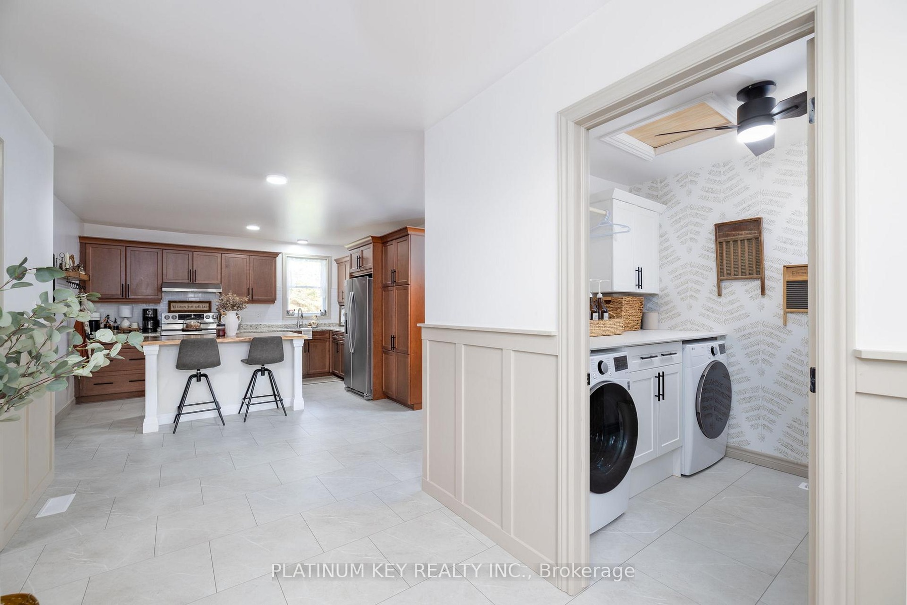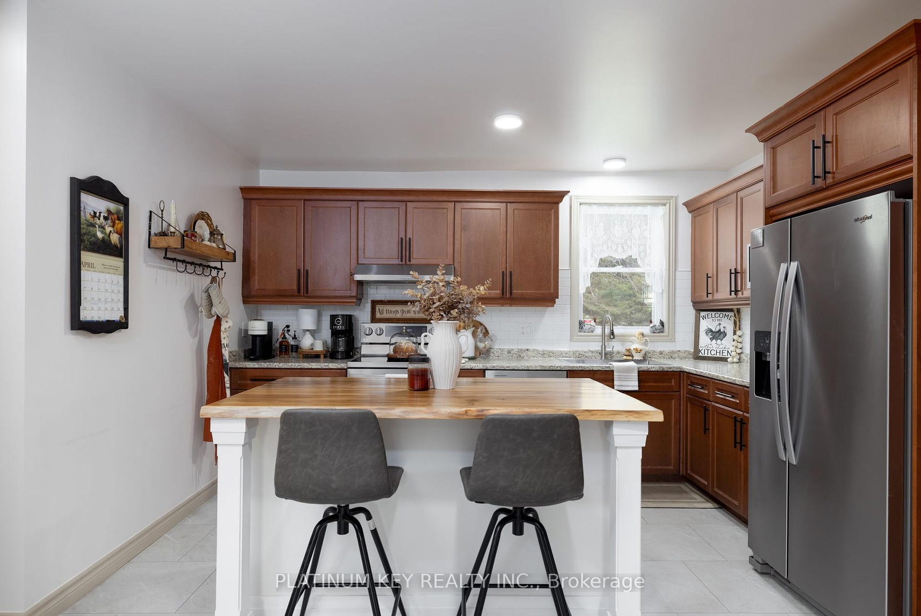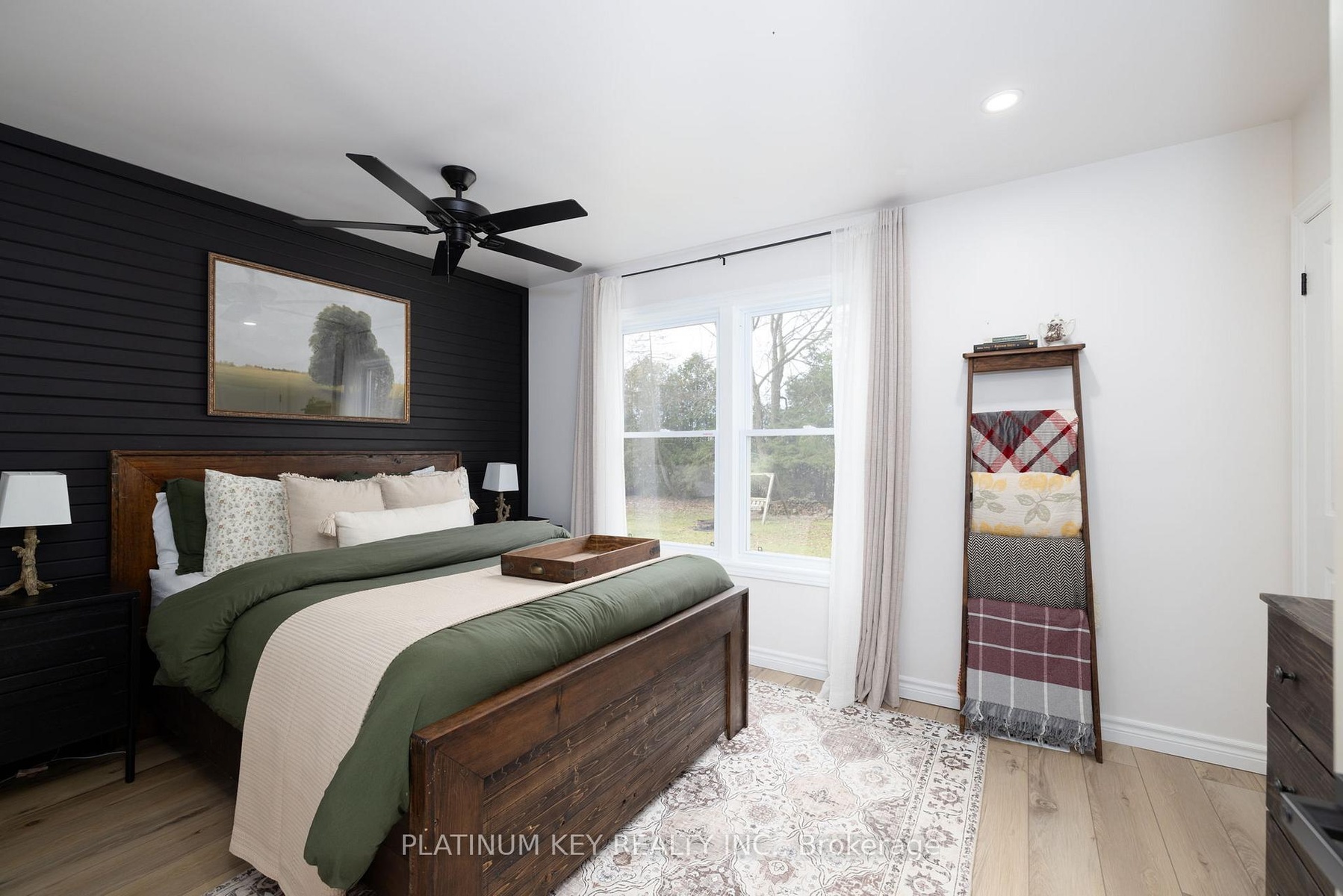 Discover your dream retreat in this beautifully renovated bungalow, renovations completed in 2024, nestled on a serene acre of treed land with new (2025) rear deck. This stunning home features three spacious bedrooms, including a primary suite with a generous walk-in closet, perfect for all your storage needs. The heart of the home is the a gorgeous kitchen, boasting ample cabinetry and a stylish island, ideal for culinary enthusiasts and entertaining guests. Enjoy cozy evenings in the large family and dining area, highlighted by a welcoming fireplace that adds warmth and charm. Separate main floor laundry with extra closet space is a bonus. In addition to the beautiful home, this property includes a remarkable 30 by 35 heated shop, built in 2024. This versatile space features high 12-foot ceilings, electricity, and an oversized 12 by 10 insulated garage door, making it perfect for hobbies, workshops, or additional storage. The shop also includes a fully finished 10 by 10 office, providing a quiet retreat for work or creative projects. This property gets even better with this spacious new deck (2025) overlooking your private-treed backyard. The basement offers a blank canvas, awaiting your creative finishing touches to transform it into your ideal space, whether it be a recreational area, home theater, or additional living quarters. With its perfect blend of comfort, functionality, and modern upgrades, this property is a rare find. Don't miss the opportunity to make this delightful bungalow and its impressive shop your forever home!