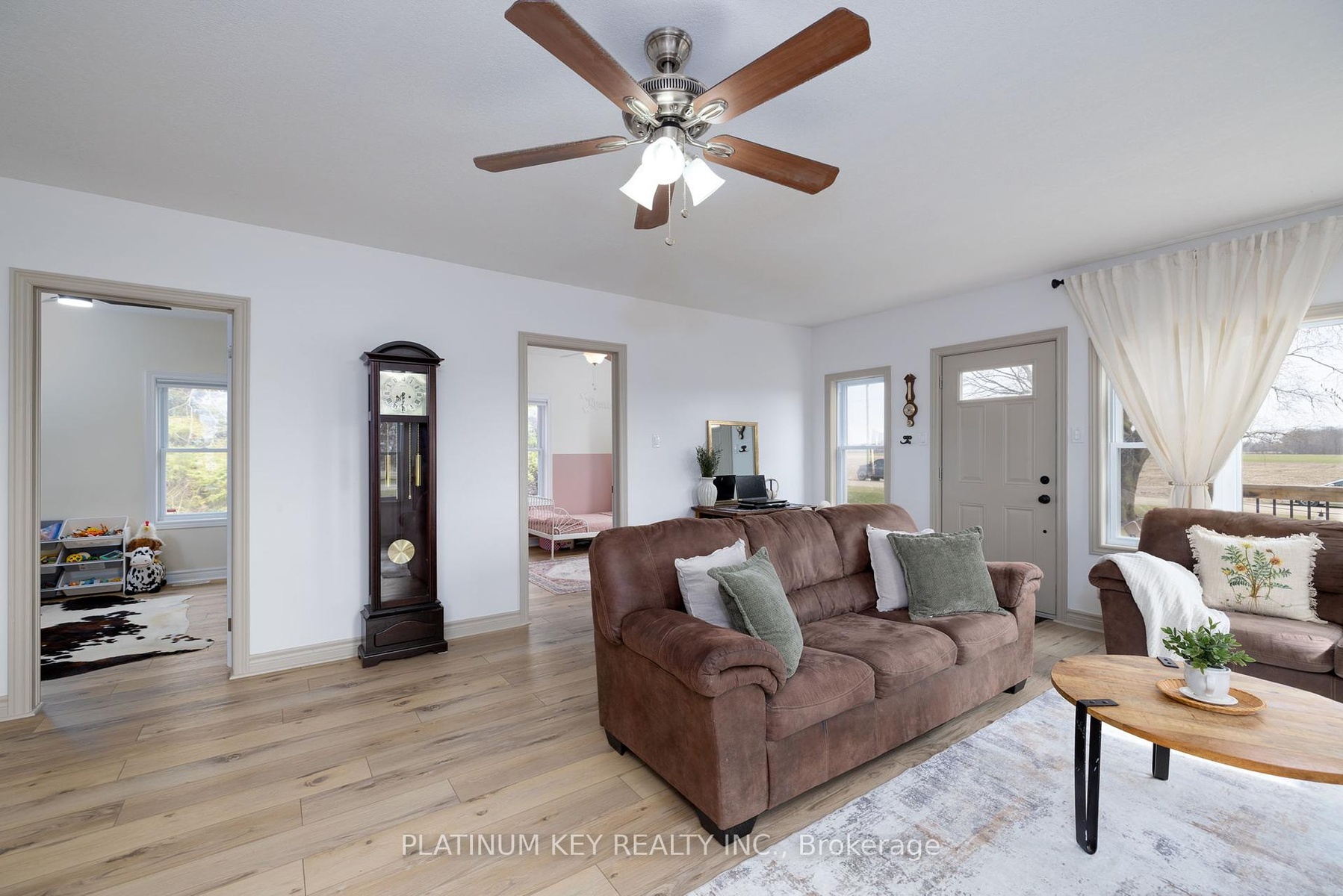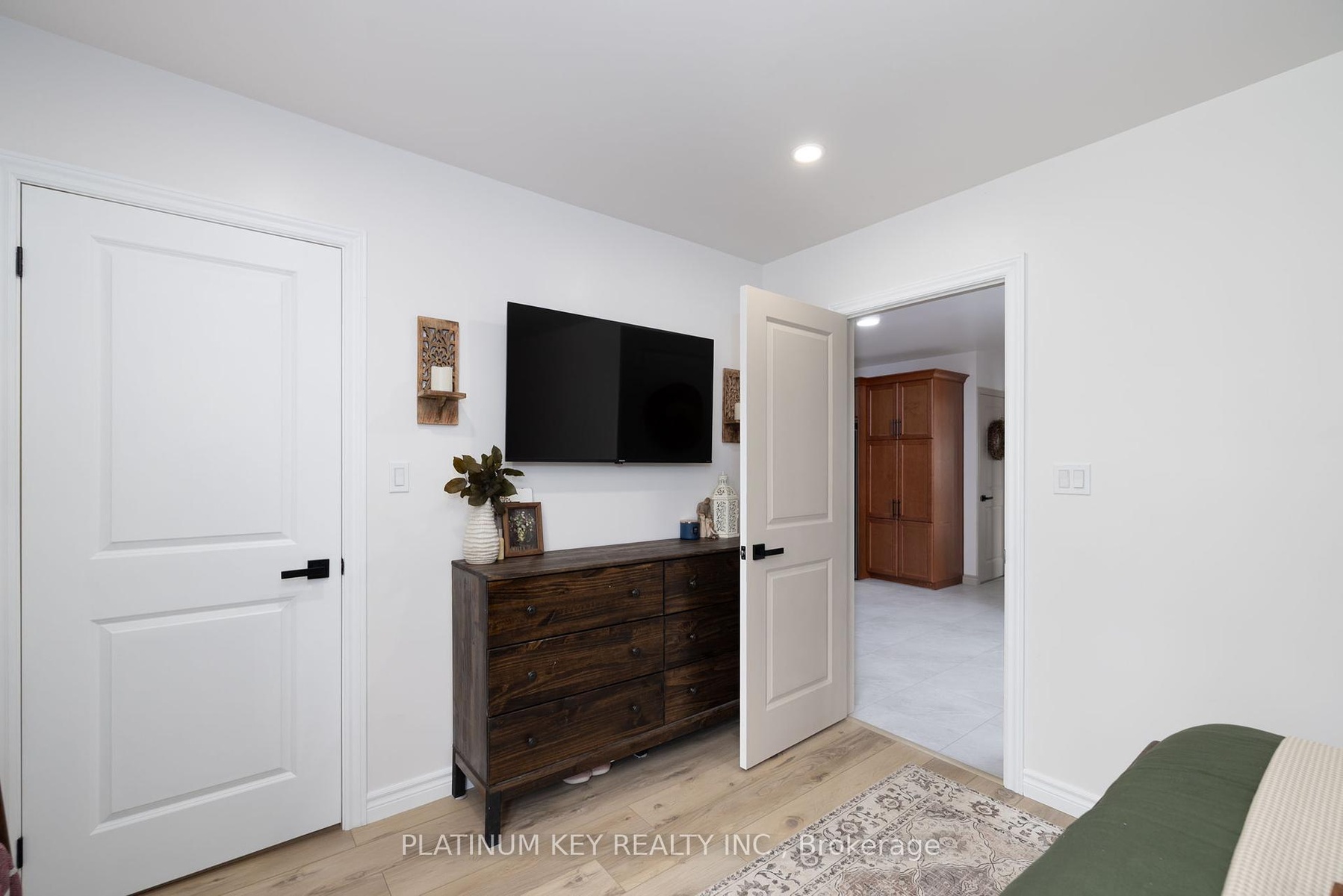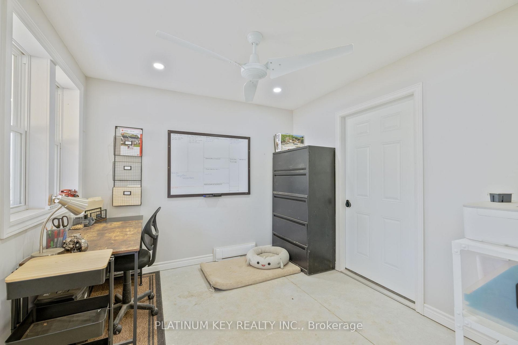 Discover your dream retreat in this beautifully renovated bungalow, renovations completed in 2024, nestled on a serene acre of treed land with new (2025) rear deck. This stunning home features three spacious bedrooms, including a primary suite with a generous walk-in closet, perfect for all your storage needs. The heart of the home is the a gorgeous kitchen, boasting ample cabinetry and a stylish island, ideal for culinary enthusiasts and entertaining guests. Enjoy cozy evenings in the large family and dining area, highlighted by a welcoming fireplace that adds warmth and charm. Separate main floor laundry with extra closet space is a bonus. In addition to the beautiful home, this property includes a remarkable 30 by 35 heated shop, built in 2024. This versatile space features high 12-foot ceilings, electricity, and an oversized 12 by 10 insulated garage door, making it perfect for hobbies, workshops, or additional storage. The shop also includes a fully finished 10 by 10 office, providing a quiet retreat for work or creative projects. This property gets even better with this spacious new deck (2025) overlooking your private-treed backyard. The basement offers a blank canvas, awaiting your creative finishing touches to transform it into your ideal space, whether it be a recreational area, home theater, or additional living quarters. With its perfect blend of comfort, functionality, and modern upgrades, this property is a rare find. Don't miss the opportunity to make this delightful bungalow and its impressive shop your forever home!