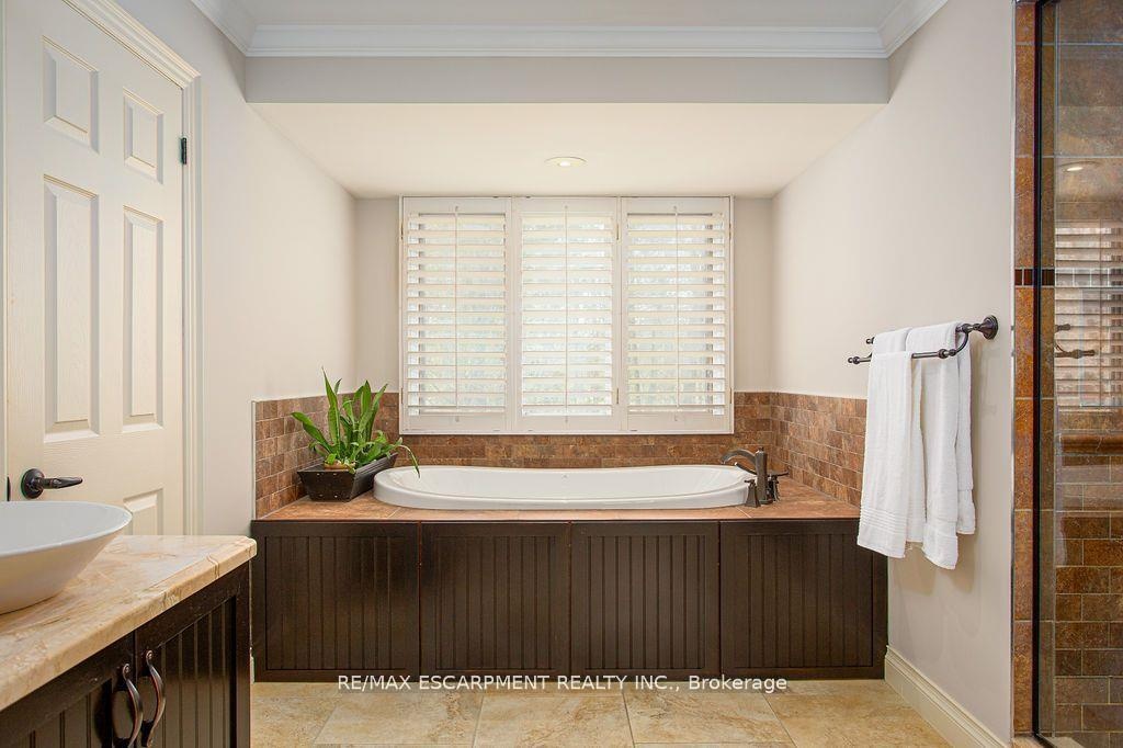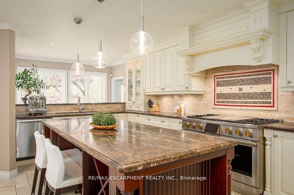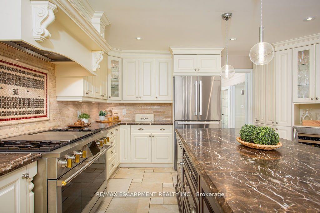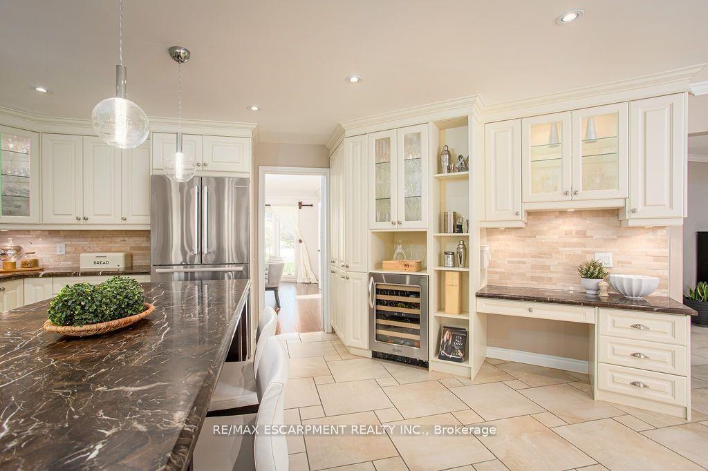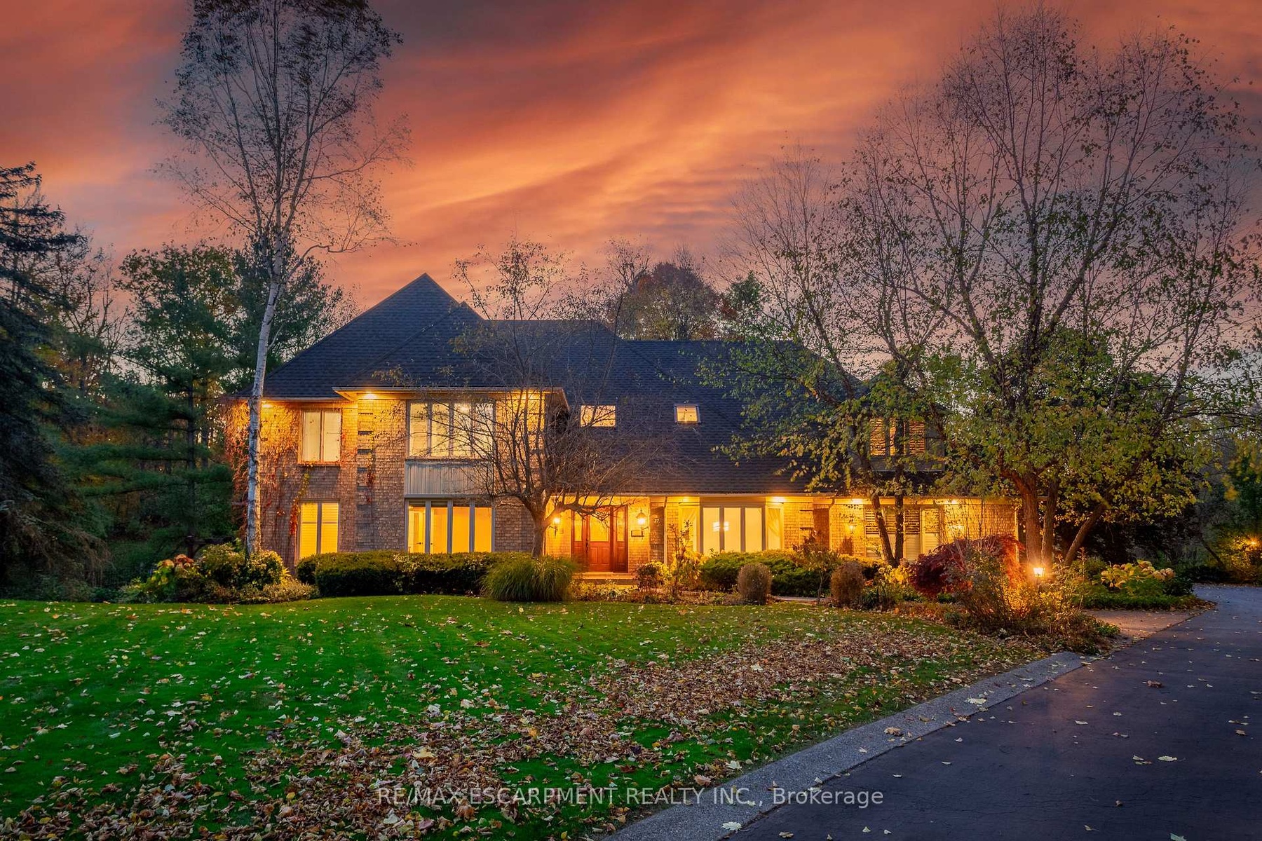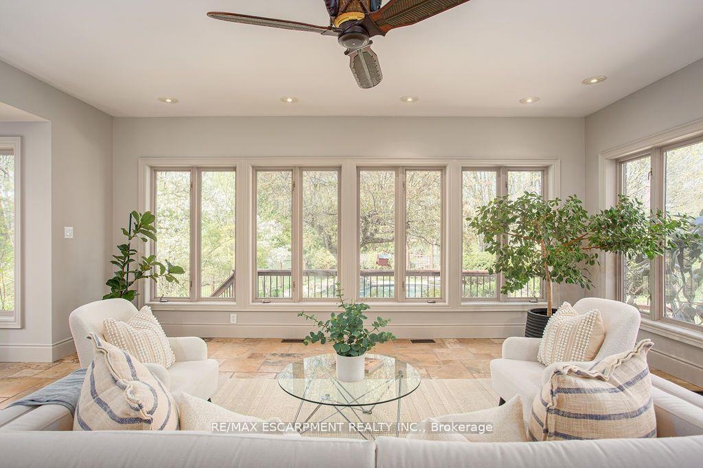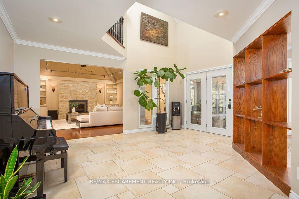 Welcome to 27 Blackberry Place a truly exceptional luxury estate nestled at the end of a prestigious cul-desac in the heart of Carlisle. Set on a sprawling and completely private 2.12-acre lot, this distinguished residence is enveloped by professionally landscaped grounds, featuring curated gardens and a winding driveway. This home offers over 7,791 sq ft, timeless design and modern refinement. The soaring two storey foyer welcomes you, flanked by a formal dining room perfect for hosting, richly appointed wood panelled library with gas fireplace. Light filled updated chefs kitchen with custom cabinetry, soft-close drawers, wood island, marble countertops, high-end appliances, and a generous breakfast room. A soaring great room with vaulted ceilings flows into an oversized sunroom offering panoramic views of the private backyard. Corner office on the main level provides a peaceful work-from-home retreat. The upper level offers a secondary library or office leading into the luxurious primary suite with a spa-inspired ensuite featuring a soaker tub, rain shower, and an expansive dressing room. Three additional spacious bedrooms and 5-piece bathroom complete the second level. The fully finished lower level is an entertainers haven and ideal for multigenerational living or nanny, featuring a private entrance, large recreation and games rooms with built-ins and a gas fireplace, a wet bar with ambient lighting and beverage fridge, a guest bedroom, spa-style bathroom with heated floors, and three oversized storage rooms. Step into the backyard and experience resort-style living. Saltwater gunite pool with cascading rock waterfall, hot tub, expansive deck with pergola, raised vegetable gardens and charming gazebo surrounded by mature trees and lush privacy and acreage. Additional features include an oversized 3 car garage with EV charging capabilities, new furnace (2024), new AC (2024), roof (2019), most appliances (2024). LUXURY CERTIFIED.