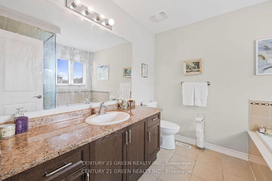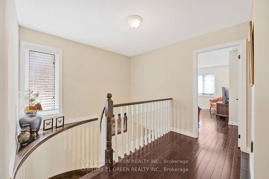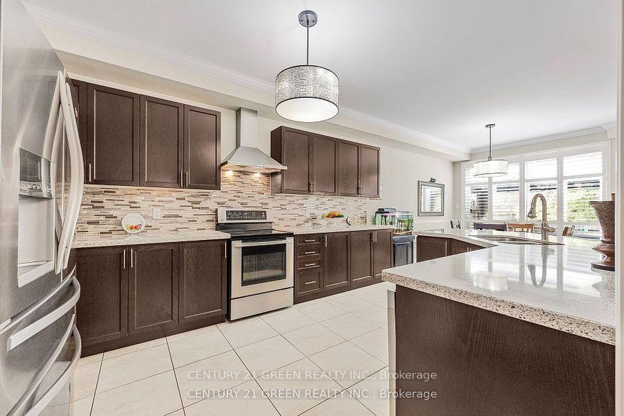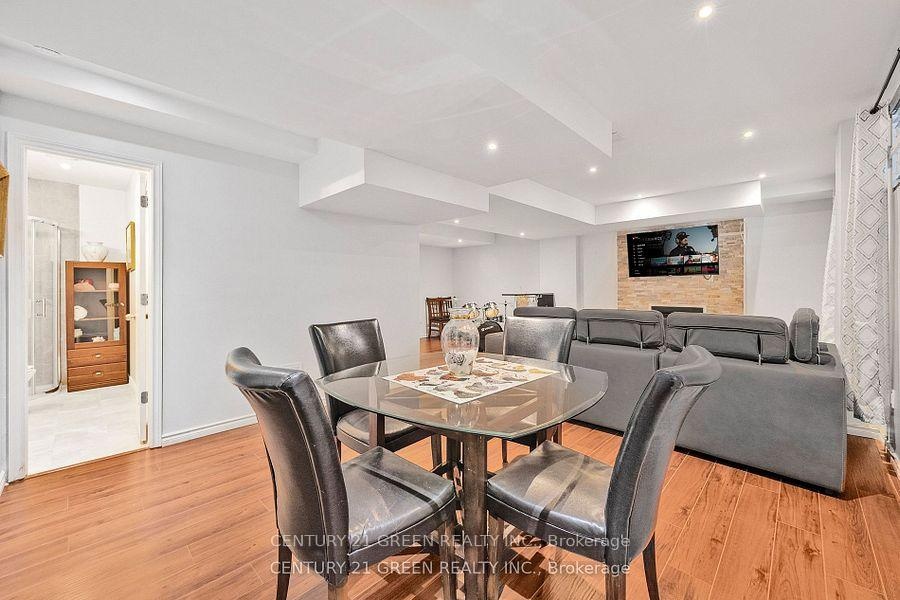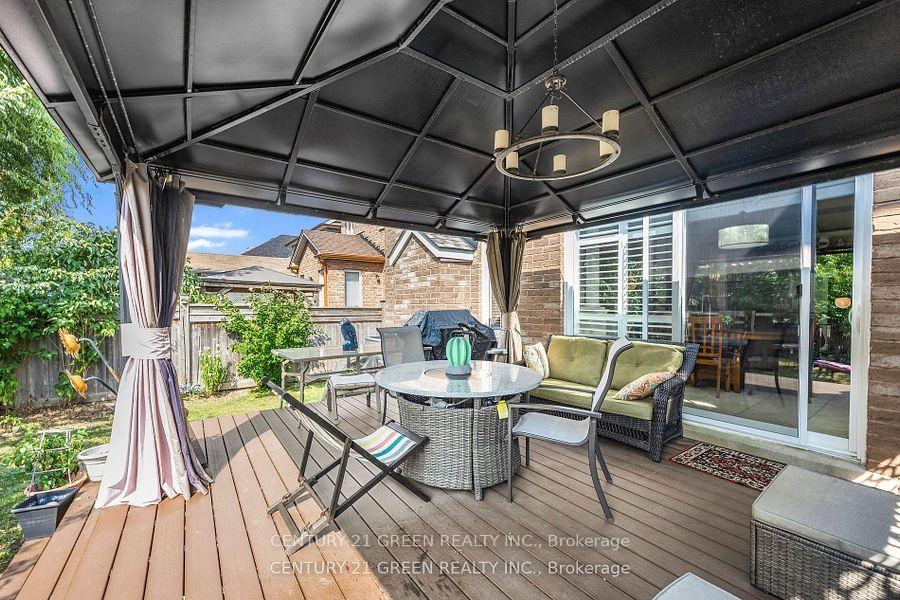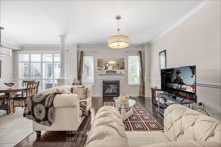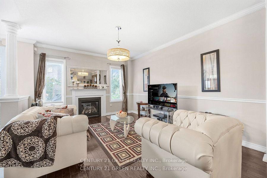 Welcome to this Exquisite Well Maintained home! Nestled in a serene neighborhood ,This stunning 2210 sq ft all brick & stone 2 storey Brighton Court model home comes with 4-bedroom, 4-bath, 4 Car parkings. Finished basement gives you more living space offering a large rec room & also a den with a 3 pc washroom, great for teens & the growing family. Enjoy the convenience of the Kitchen wall to- Deck. Hardwood floors throughout the upper level & Laminate in basement. No carpet; living & dining offers lots of space with accent columns, gas fireplace & crown molding. The modern eat in kitchen granite counters, backsplash & stainless steel b/in appliances. Pot lights on the outside of house. Walking distance from schools, shopping areas, Restaurants, Library and Recreation center.