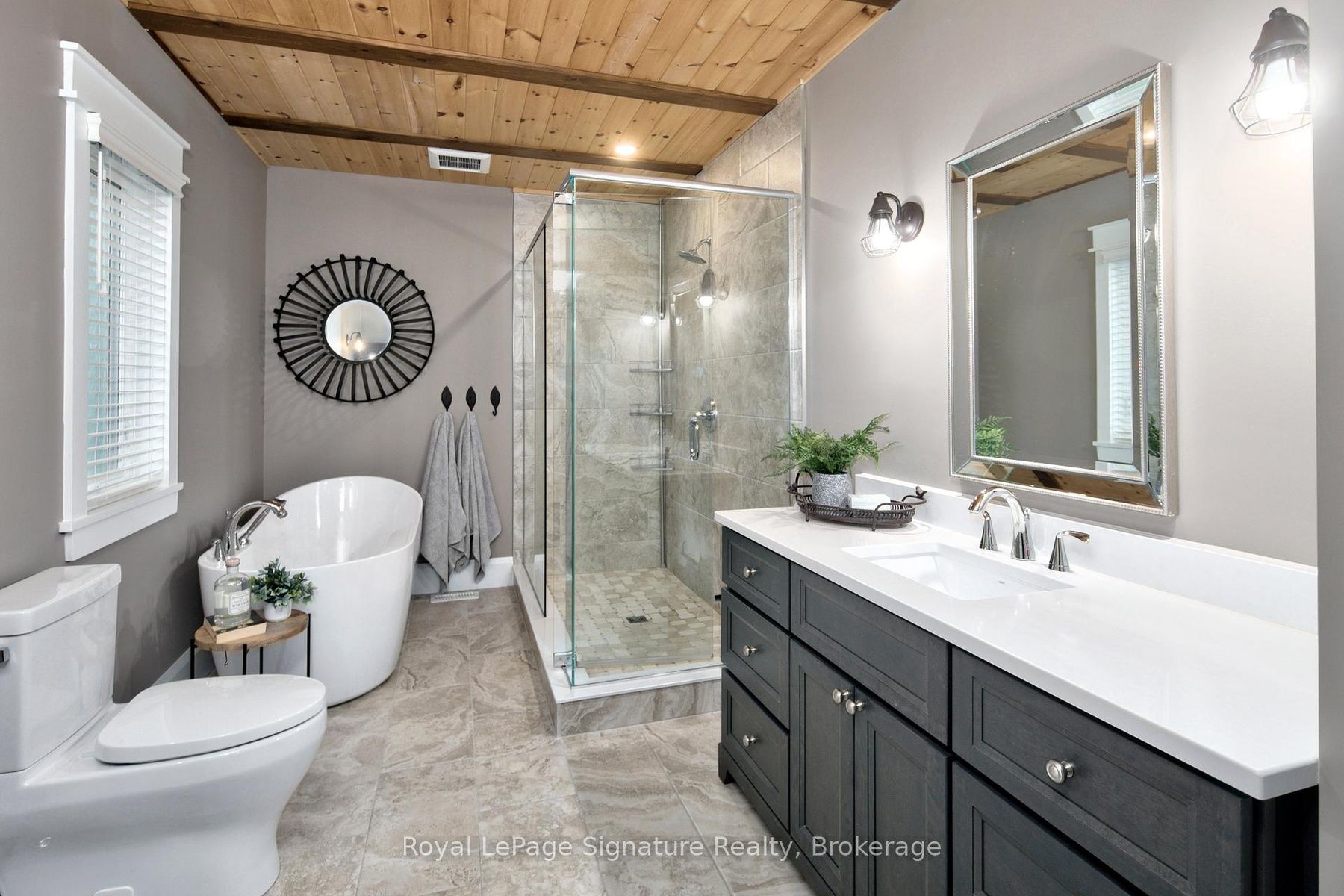 Located just minutes from the base of Blue Mountain and the Village, this stunning Legendary Group timber frame home blends mountain-inspired design with modern comfort. The bright, open-concept layout is perfect for entertaining or relaxing after a day on the slopes or trails. The main floor primary suite offers convenience and privacy, featuring a spacious five-piece ensuite. Upstairs, you'll find two additional bedrooms and a full bath, plus a large bonus room over the garage, ideal for a family room, home office, or future guest suite. With 9-foot ceilings on every level, this home feels airy and inviting. The unfinished lower level, complete with a rough-in for a bathroom and wet bar, provides endless possibilities for customization. Enjoy a private backyard surrounded by nature and the peace of a quiet setting, just minutes from shops, dining, and year-round activities at Blue Mountain Village. Additional highlights include an EV rough-in in the garage and modern construction built in 2018 for worry-free living. Experience the perfect balance of adventure, relaxation, and refined mountain living.