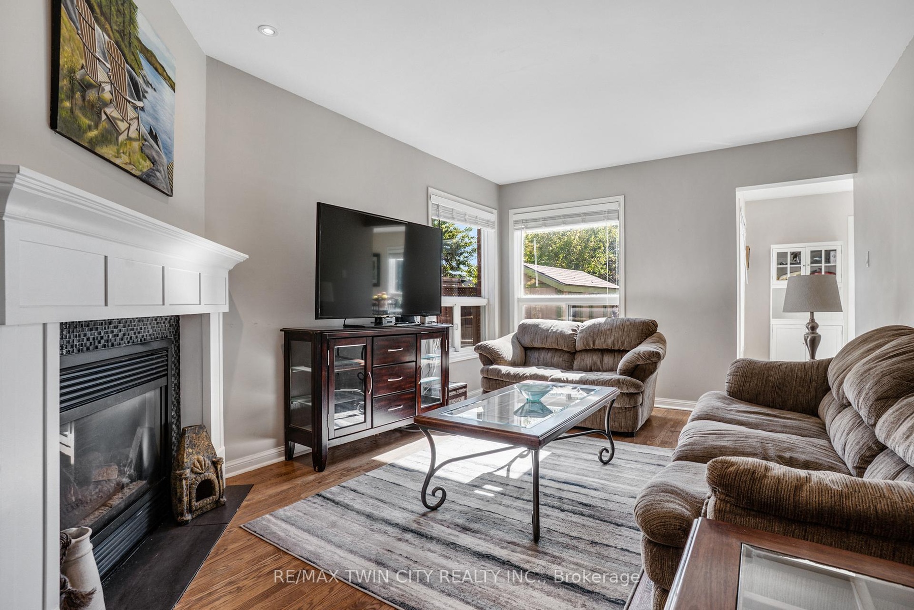 Welcome to 795 Saginaw Parkway, a 4 bed 2 storey in a sought after Cambridge neighbourhood with beautiful curb appeal including newer barn door style double car garage doors and all brick facade. Step inside to the bright and airy foyer which opens up to the formal living and dining room with gleaming hardwood floors, perfect for holiday gatherings, celebrations and entertaining. The kitchen is complete with stainless steel appliances, modern backsplash and breakfast bar and has sliding glass doors leading you out to your expansive pool sized private yard with a large newly built deck and canopy to enjoy the outdoors. Back inside the spacious layout of the main floor, you'll love to get cozy in the main floor family room with the gas fireplace decorated with a mosaic tile on the white mantel. You'll also find a 2 pce bath and laundry room with inside entry from the garage on the main level. Upstairs is an updated 4 pce main bath, and 4 good sized bedrooms including a primary suite with a walk in closet and an ensuite ready for you to create your own spa-like dream bathroom. The basement is partially finished with a roughed in bathroom, bedroom and kitchenette or wet bar, just awaiting your finishes. This meticulously maintained home is located in a well appointed neighbourhood with great schools, shopping, and easy access to highway 401 for commuters, don't miss your chance to make this your dream home!