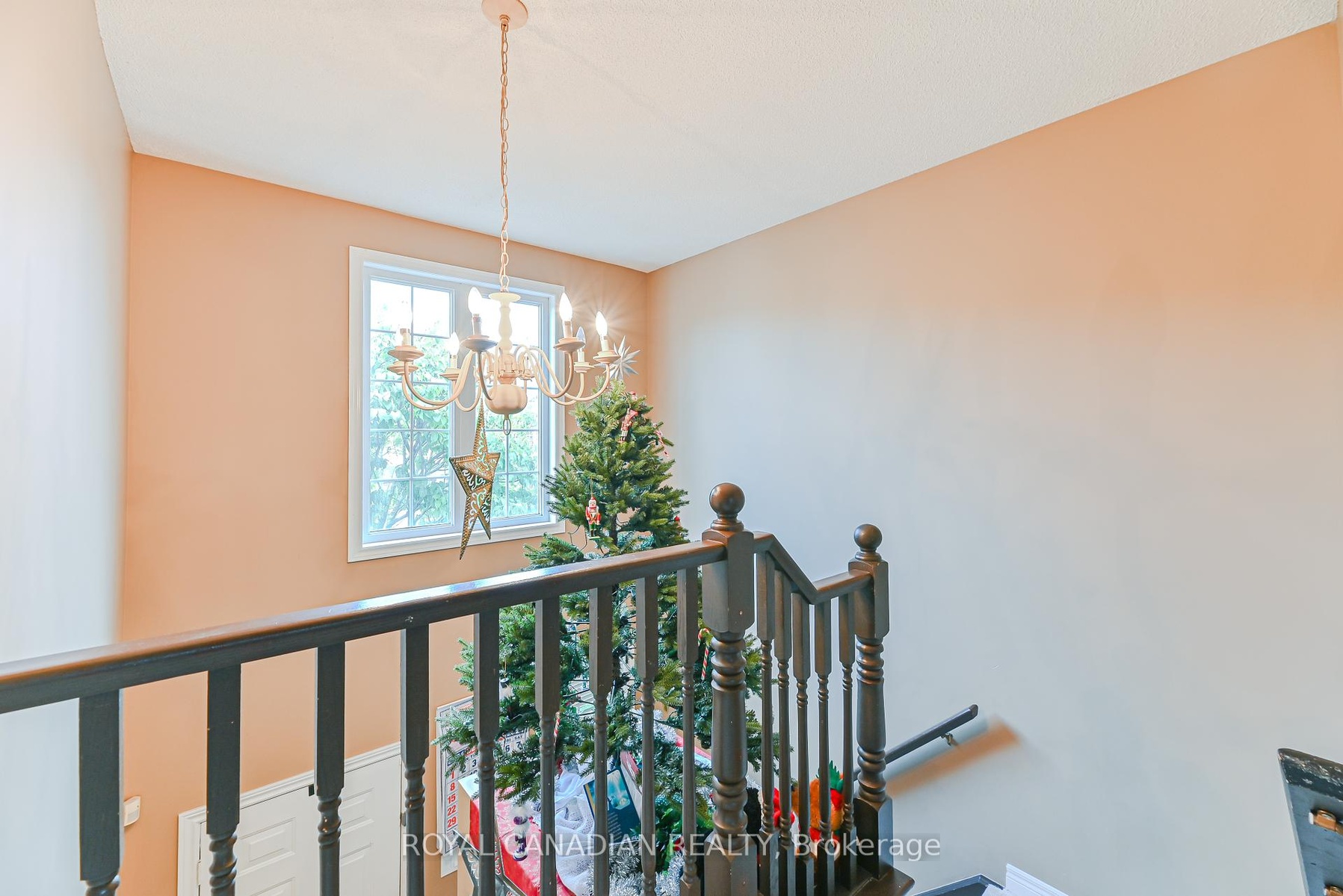 Welcome to your dream home in the heart of Stoney Creek! This immaculate end-unit townhouse is nestled in the highly desirable Green Gables community a peaceful, well-maintained enclave known for its charm, convenience, and family-friendly atmosphere. Step inside to discover a bright and spacious main floor featuring laminate floors and an open-concept layout perfect for both everyday living and entertaining. The kitchen offers plenty of cabinetry and counter space, seamlessly overlooking a cozy breakfast area that's filled with natural light and walk out to deck. The combined living and dining rooms are anchored by a beautiful gas fireplace, creating a warm and inviting space for gatherings with friends and family. Upstairs, you'll find three generously sized bedrooms, including a massive primary suite that rivals those found in detached homes. Each bedroom features sun filled windows and ample closet space. This home includes 1.5 bathrooms, an attached garage with inside entry and automatic opener and build-in shelves. A fully finished basement complete with a bar area, dedicated office space and a large cold cellar, ideal for working from home or hosting. Enjoy a maintenance-free lifestyle with condo contributions that cover major items such as windows, roof, water, and exterior upkeep. Plus, the Green Gables community offers a beautiful central park, ideal for relaxation or play, along with plenty of visitor parking. Whether you're a growing family, downsizer, or first-time buyer, this home offers the perfect blend of space, style, and location just minutes to schools, shopping, parks, and easy highway access. Don't miss this rare opportunity to own a standout home in one of Stoney Creeks most sought-after communities!