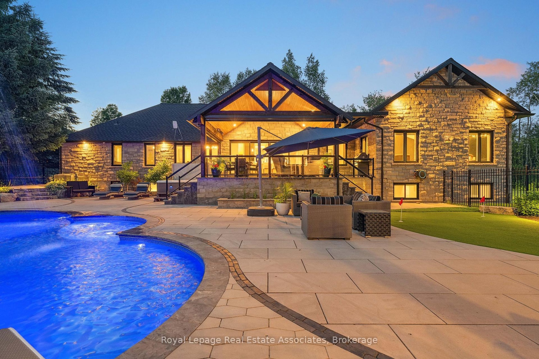 Renovated Bungalow W/ Walk-Out Basement Features 4+1 Beds & 7 Baths & Parking for 12+ Cars. TheGrandEntry Greets You W/ Vaulted 11ft Ceilings, Premium Vinyl Flooring, & Pot Lights Throughout The MainLevel.The Open-Concept Dining Room & Chefs Kitchen Boast An Oversized Sit-Up Island, QuartzCountertops, Top-Tier B/I S/S Appliances, A W/I Pantry, & A Coffee Bar. The Formal Living Room, Create A Cozy Space ForFamily Gatherings. The Family Room Features Vaulted Ceilings, Floor-To-Ceiling Windows &A Gas Fireplace.The Primary Suite Offers A W/I Closet & A 5-Piece Ensuite, Dbl Vanity, & Glass Shower. 3 Well-Appointed Beds W/Their Own Ensuites. A Main Level Mudroom W/Laundry Area & Garage Access,Completes The Main Level. The Lower Level Featuring 8ft Ceilings, Above-Grade Windows, Pot Lights, & B/I Speakers. The Rec Room Provides Ample Space For Entertaining Friends & Family W/ A Wet Bar. AnAdditional Bedroom & Office Make A Great Space For Guests Or Th. An Oversized Flex Space Offers A GreatPlayroom W/ Ample Storage & A 4pc Bathroom. Head Outside To The Custom-Built Pergola W/ Wired-InHeaters, Pot Lights, B/I Speakers, &A Ceiling Fan, Perfect For Summer Dinners Overlooking The Resort-Style Backyard. It Is A True Entertainers Dream, Featuring An Inground Saltwater Pool W/ A Waterslide, A Putting Green, & A Custom-Built Cabana W/Outdoor Kitchen & Wood-Burning Fireplace. The Expansive2500 Sqft Detached Garage/Shop Features A Man Cave, 3-pc Bathroom, & Ample Storage. Ideal For ThoseWho Cherish Tranquility & A Slower Pace Of Life, ThisProperty Is Protected By Partial Conservation Land,Providing A Serene Setting And Unparalleled Privacy. With Trails, Farms, And Conservation Areas, It's A Haven For Nature Lovers And Outdoor Enthusiasts. With Easy Access To Major Highways, This Is A TrueDream Home Within Close Proximity To All Necessities And Amenities A like.