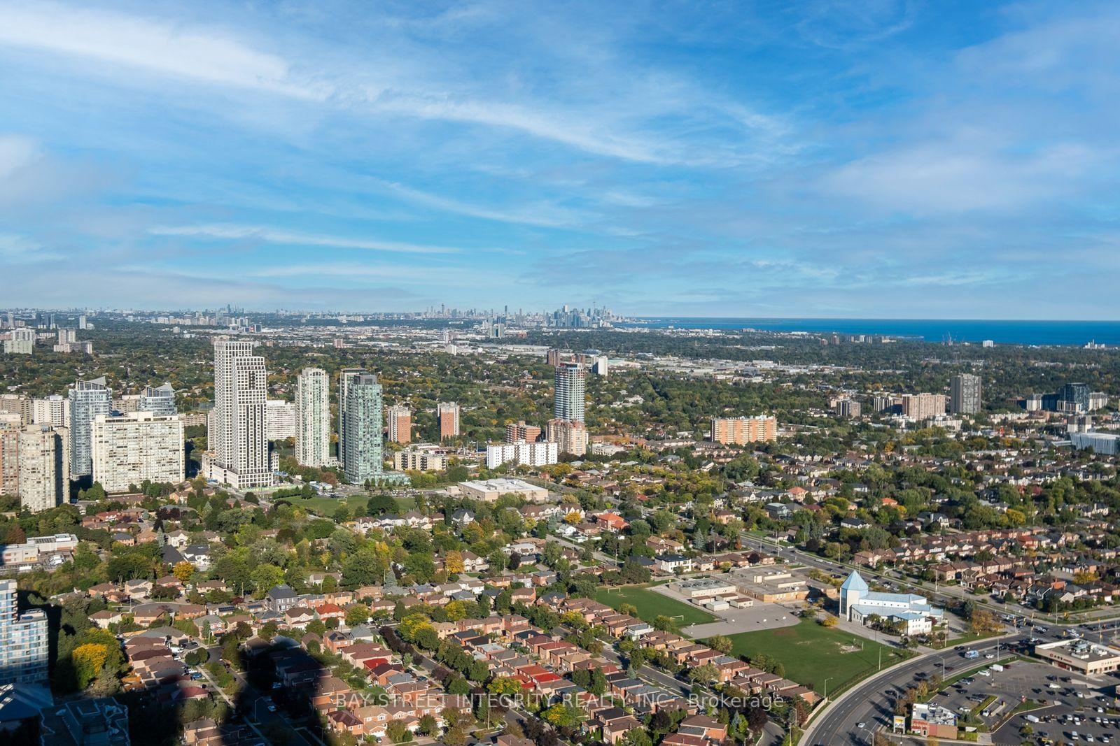 Students welcome. Video tour available. Brand new M City 2 high-floor 2-bedroom, 2-bath unit with wrap-around balcony offering unobstructed lake and city skyline views. Modern open-concept kitchen with built-in appliances and quartz countertops. Primary bedroom features ensuite bath and large closet. Includes parking. Steps to Square One, convenient location, move-in ready.