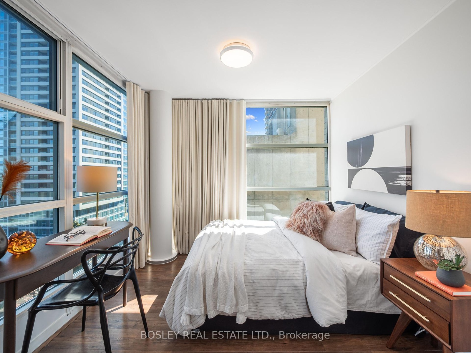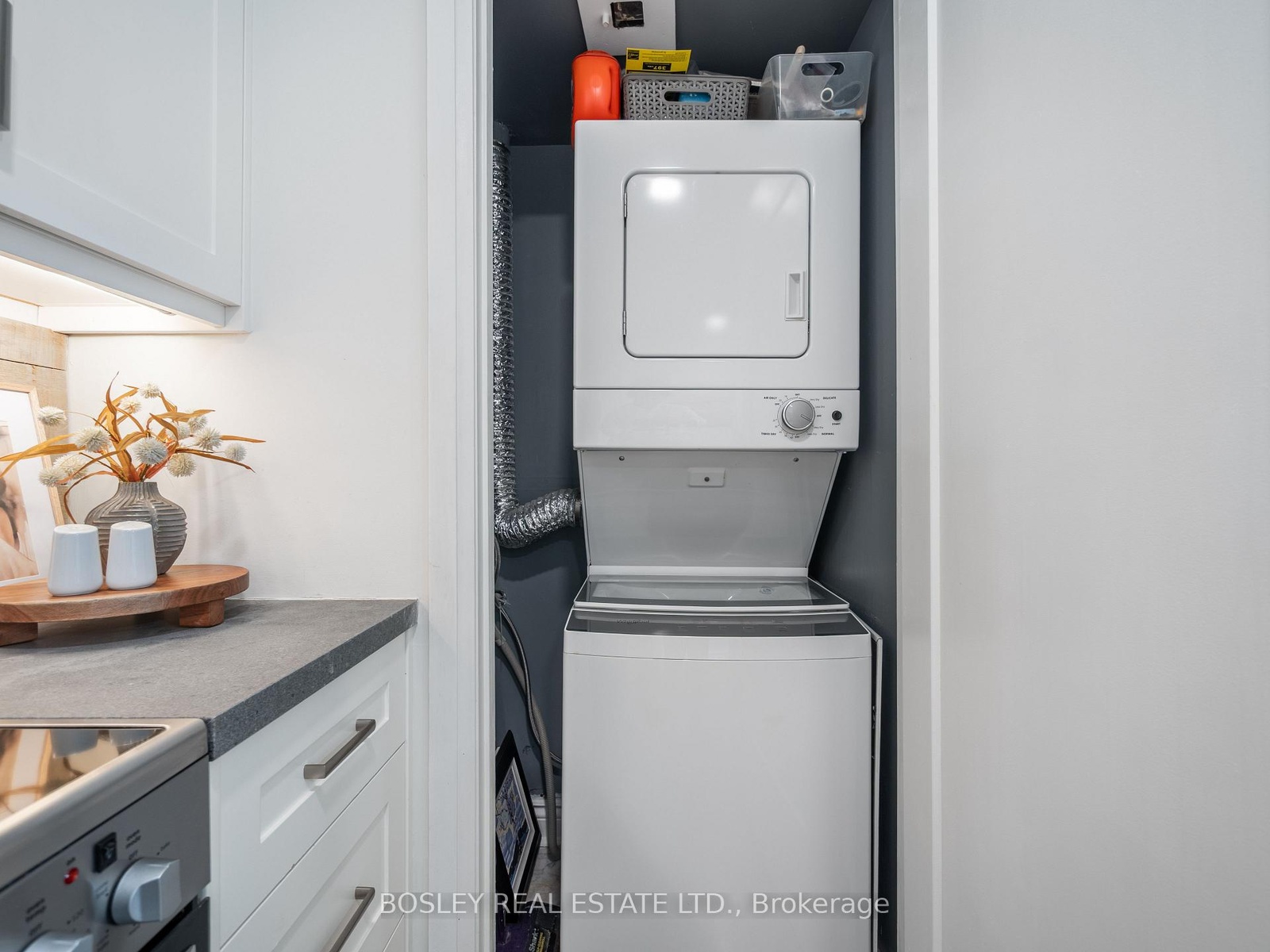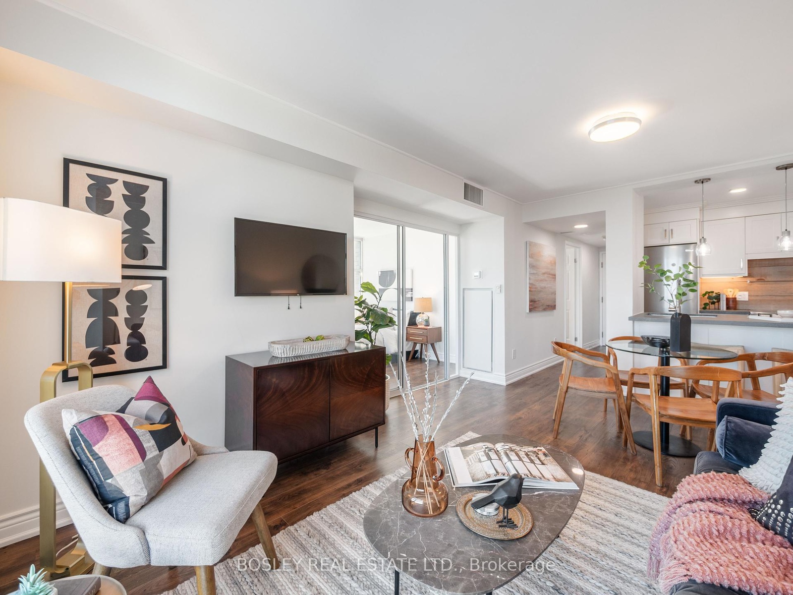 Welcome to The Rosedale! Nestled in a boutique condo of just 23 suites, this bright corner unit offers a 1 bedroom + large den layout, with the den easily working as a second bedroom or home office. The suite has been beautifully maintained and thoughtfully upgraded, featuring a renovated kitchen with wood detail backsplash and concrete-style countertops, wide plank laminate flooring, custom window coverings, and an oversized bedroom with double closets and custom inserts. East-facing windows flood the space with natural light throughout the day. And the location can't be beat! Just steps to TTC, Yonge and Bloor, Yorkville, shops, restaurants, and easy access to the DVP.