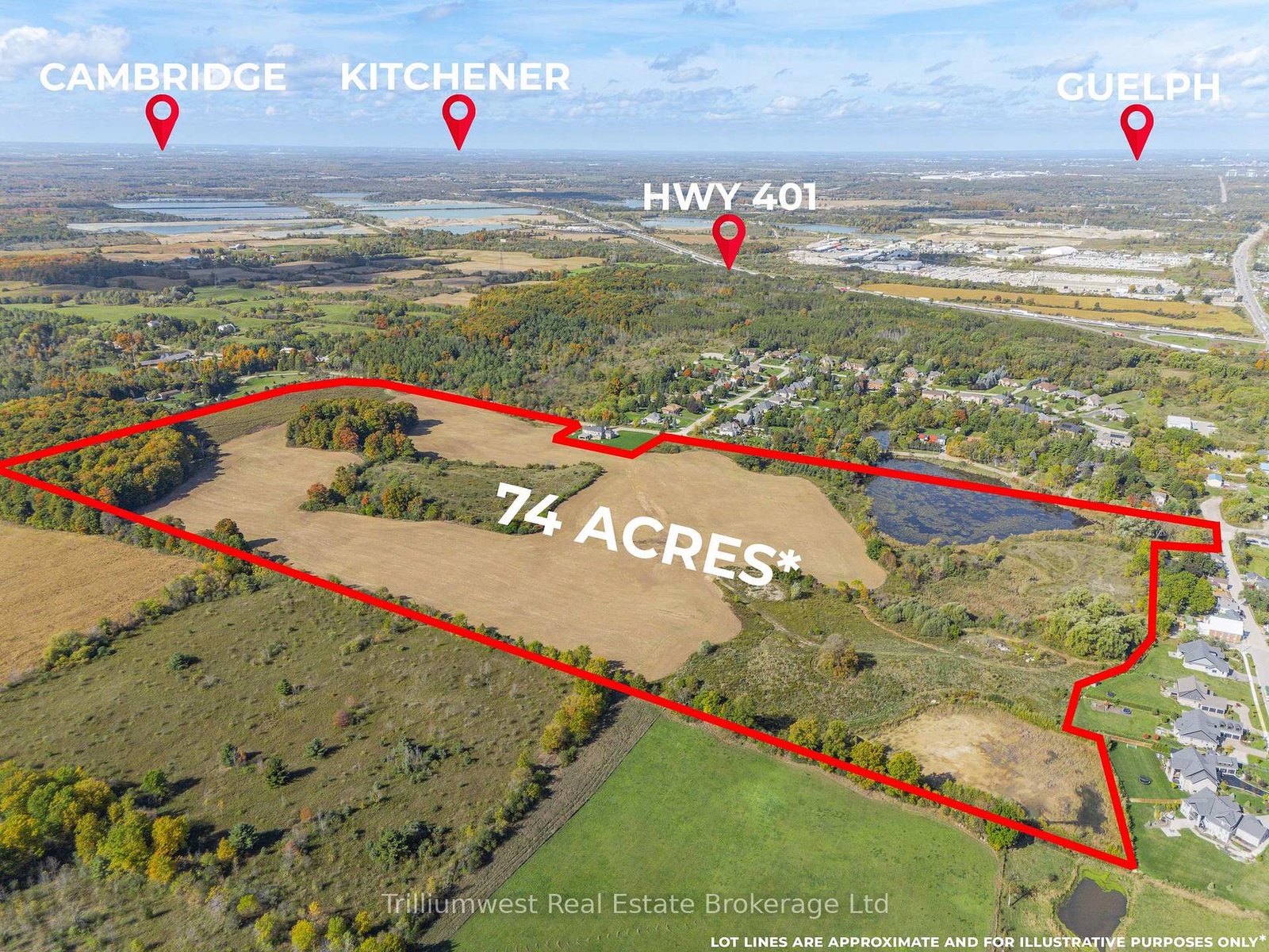 74 Acres of Rolling Countryside in MorristonAn exceptional opportunity to own 74 picturesque acres fronting on Calfass Road in sought-after Morriston. This remarkable property showcases a beautiful blend of gently rolling hills, open arable land, and mature mixed bushcreating a landscape that is both scenic and functional. A tranquil pond adds to the natural beauty, attracting wildlife and offering a peaceful retreat in every season.Surrounded by stately custom homes, this parcel provides the perfect setting to build your private rural estate while still being part of a distinguished community. Enjoy the balance of country living and modern convenience, with parks, trails, and popular local restaurants just moments away in the charming village of Morriston.Conveniently located just minutes to Highway 401 and Guelphs south end, this rare offering combines rural beauty with easy access to amenities and commuter routes. Whether you envision a custom estate home, a hobby farm, or a peaceful weekend escape, this property offers endless possibilities in one of Puslinchs most desirable areas.