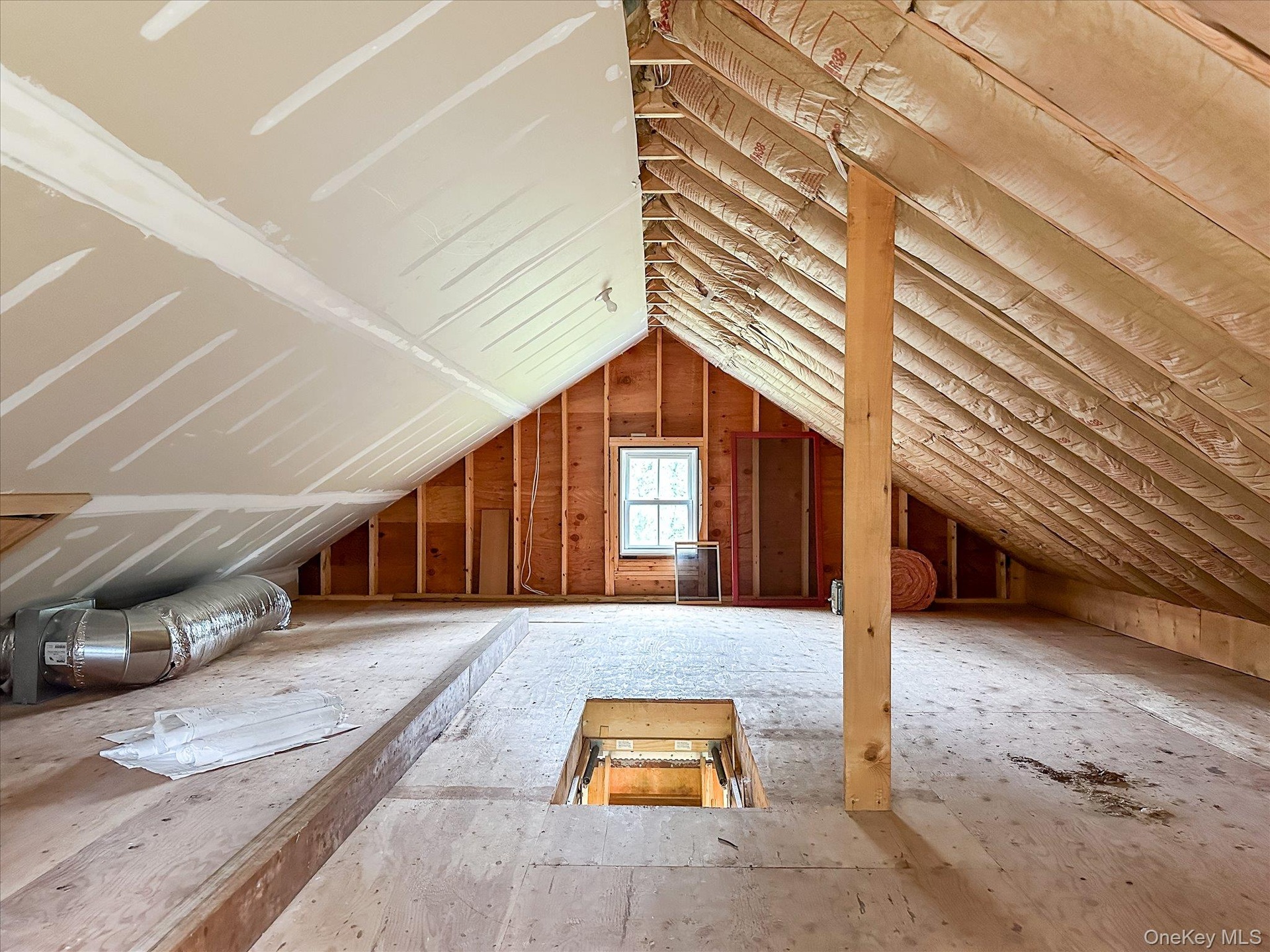 Above the garage lies a loft-like open area, unfinished yet full of character, ready to serve as generous storage or a blank canvas for the imagination.