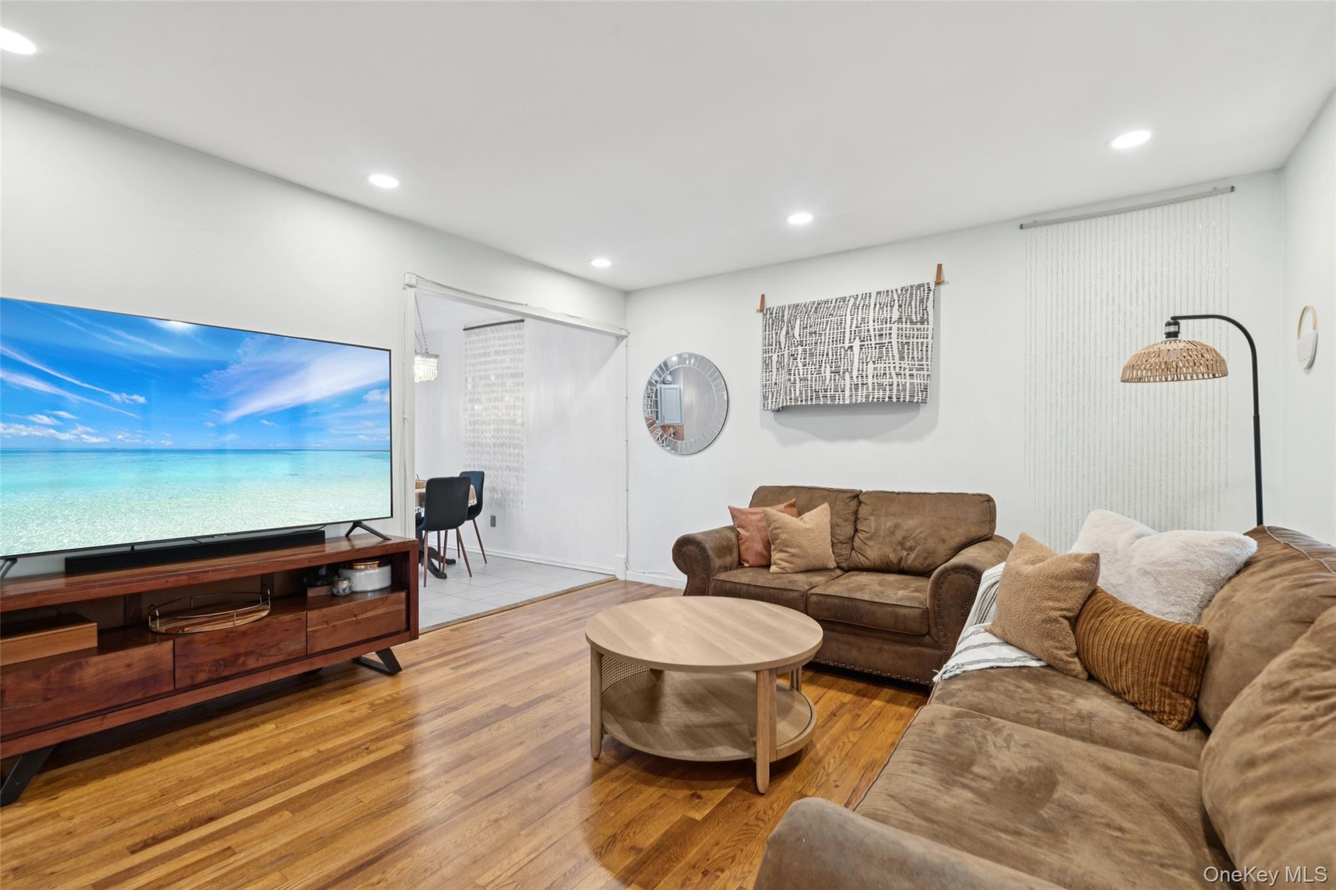 - Living area featuring wood finished floors and recessed lighting